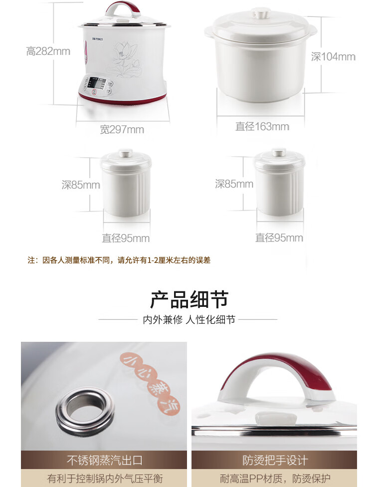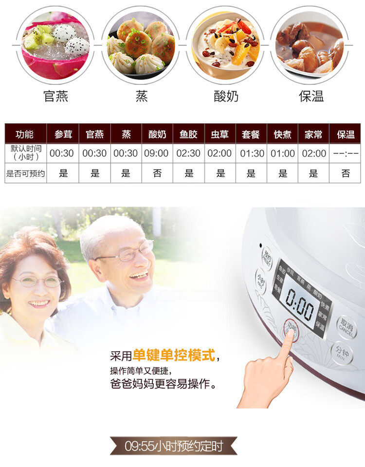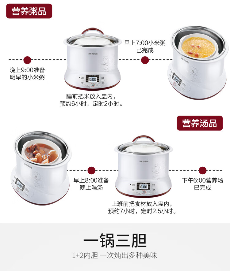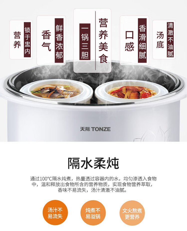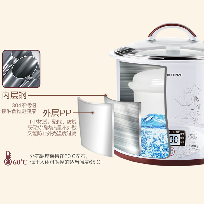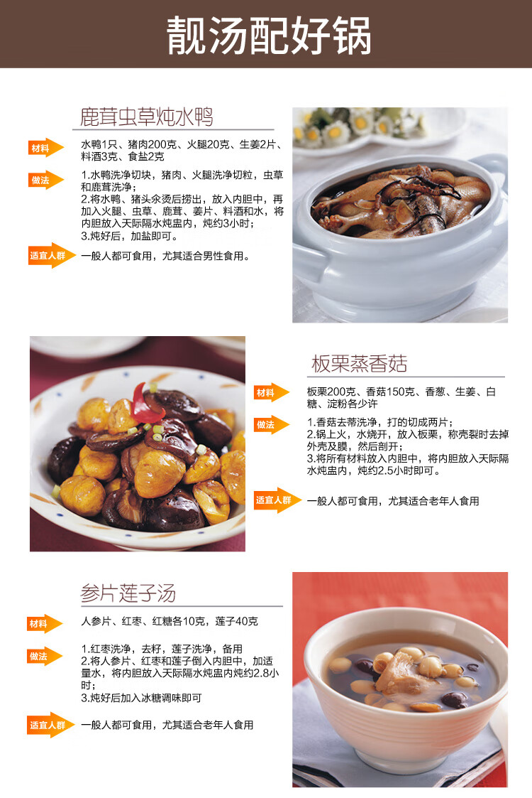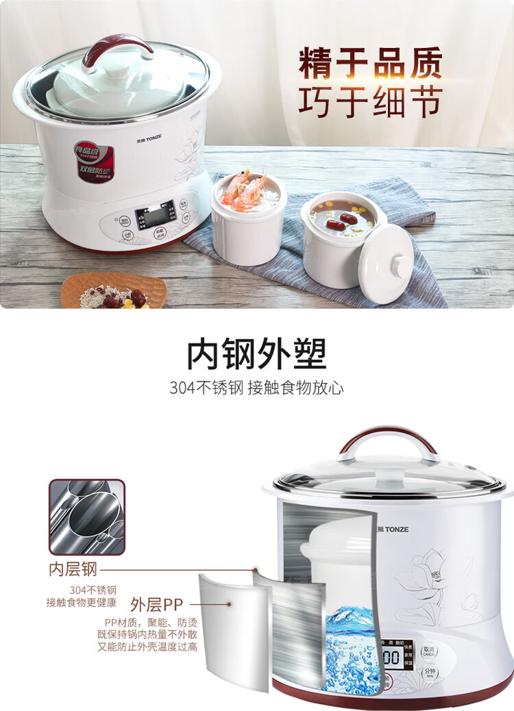 优质陶瓷内胆;滋补品智能程序;内外双钢, 有效防烫, 聚能保温
