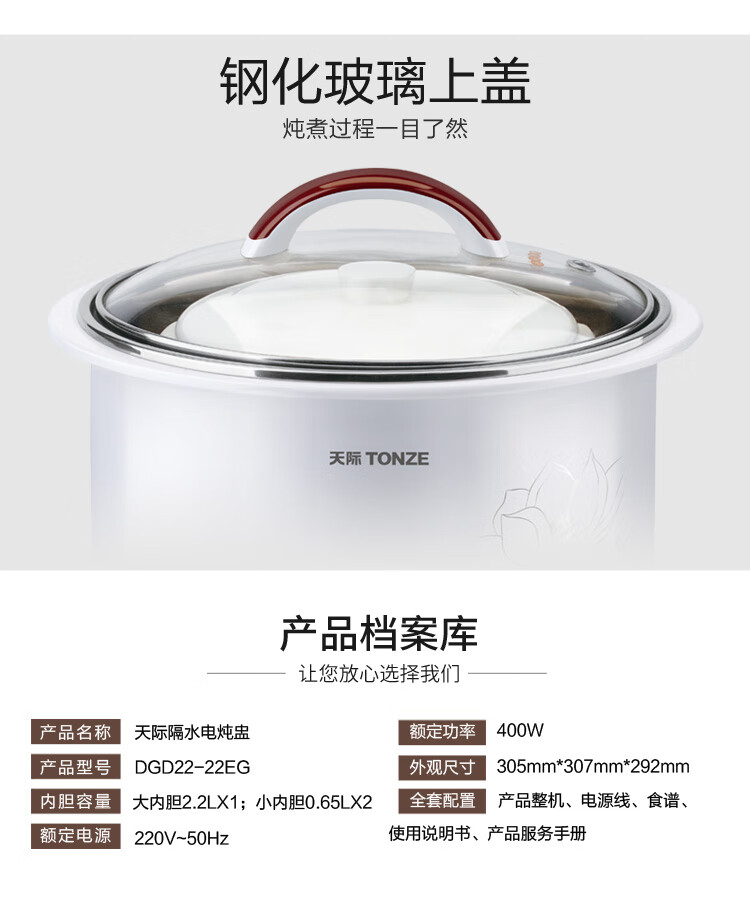 天际 2.2L双层防烫电炖盅DGD22-22EG