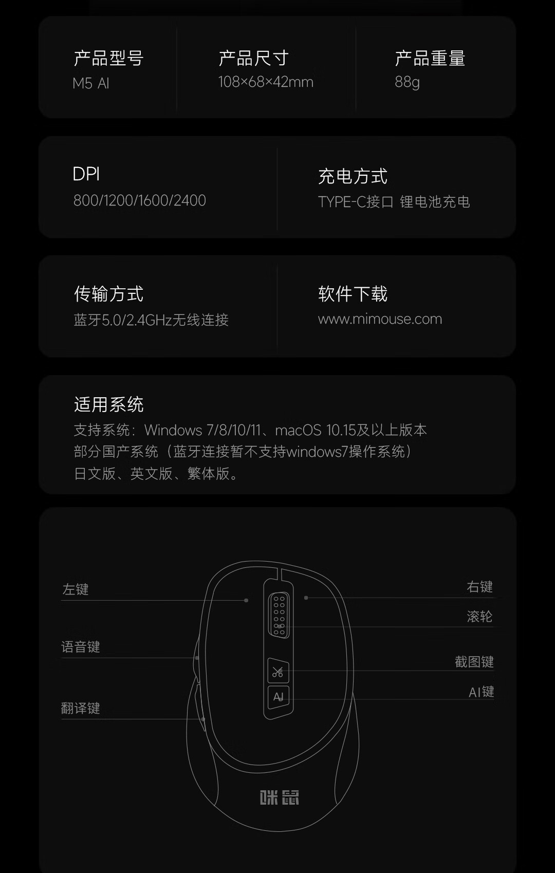配置清单:鼠标 *1 充电线*1 包装盒*1