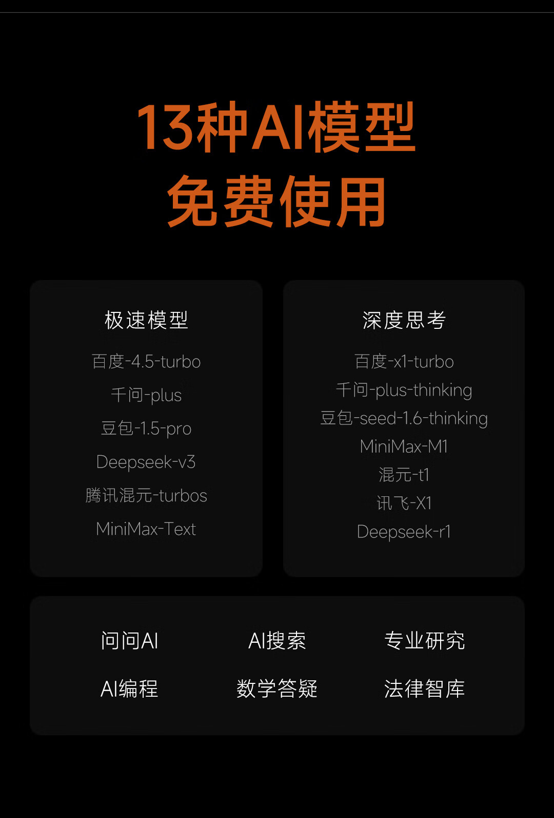 搭载Deepseek-R1模型6大通用模型+3;AI制作视频 可语音或是文字下指令 轻松做视频;AI绘图4.2绘准确的图片 功能更强大 ;实时翻译 会议记录 语音识别 写作 表格;APP终身免费下载 更新 多系统兼容