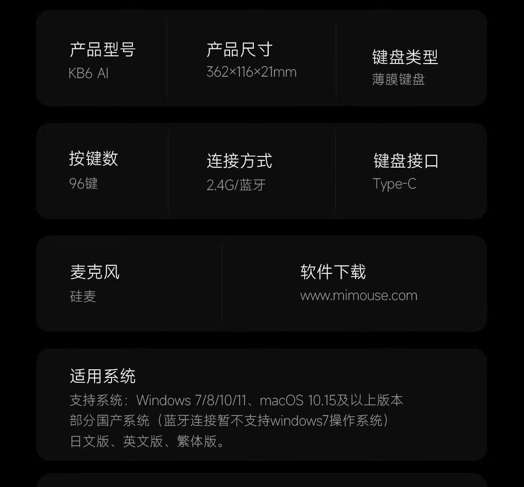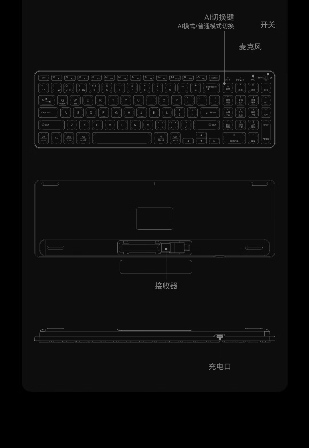 配置清单:键盘 *1 充电线*1 包装盒*1