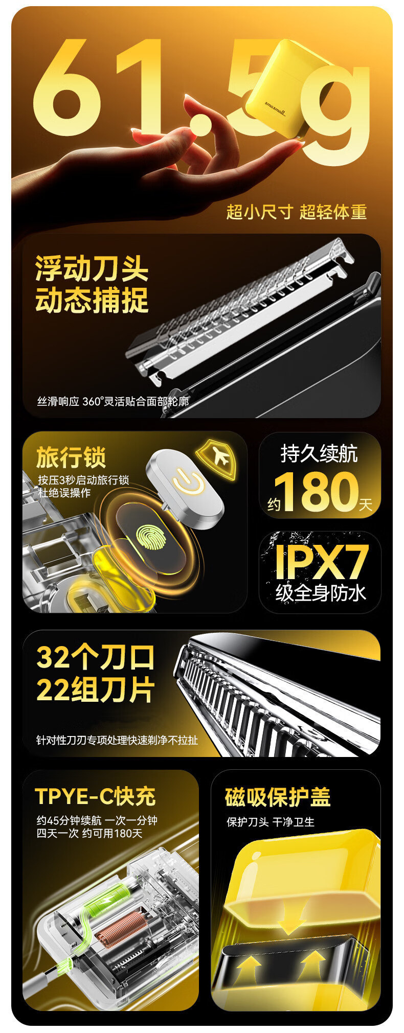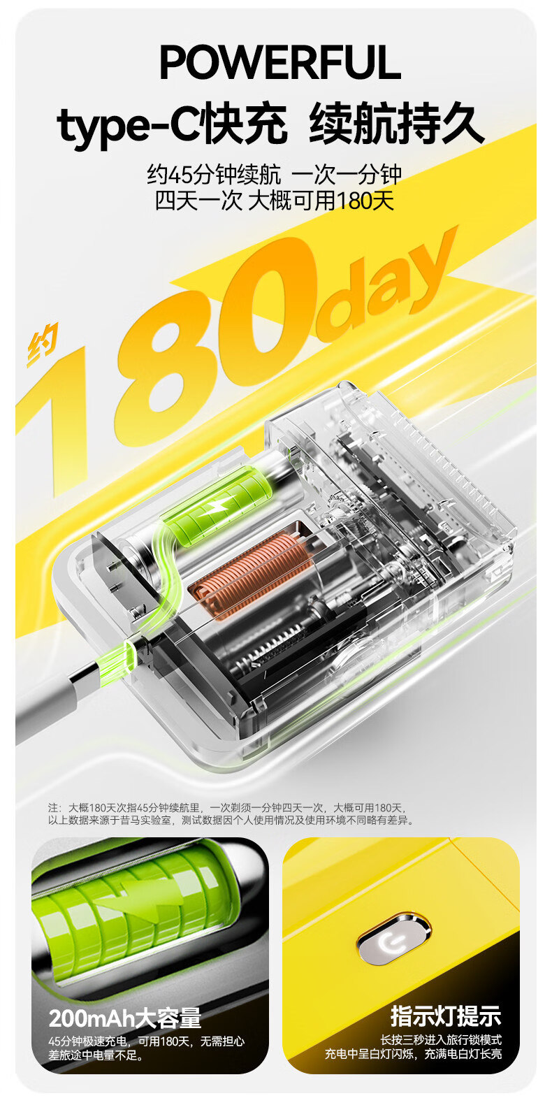 往复式刀头;防水等级: ipx7;电池容量: 200 mAh