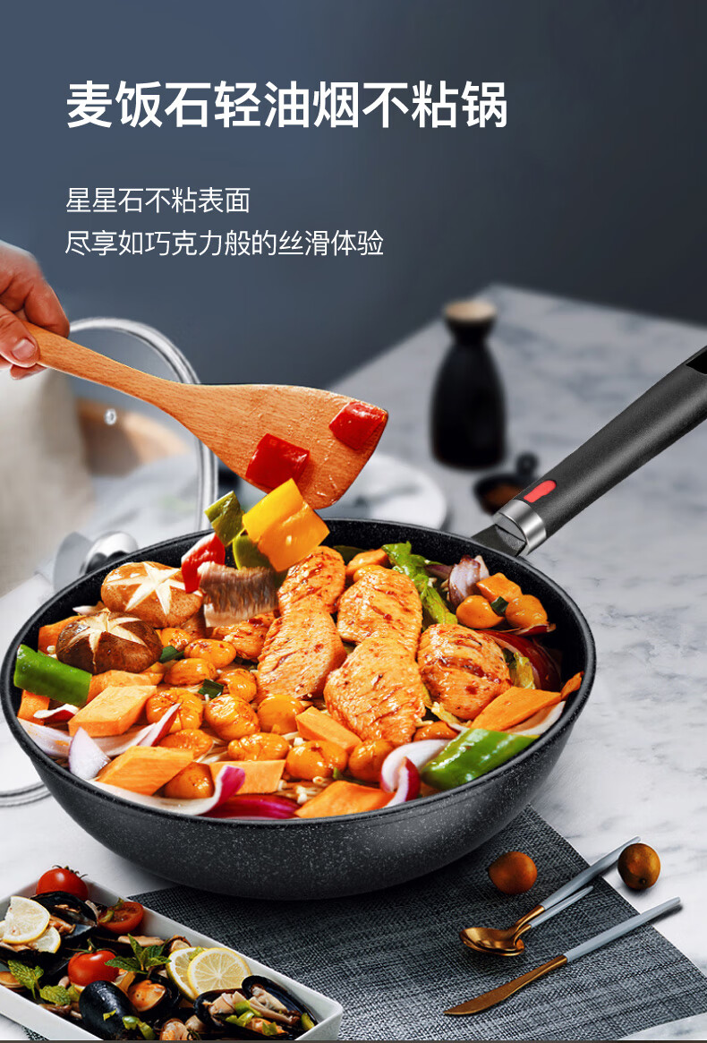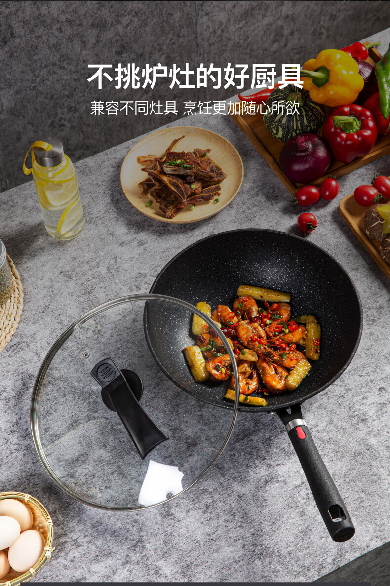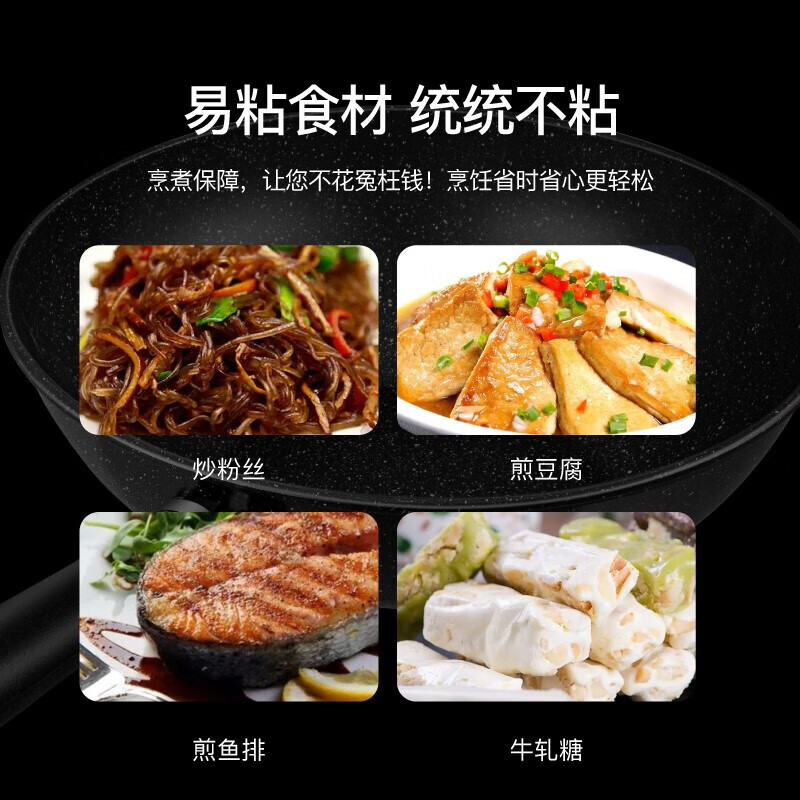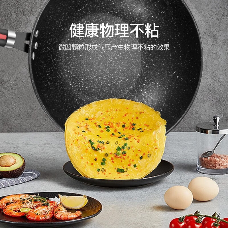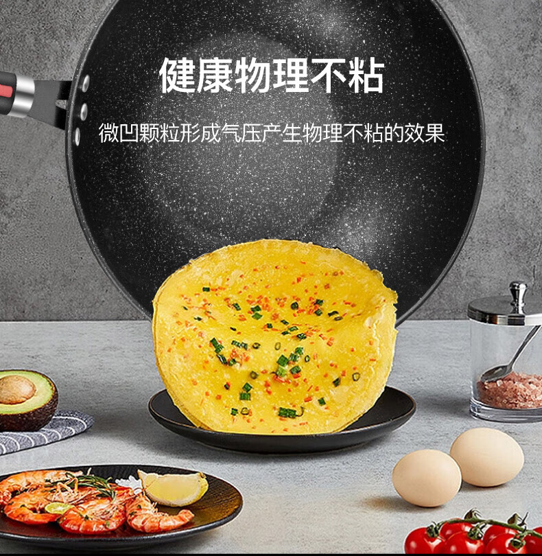 不挑炉具,均可使用;加厚锅底,长久使用不易变形;全面纹理,物理不沾