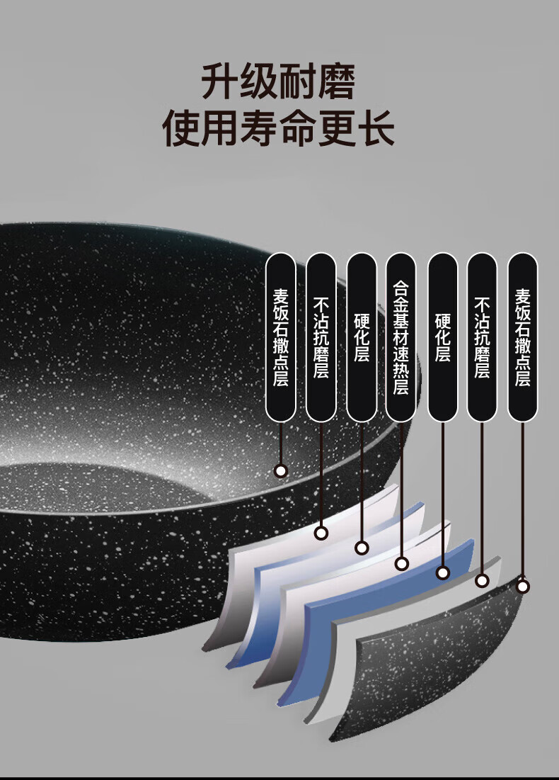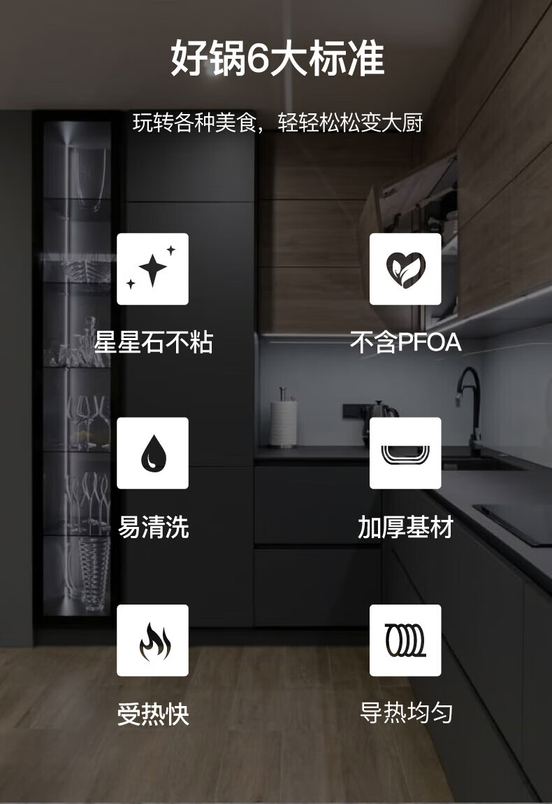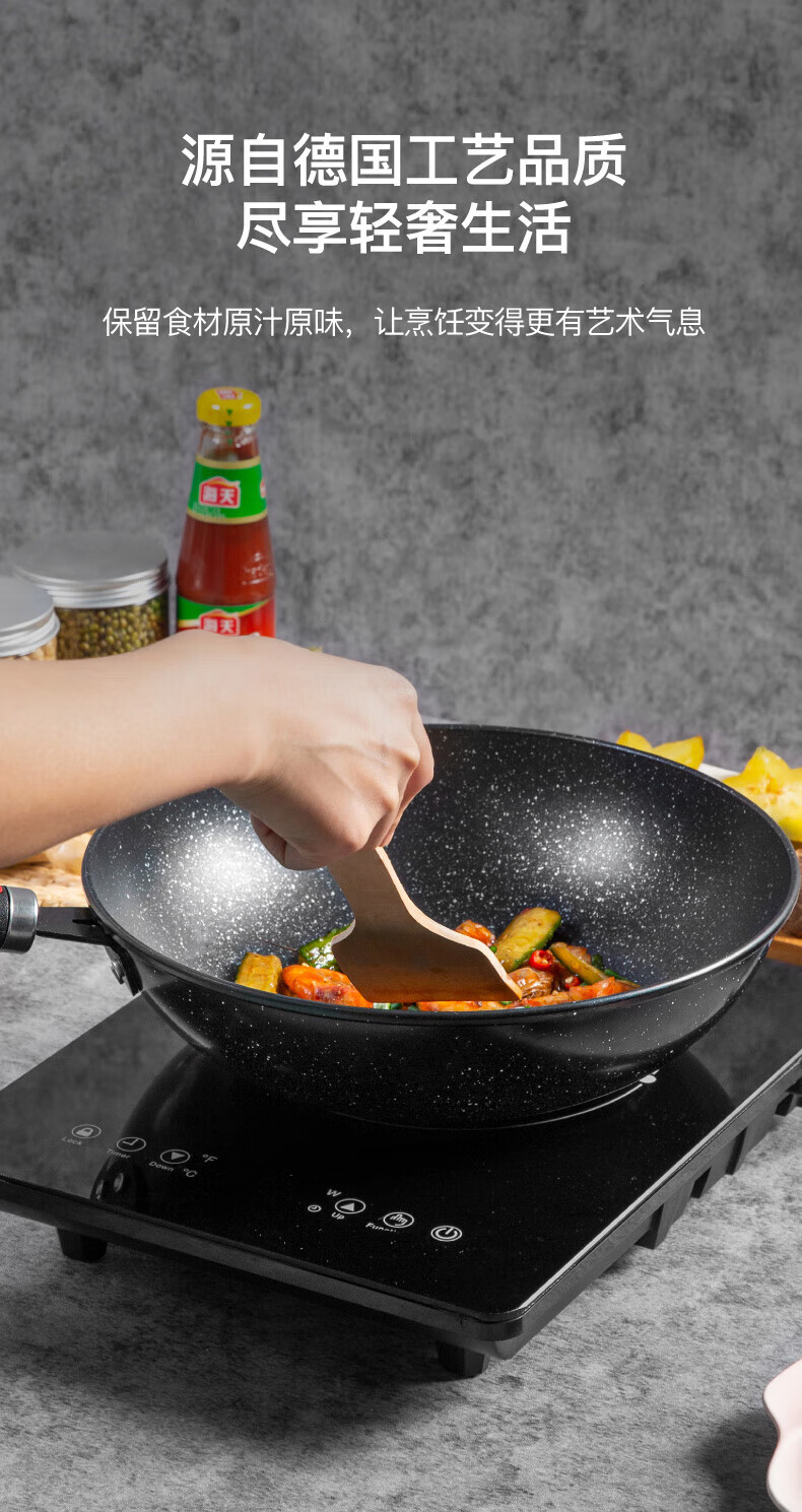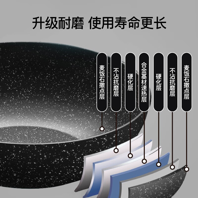 不挑炉具,均可使用;加厚锅底,长久使用不易变形;全面纹理,物理不沾