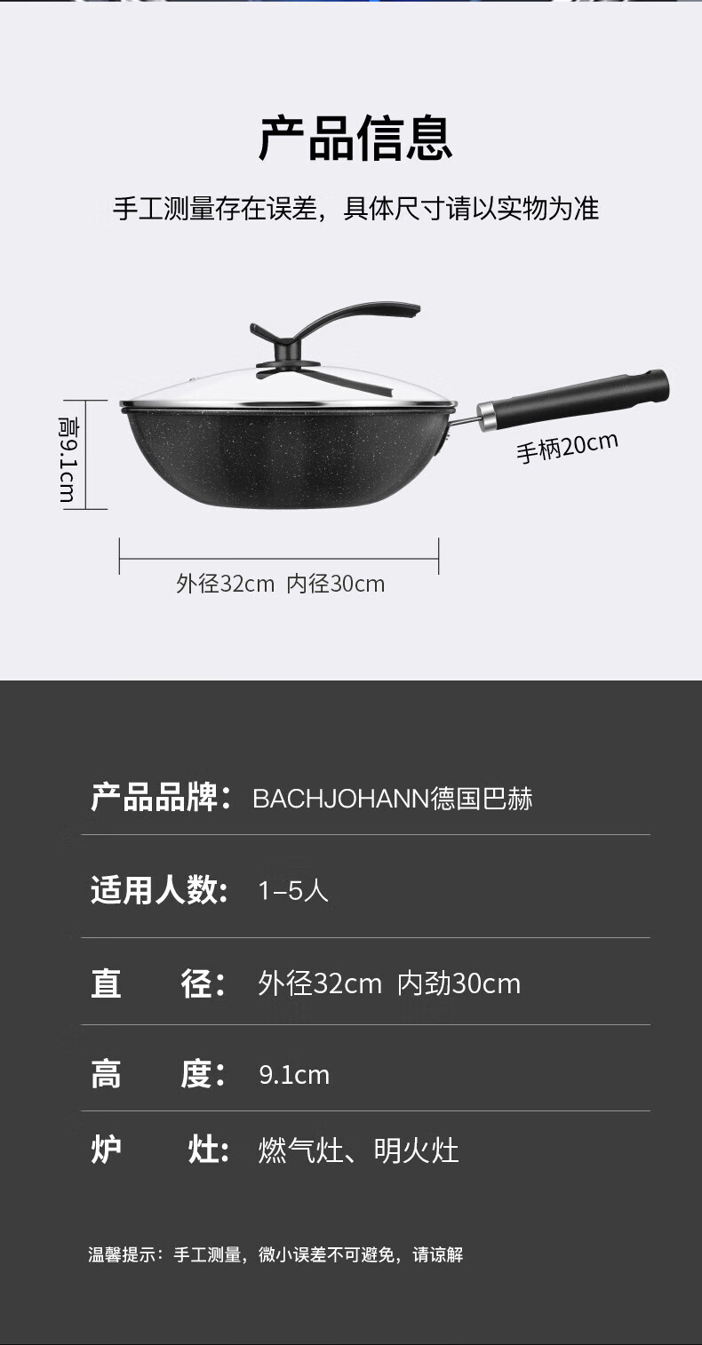 巴赫约翰 麦饭石不粘炒锅30cmBH-G02