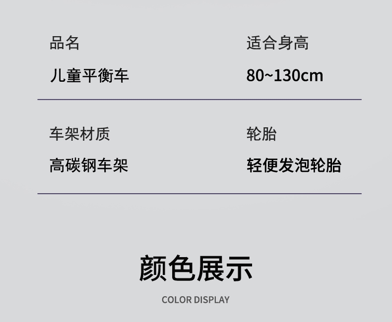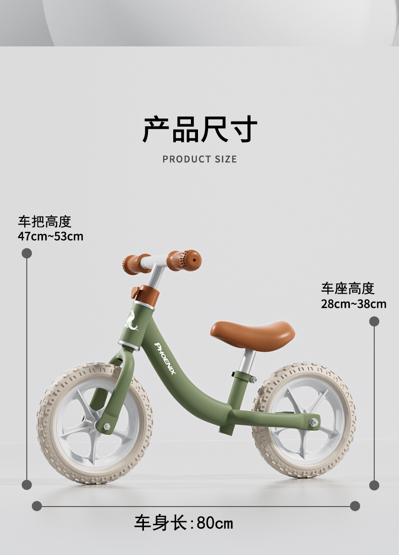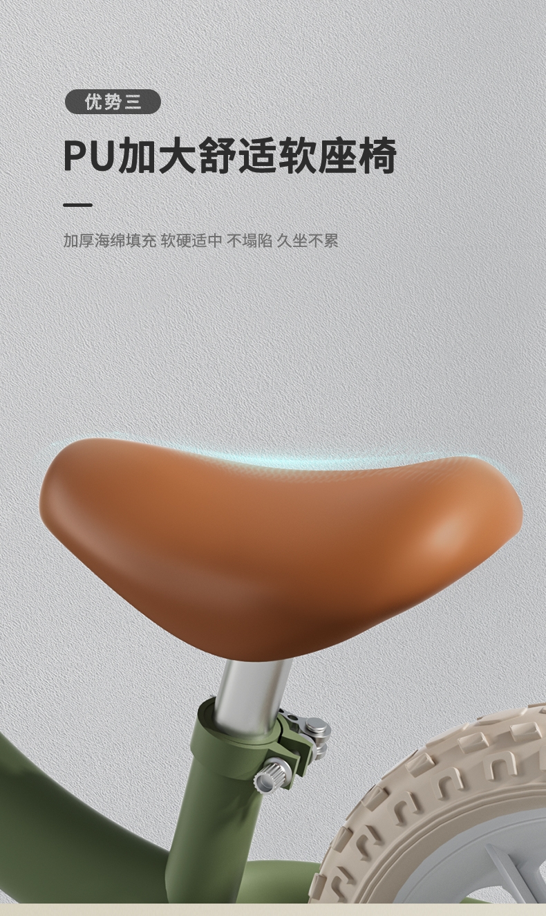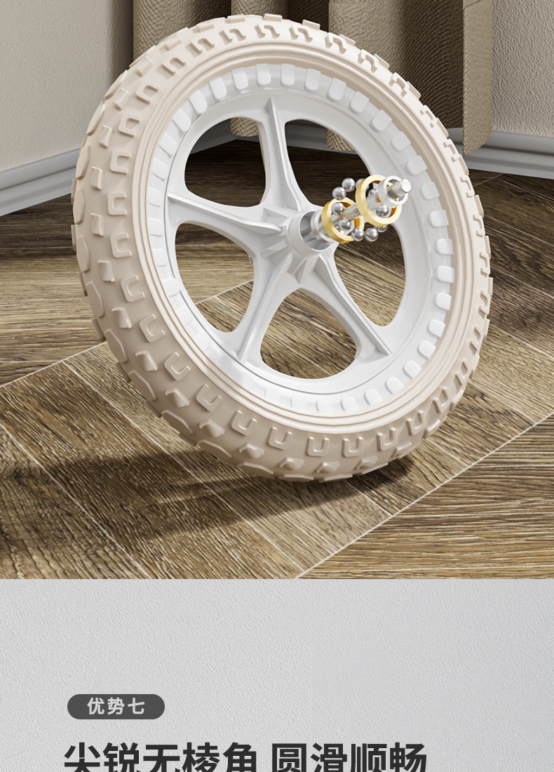 360°旋转车把,灵活转向自由骑行;轻便发泡轮胎,轻便避震减轻颠簸骑行更稳更舒适;尖锐无棱角圆滑顺畅,整车打磨,让骑行更安全