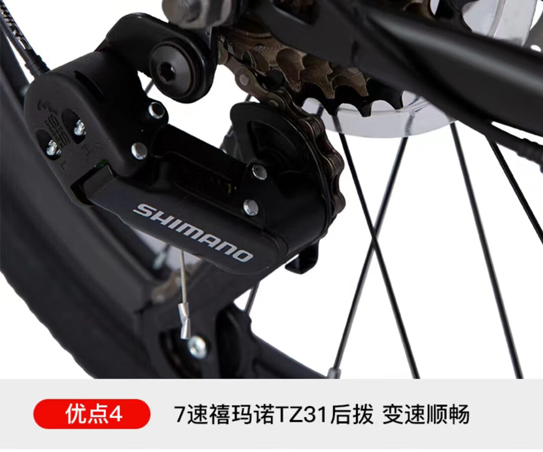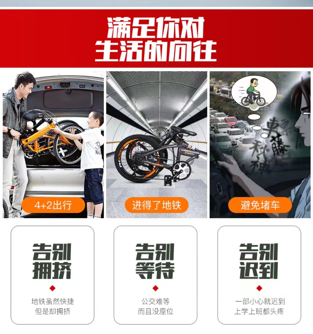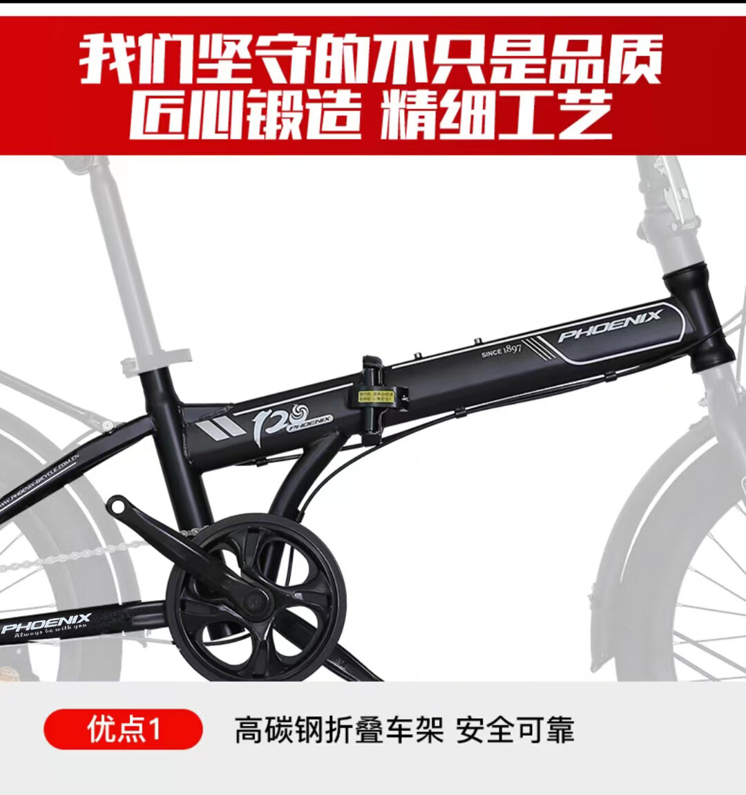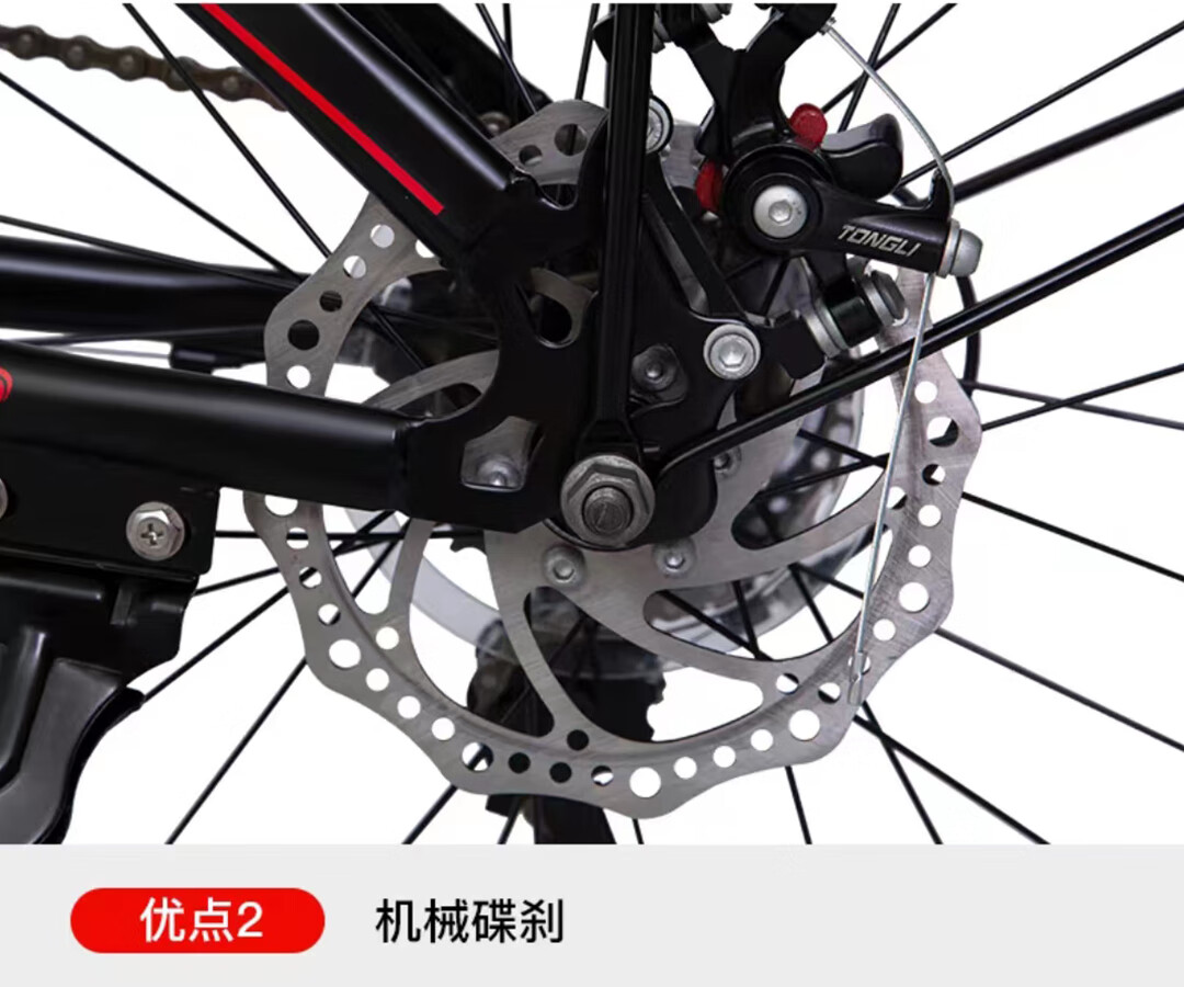 高碳钢折叠车架安全可靠;;磨砂黑T一字把质感细腻;;后抱闸设计制动更稳定安全。