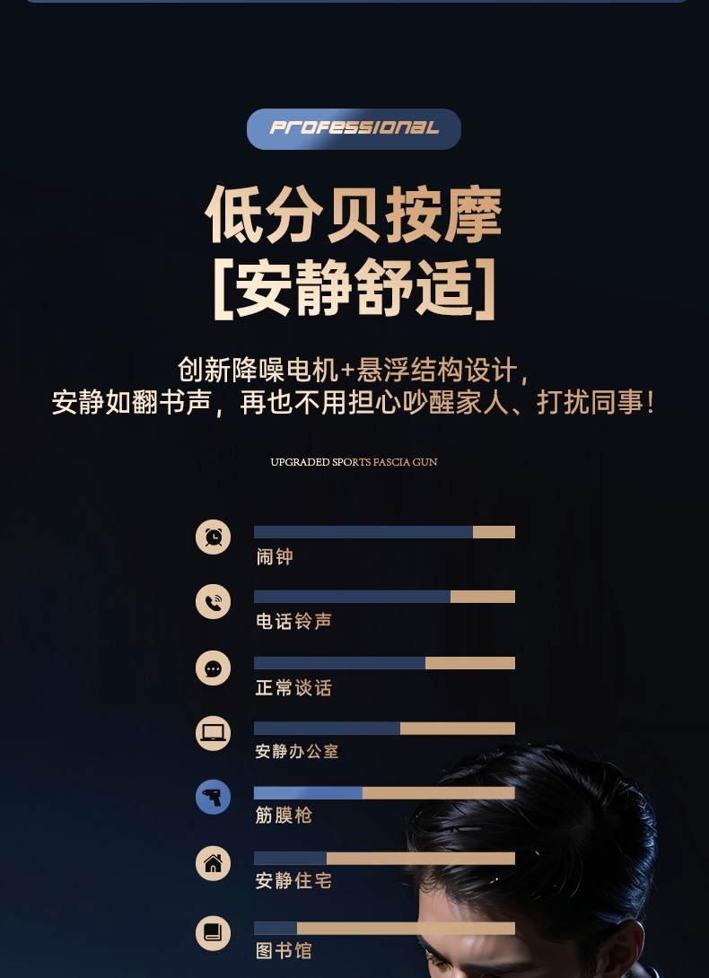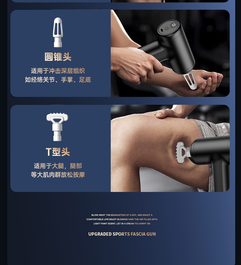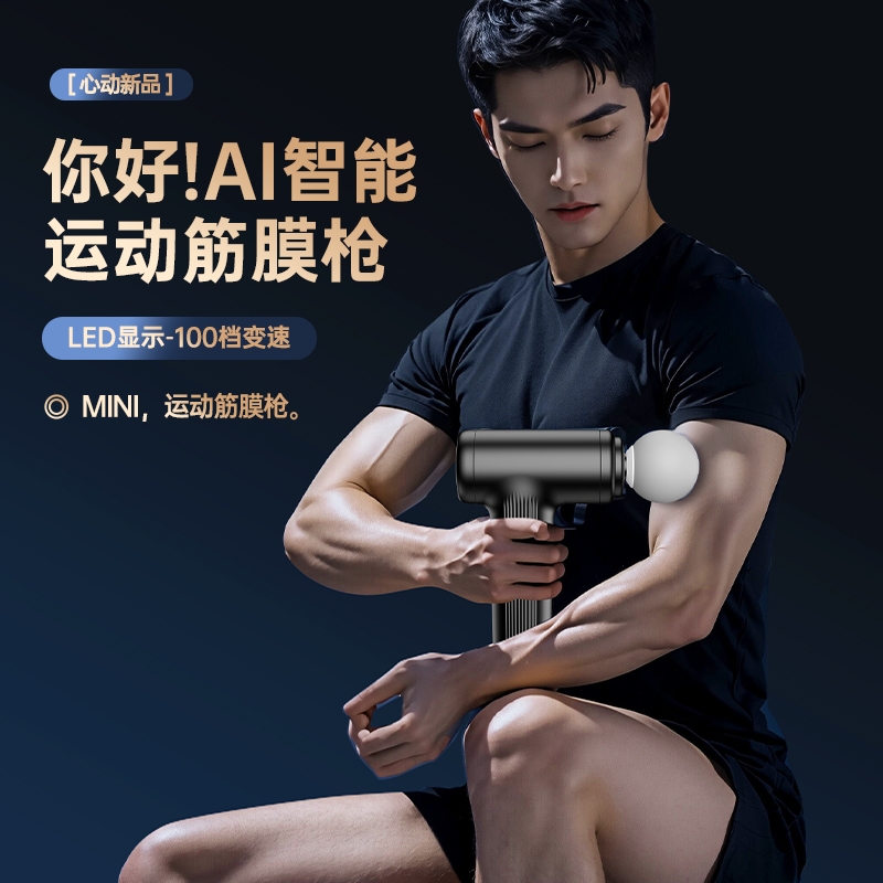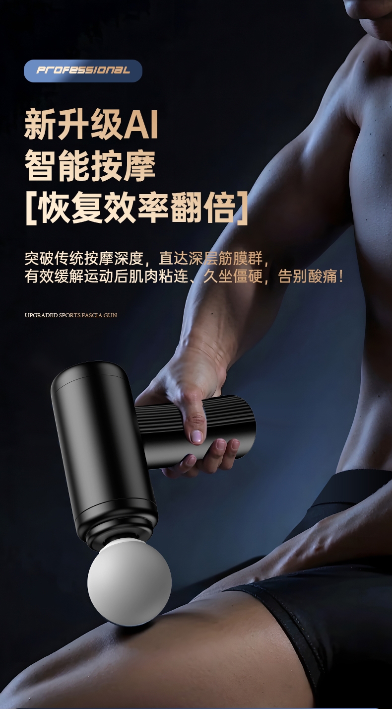 产品包装:筋膜枪+按摩头*5+充电线+说明书+彩盒
