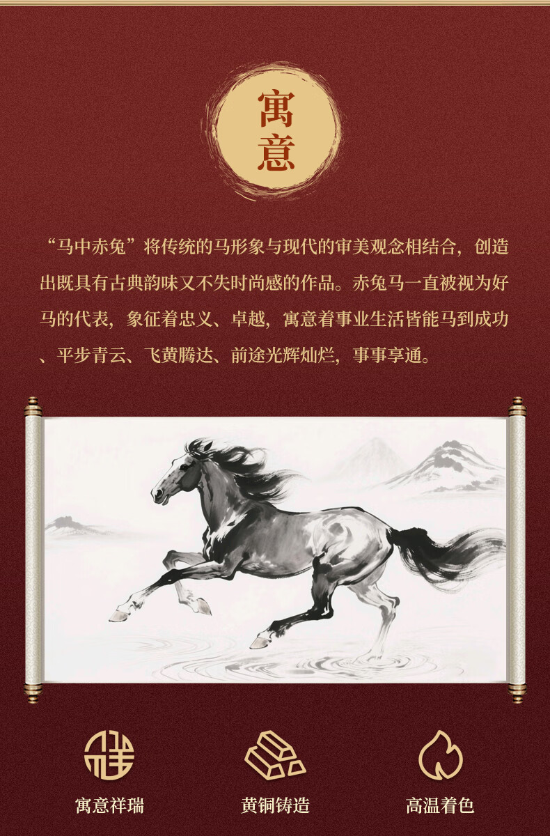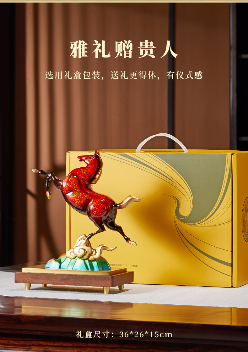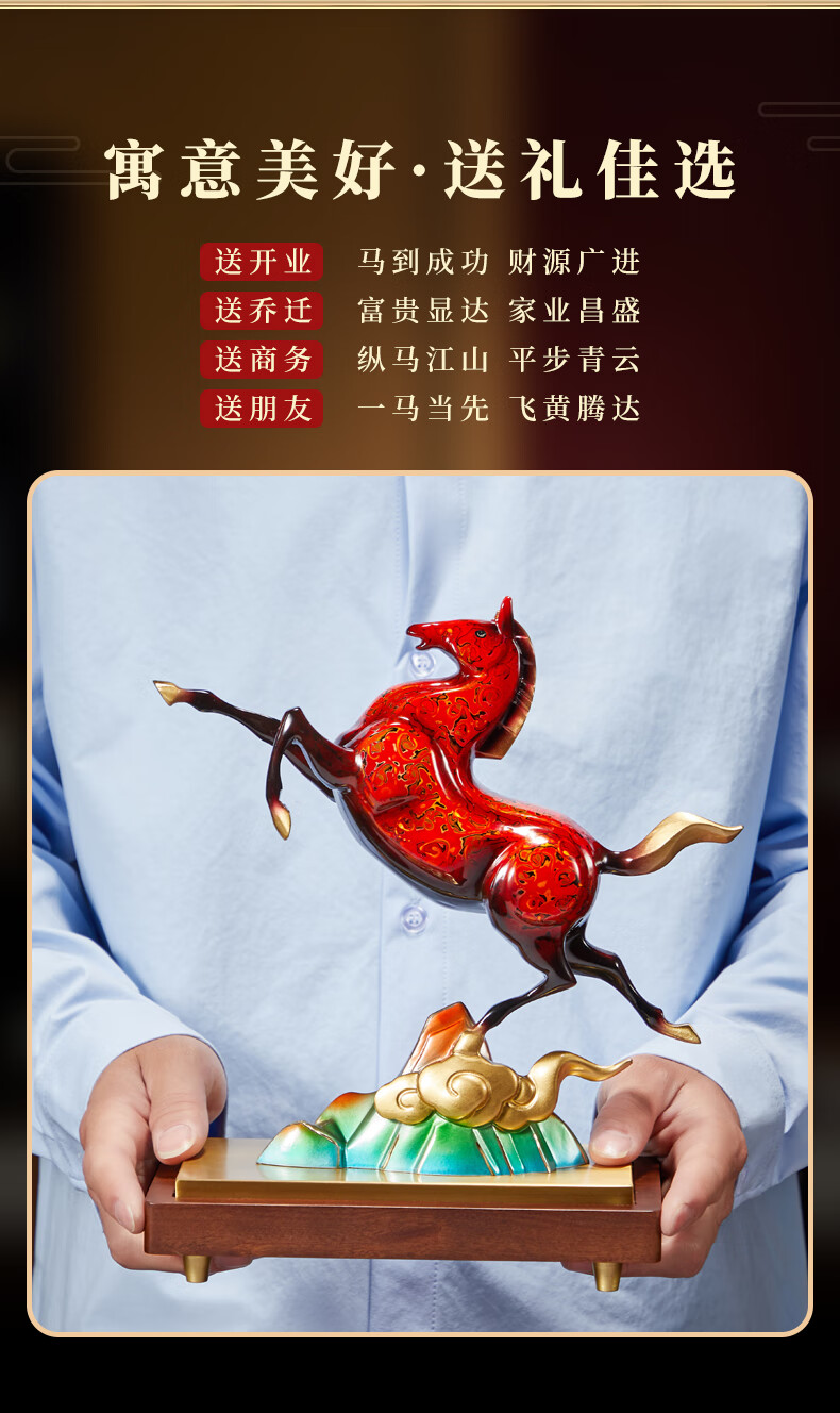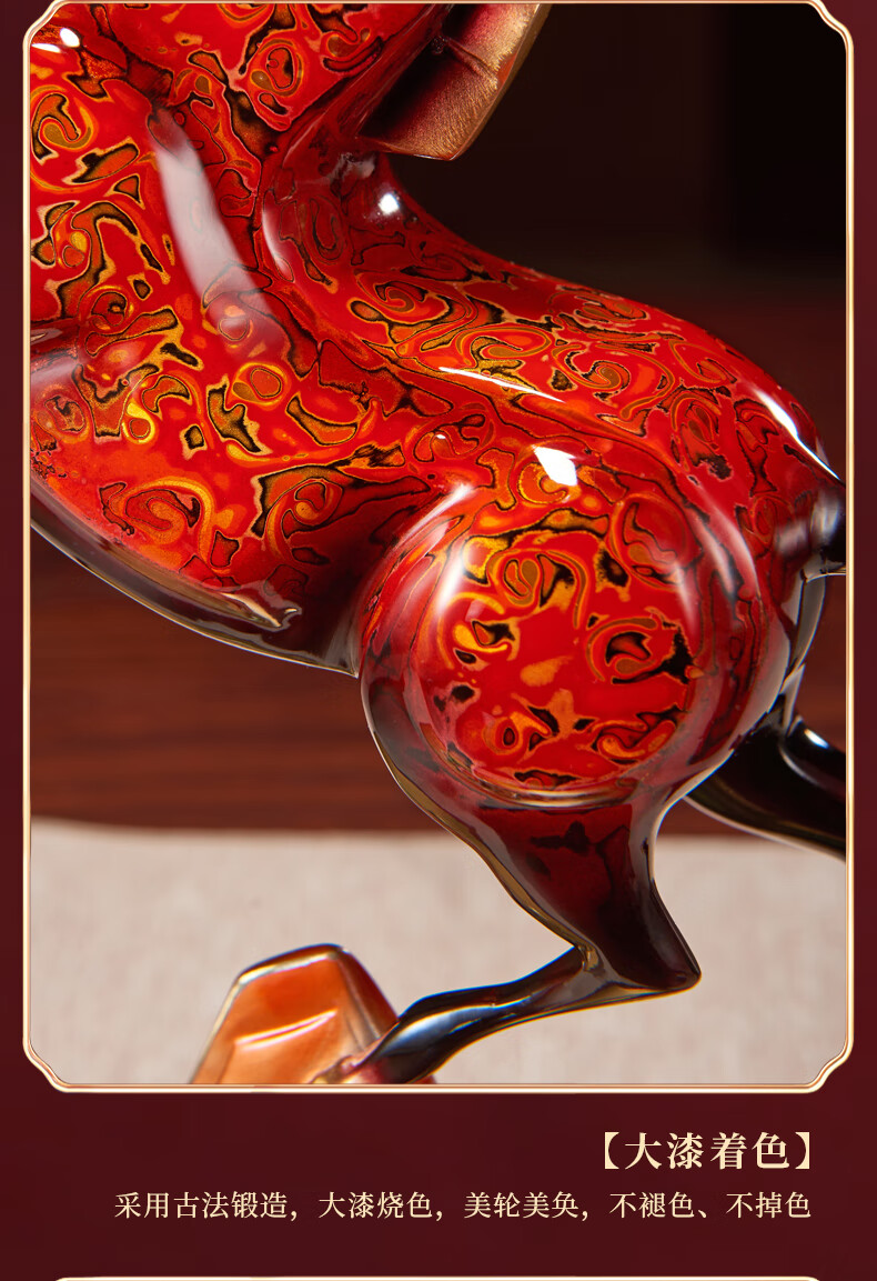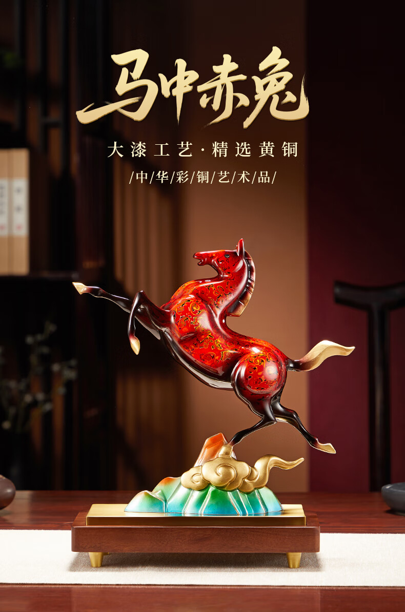 彩铜艺术品;寓意祥瑞,象征忠义卓越;大漆烧色,不褪色不掉色