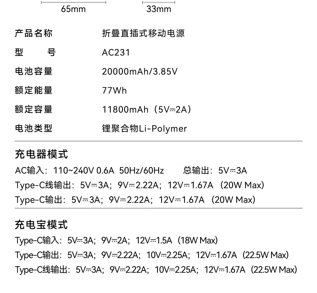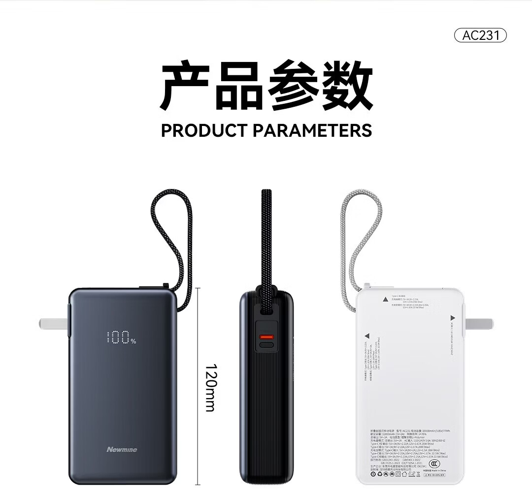 纽曼 直插快充充电宝AC231