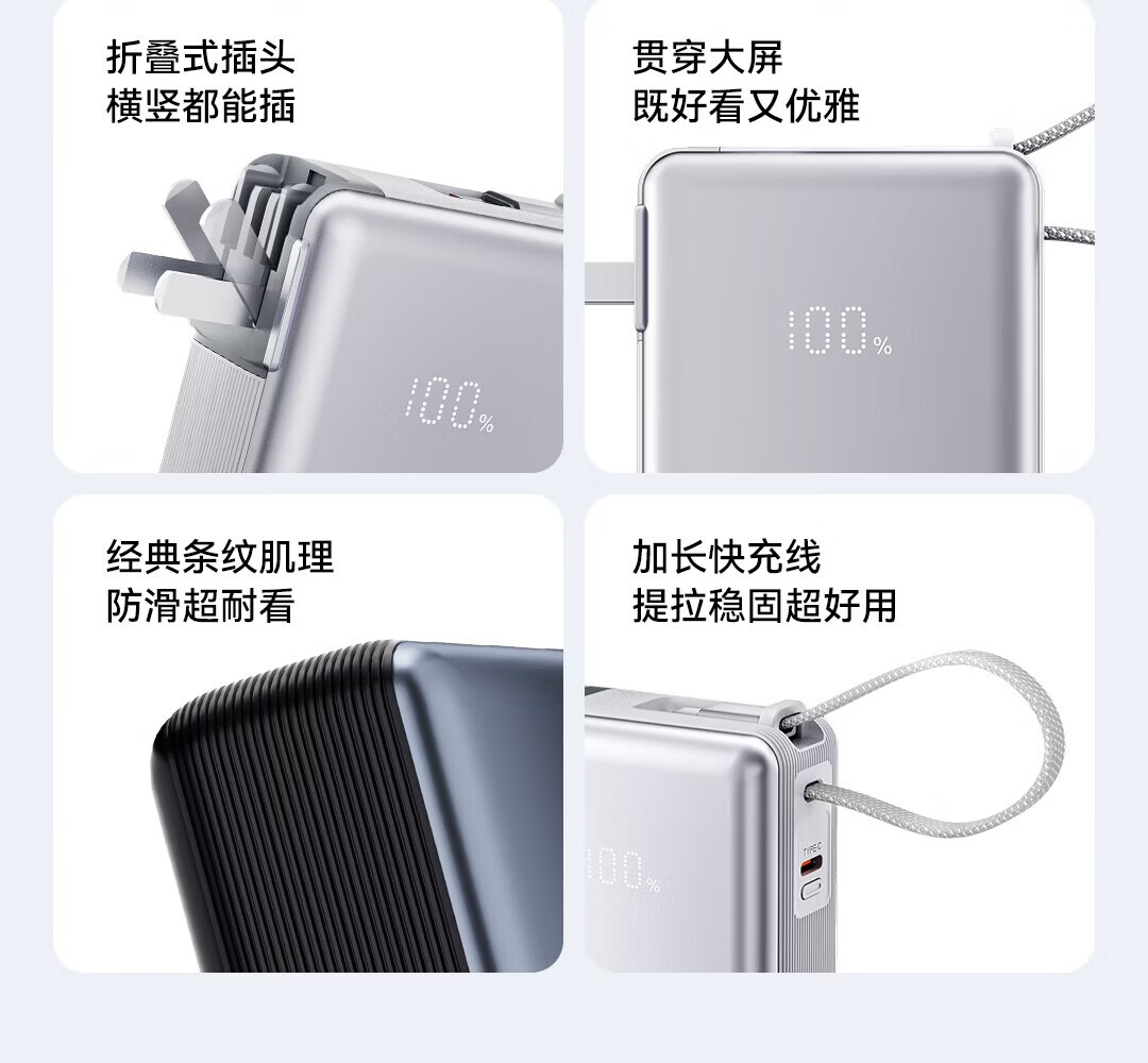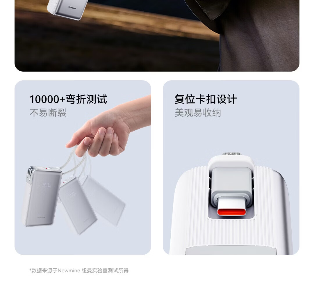 折叠式插头;加长快充线;复位卡扣设计