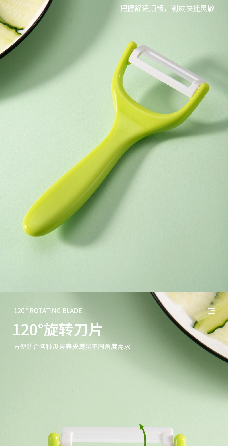 刀刃锋利不生锈:陶瓷刀切口干净;削皮器贴合果蔬弧度,削皮又快又薄;切水果不氧化发黑