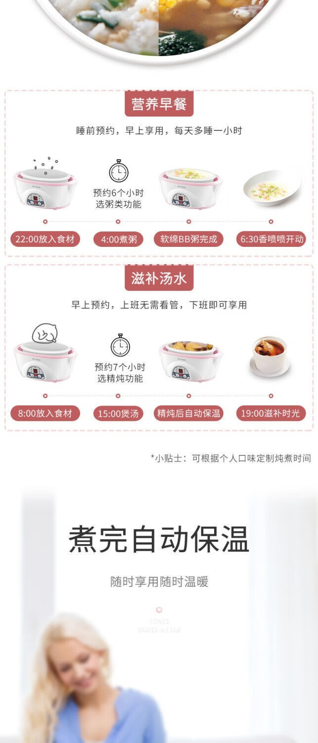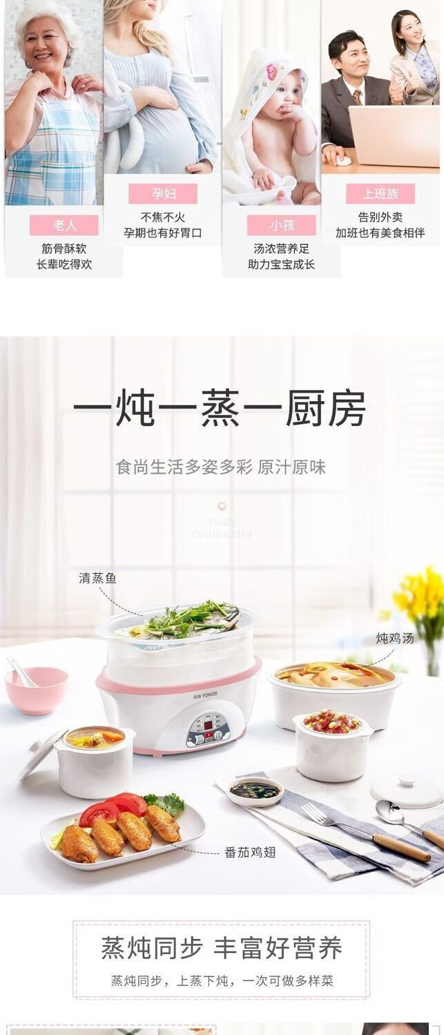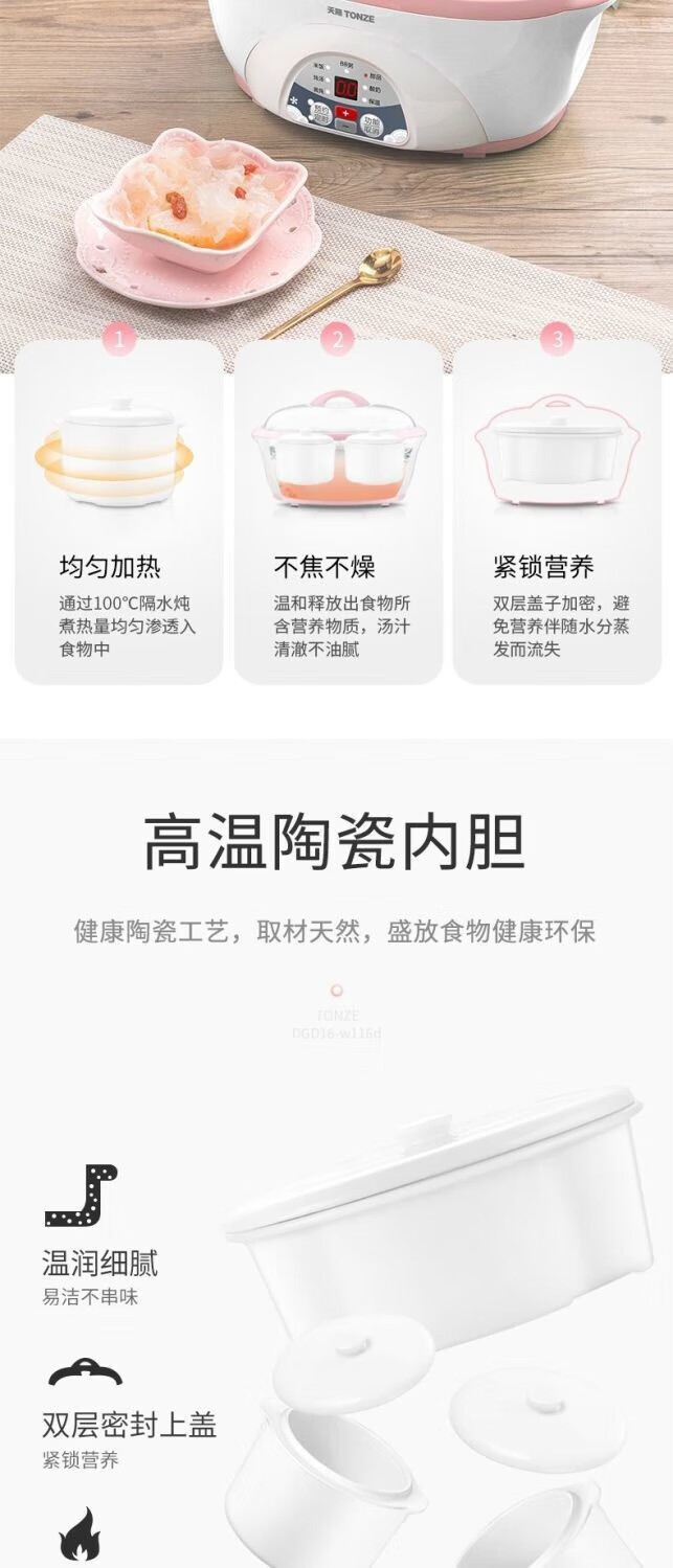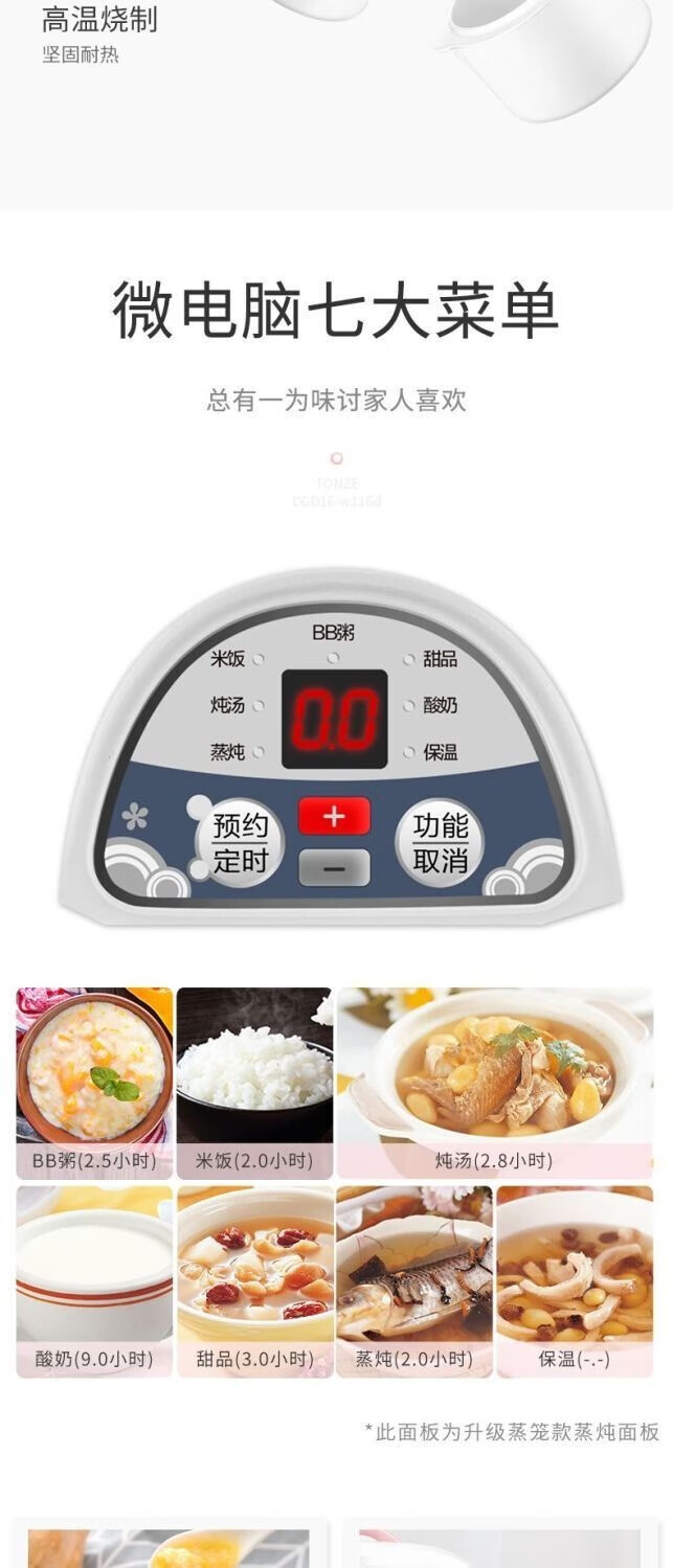 多陶瓷内胆组合;微电脑智能控制, 智能化;隔水柔炖