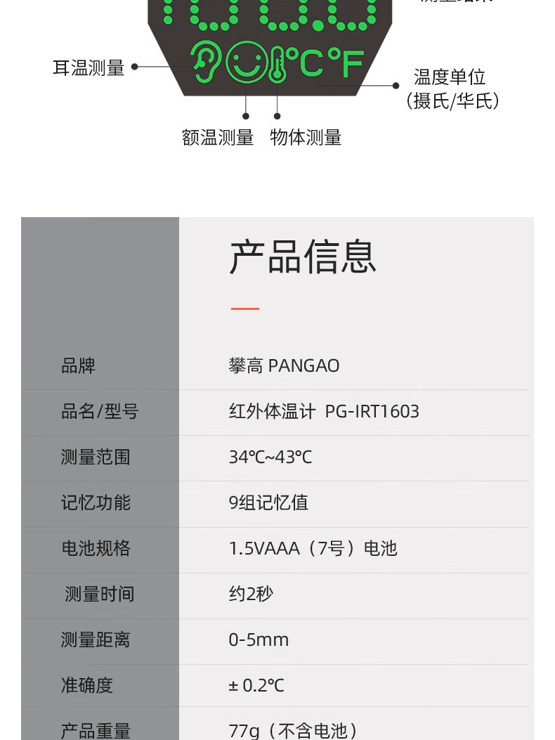 攀高 额头红外测温仪PG-IRT1603