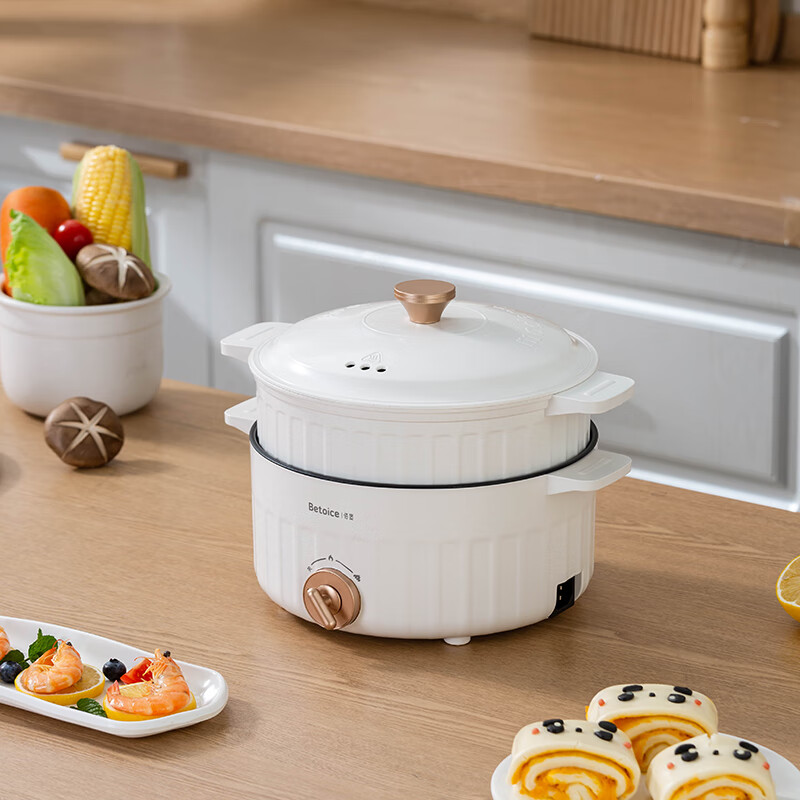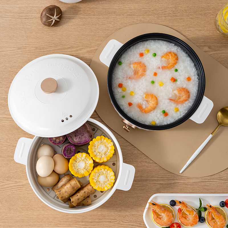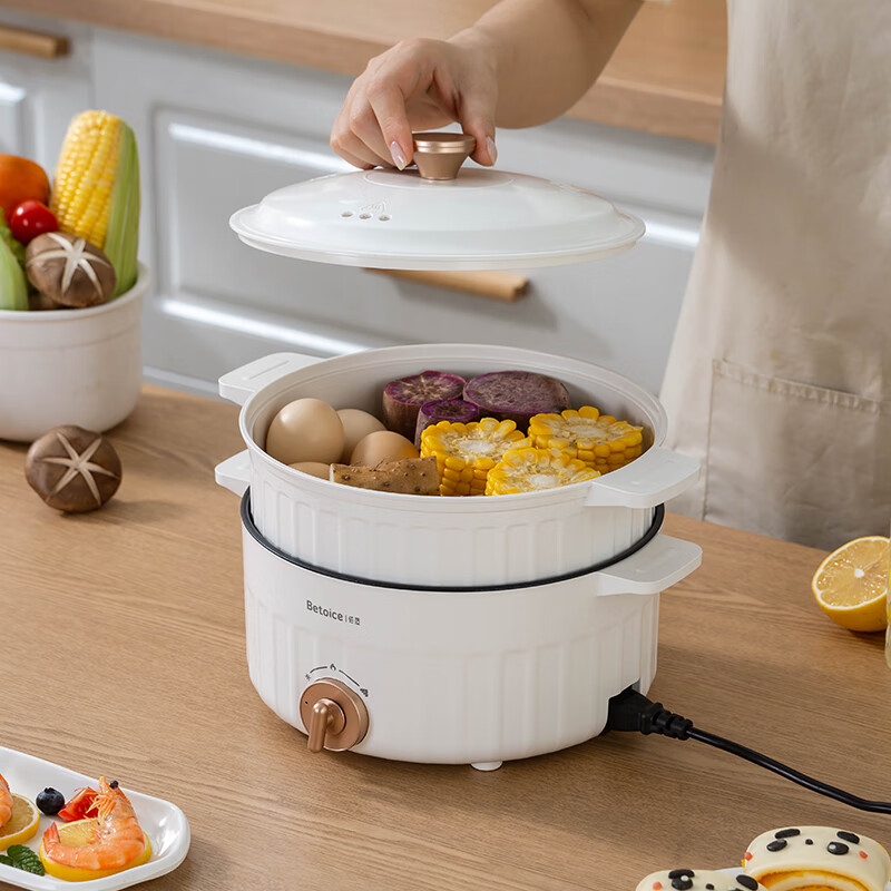 上蒸下煮,品质生活,一锅多用;;800W大功率,导热均匀,热力沸腾快速开涮;;两档火力调节,满足不同烹饪需求,美味尽在您的掌控;防烫锅身、防烫手柄、干烧保护,使用安全放心;不粘涂层内胆,轻松水洗,一擦即净。