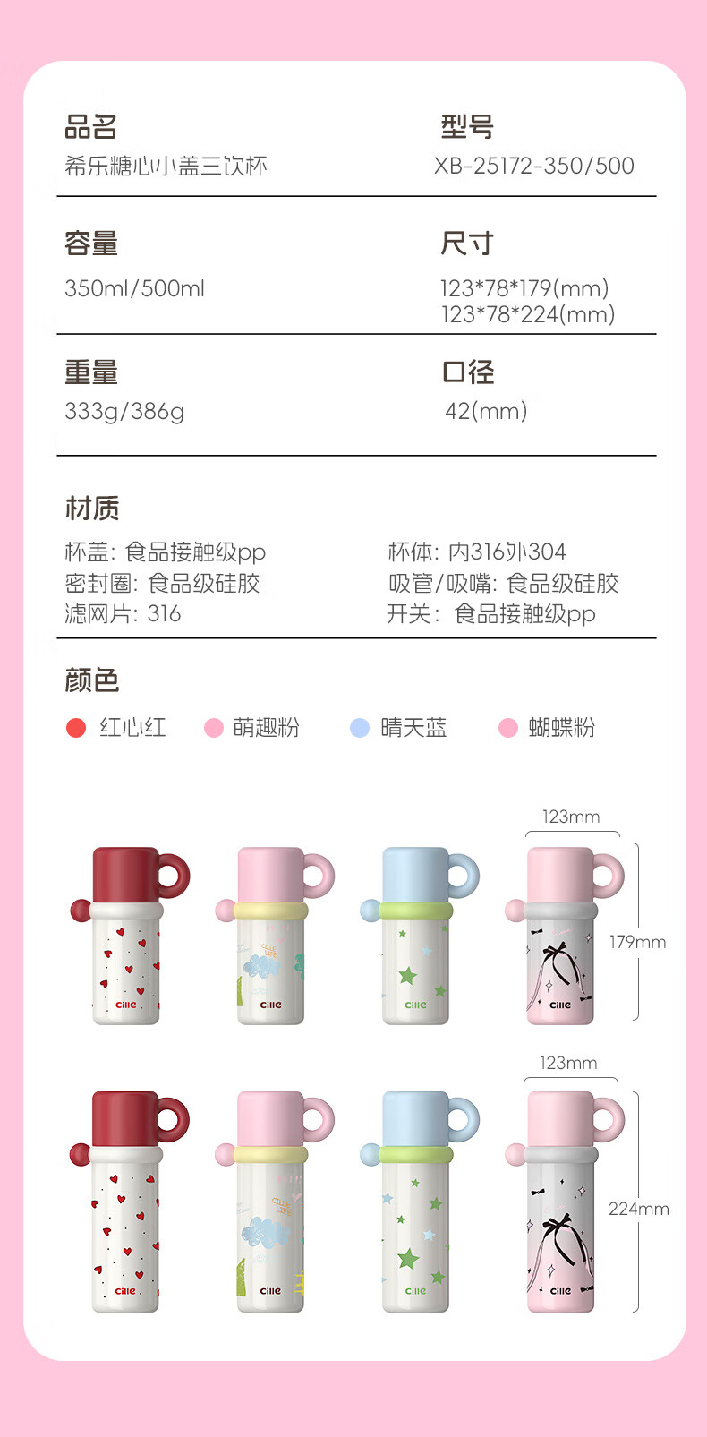颜色 :红心红 萌趣粉 晴天蓝 蝴蝶粉