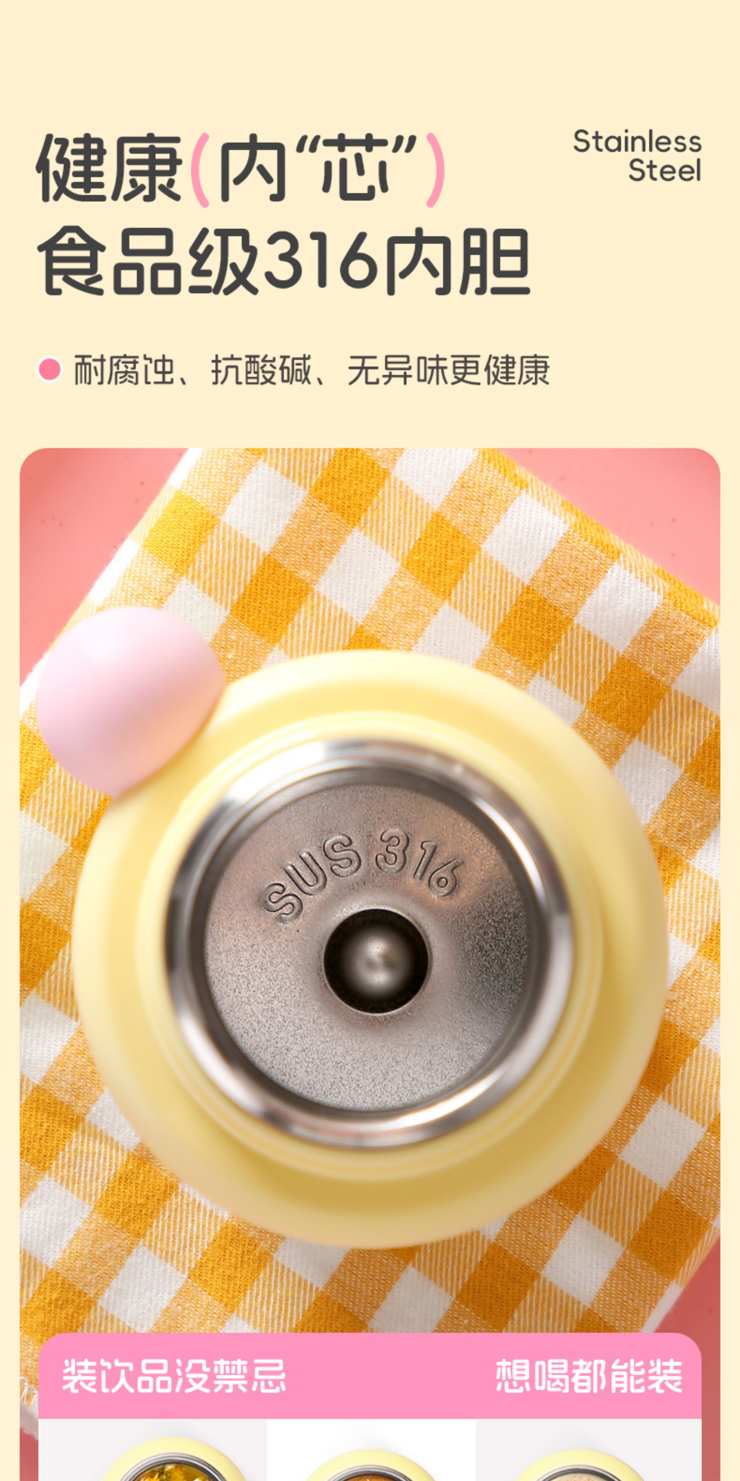 材质:盖PP,杯身内316外304,开关PP,滤网片316,吸嘴、吸管硅胶