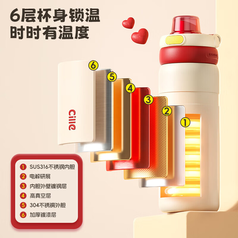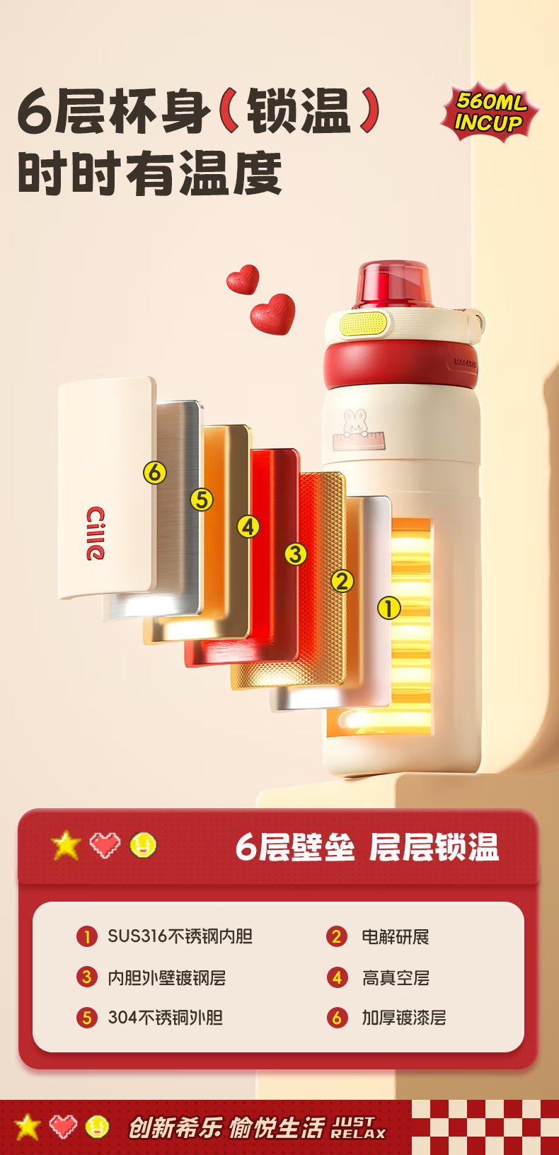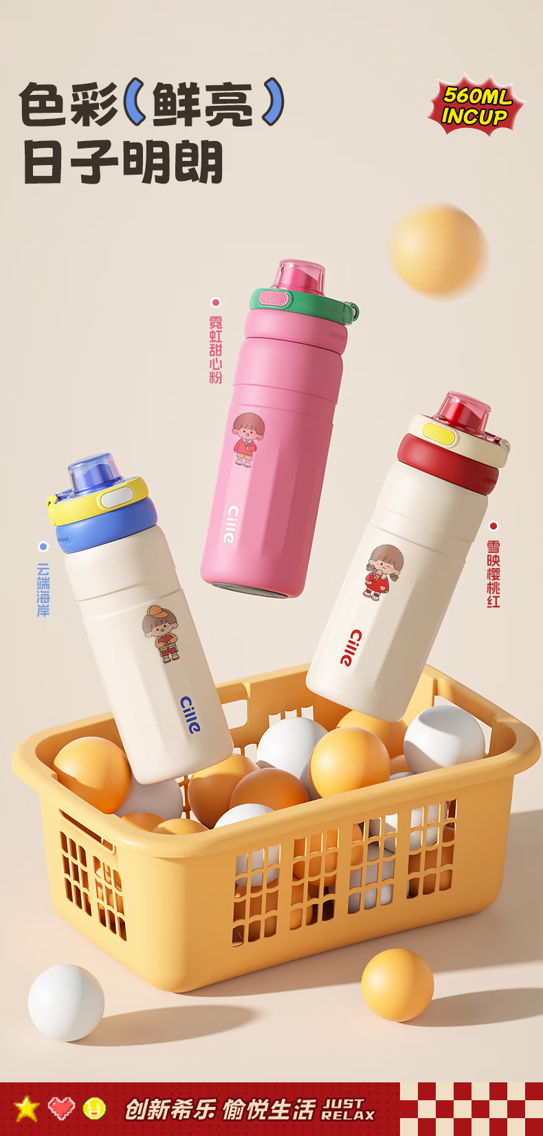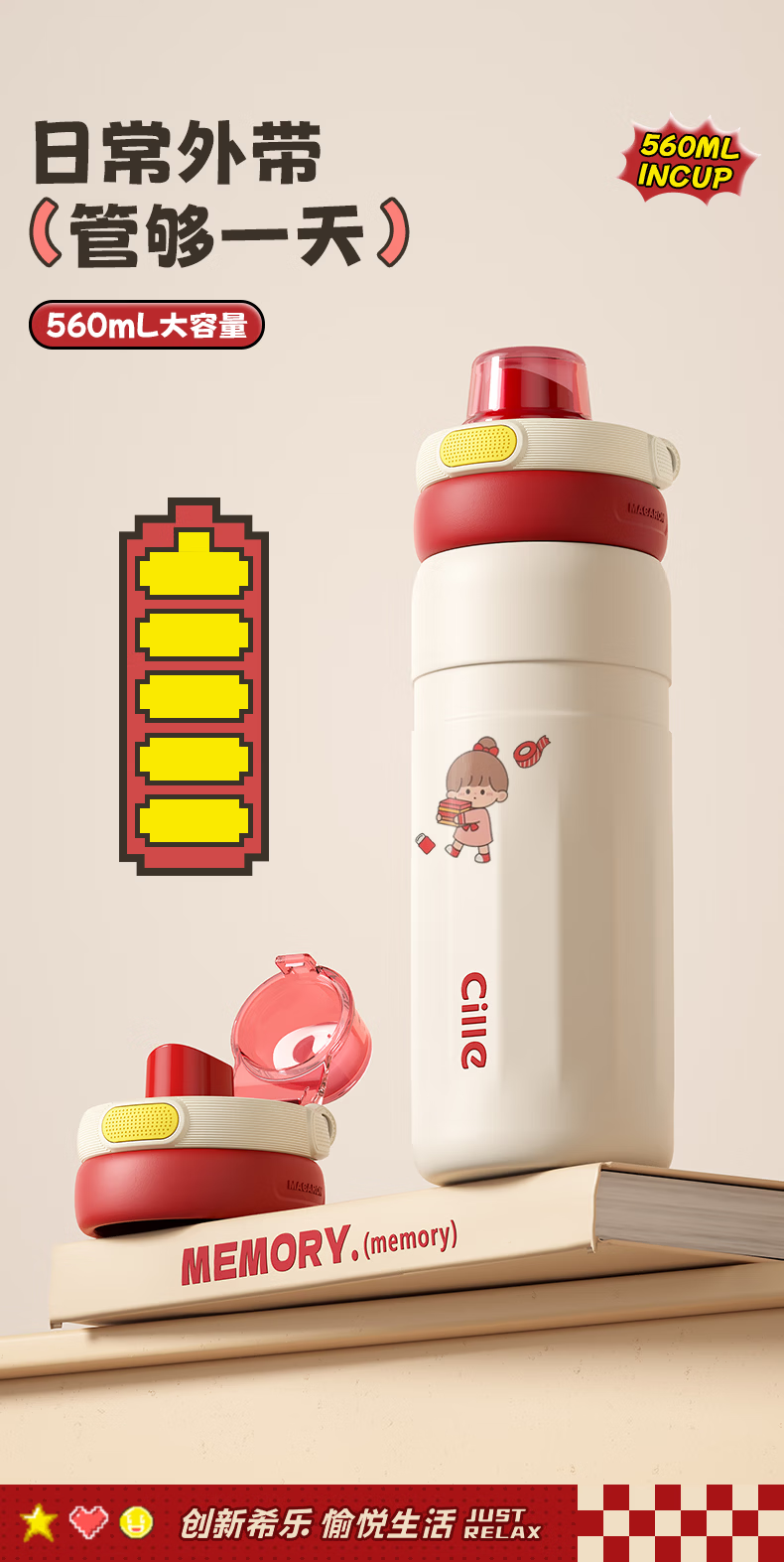 隐藏式折叠提手;一杯三饮;一键弹盖
