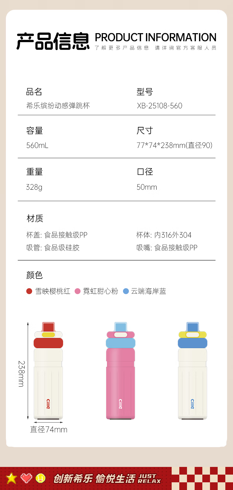 希乐 缤纷动感弹跳杯560MLXB-25108-560