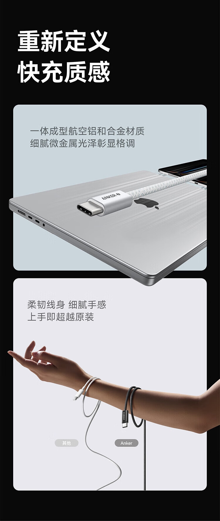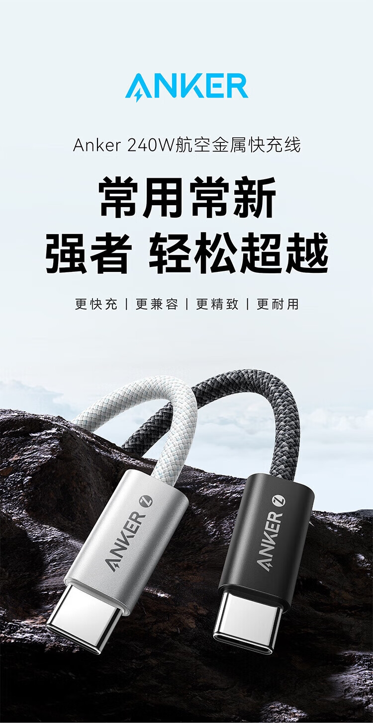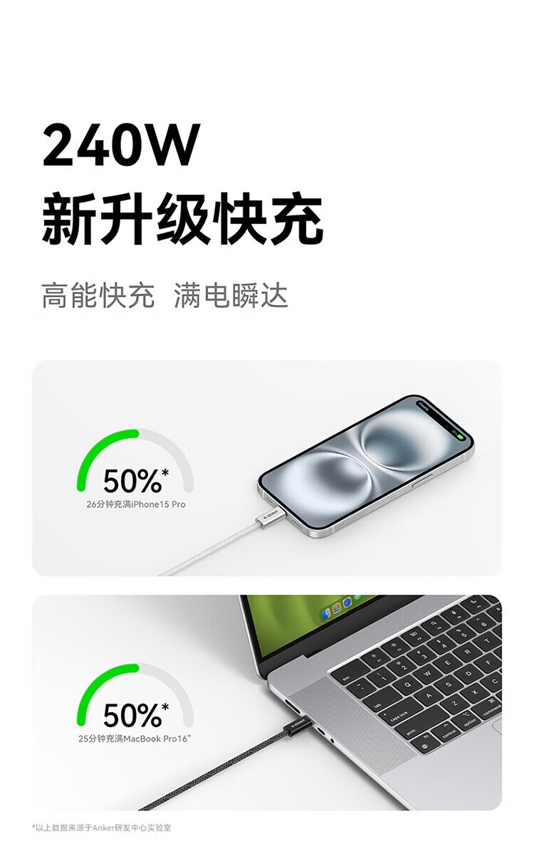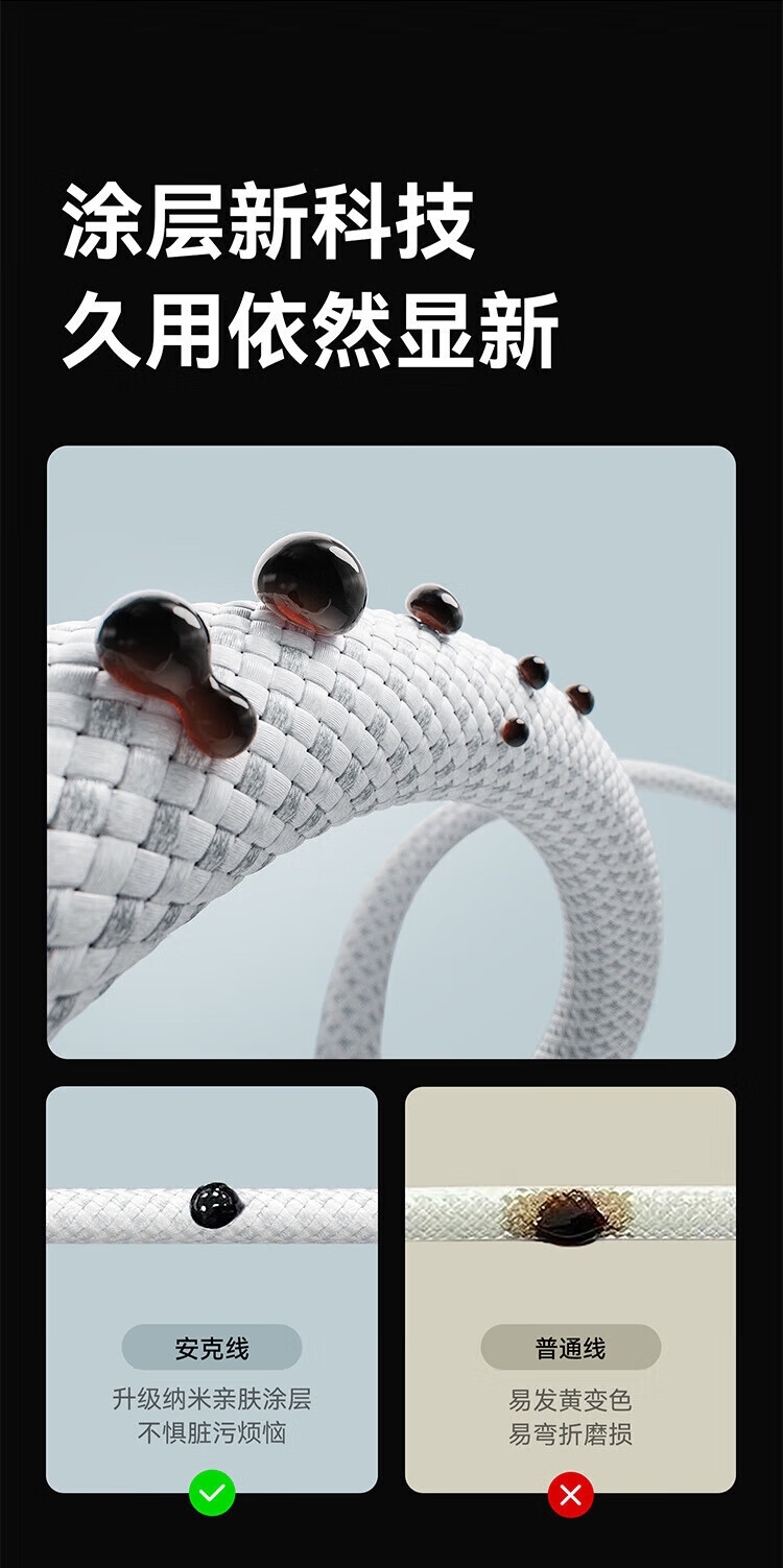 240W航空快充数据线;石墨烯散热层,快充不发烫;升级纳米亲肤图层,不惧脏污烦恼