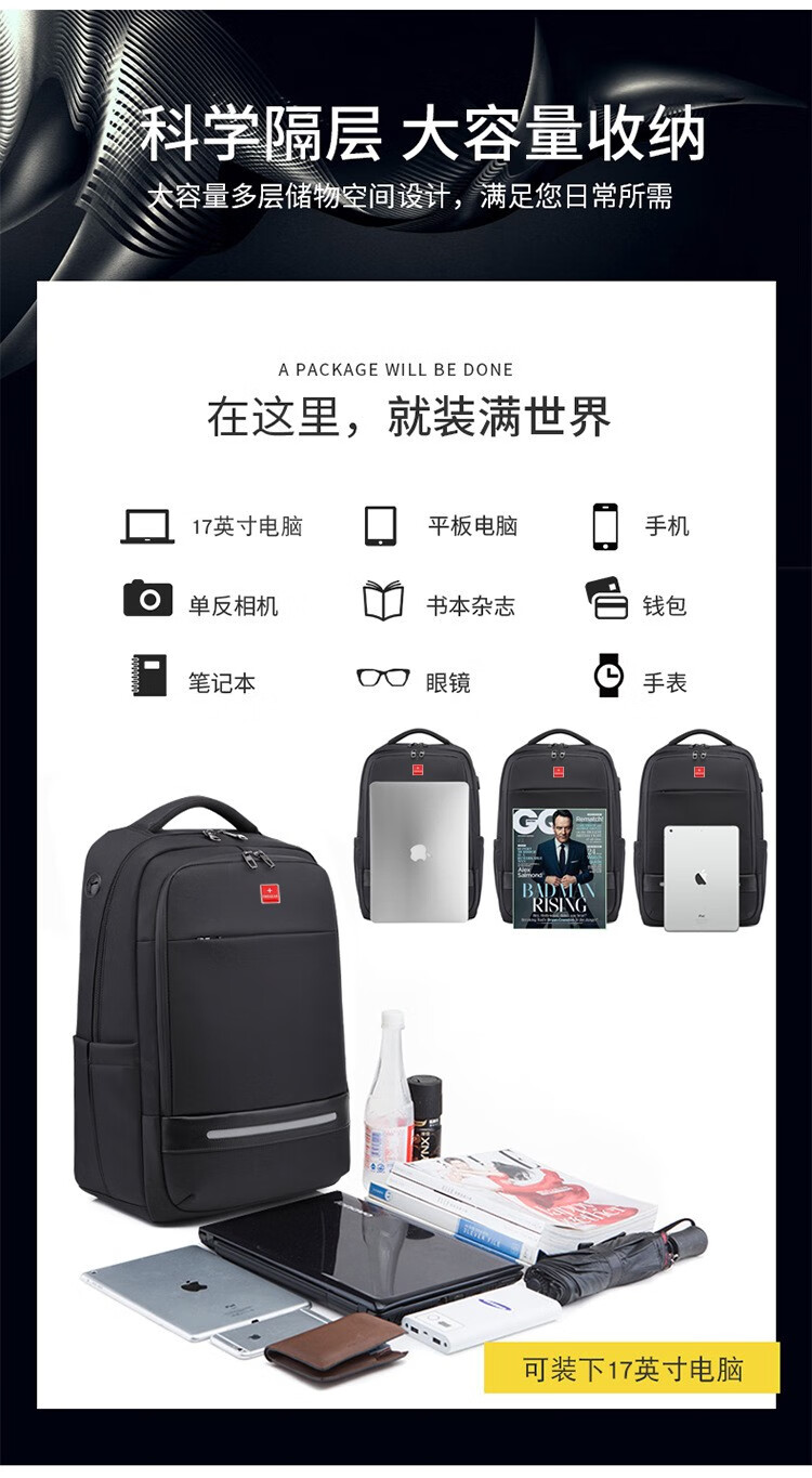 斯维格尔 商务双肩包电脑包多功大容量背包SWE-BP5317