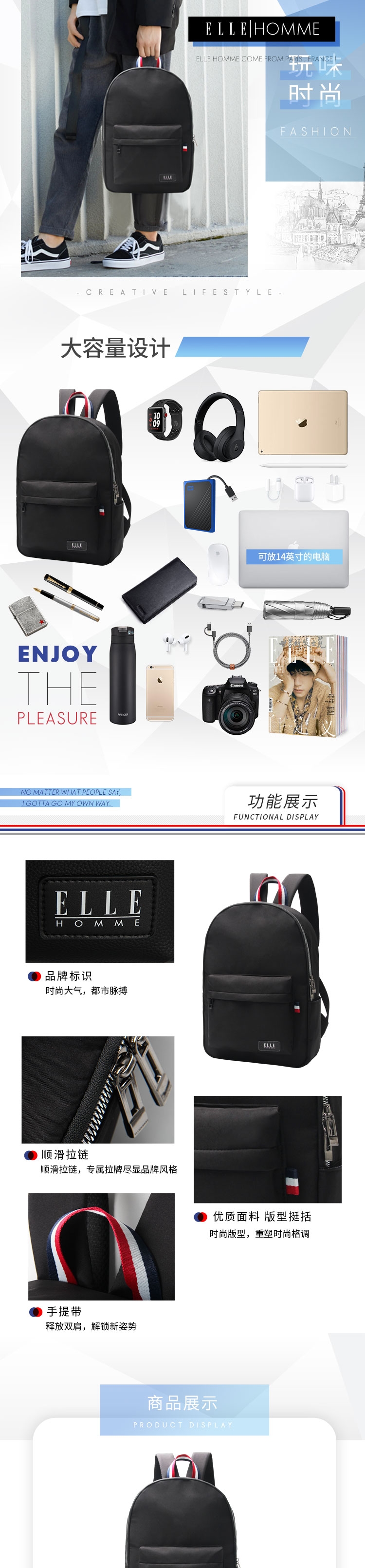 品质面料,柔韧度好,耐磨耐用;背带是今年流行设计,随意转换舒适姿态, 减少肩;顺滑拉链,电镀打磨,防刮痕,不易褪色