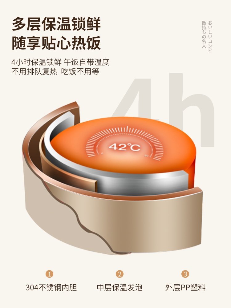 医用304不锈钢内碗,健康安心每一餐;;一格一味,自由搭配,营养分隔不串味;;内外层分离设计,端拿防烫,保温效果更佳;