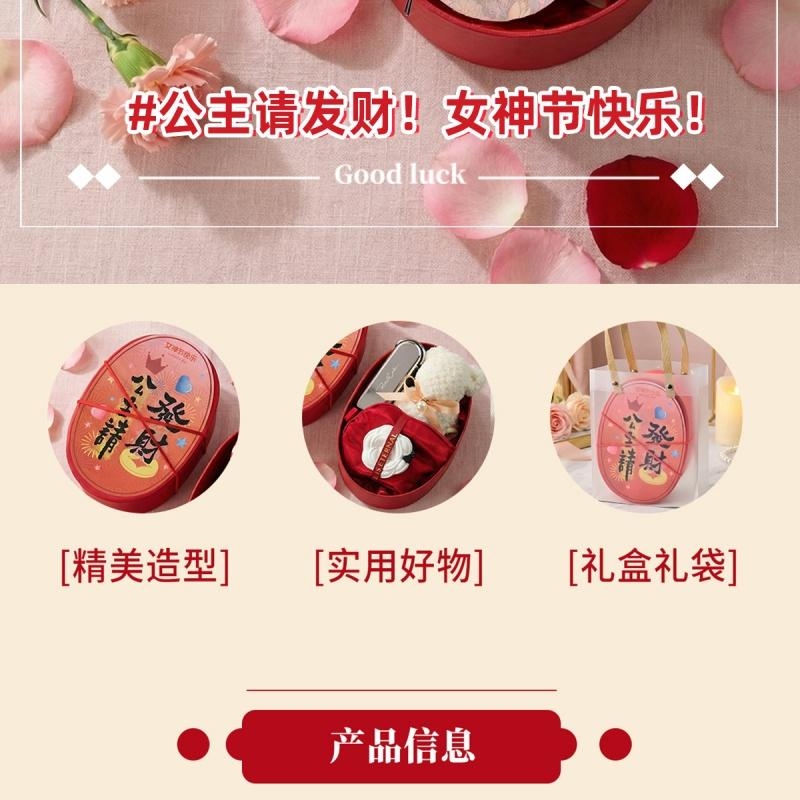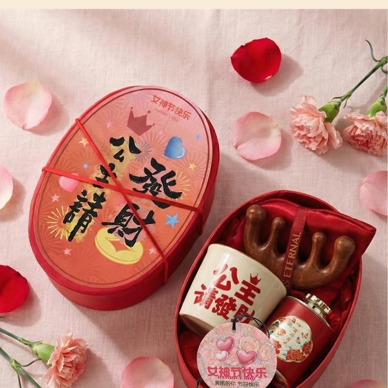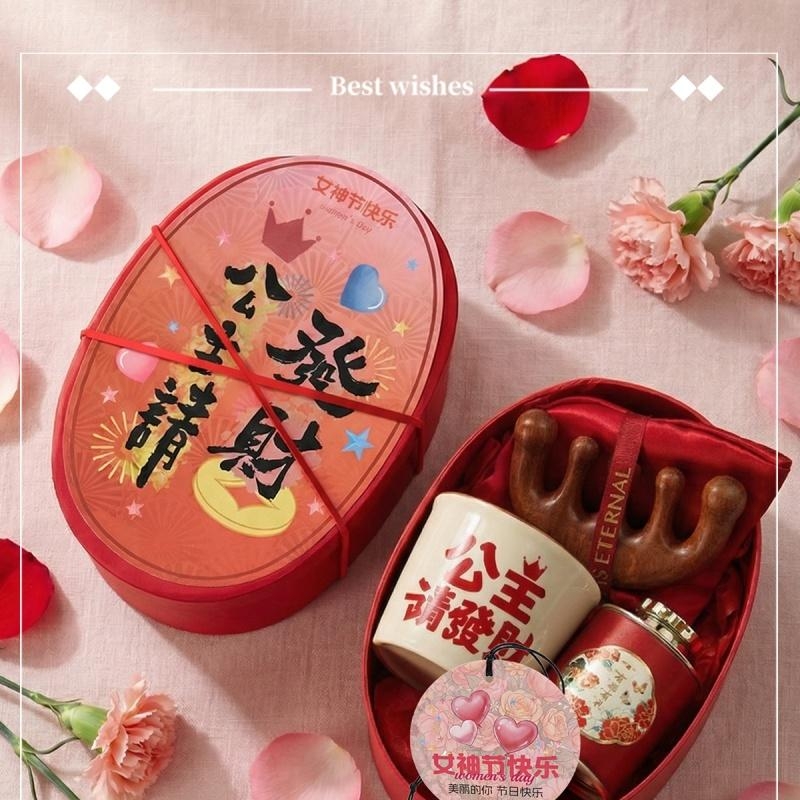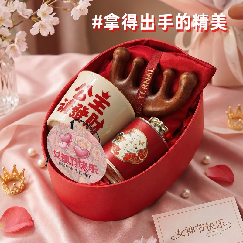 组合:眼罩按摩梳、公主请发财茶杯、有福有礼福建红茶10克、女神节香片香挂