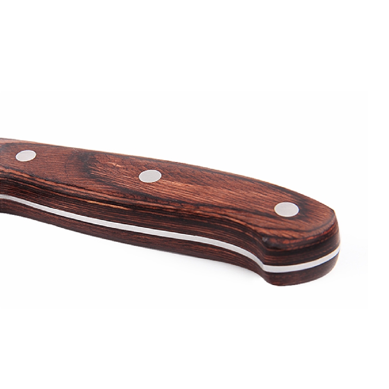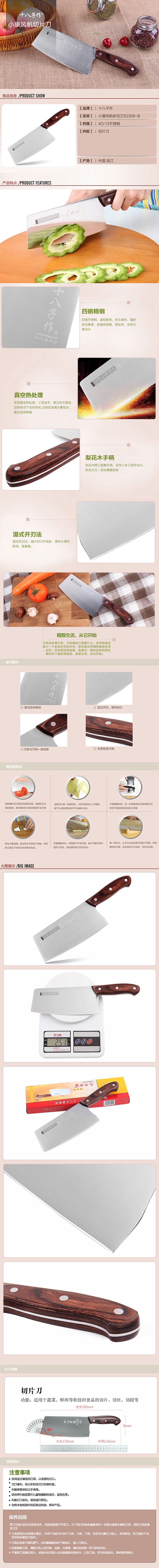 为女性度身打造的刀体,重量分布适中,长用不累;;适用于蔬菜、鲜肉等软组织食品的切片、切丝、切段等;;22层原木压制表面精抛光密度高不易渗水