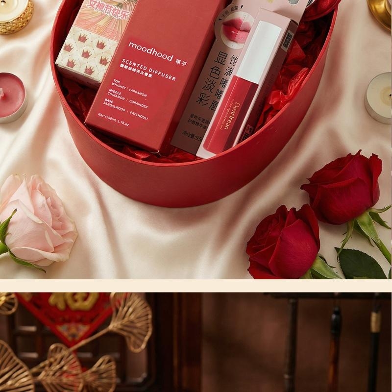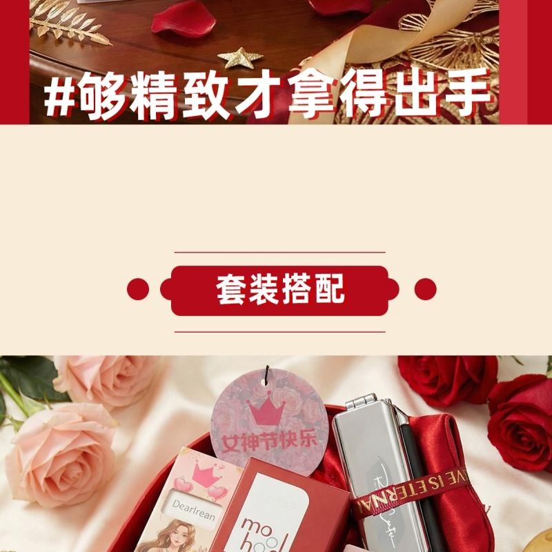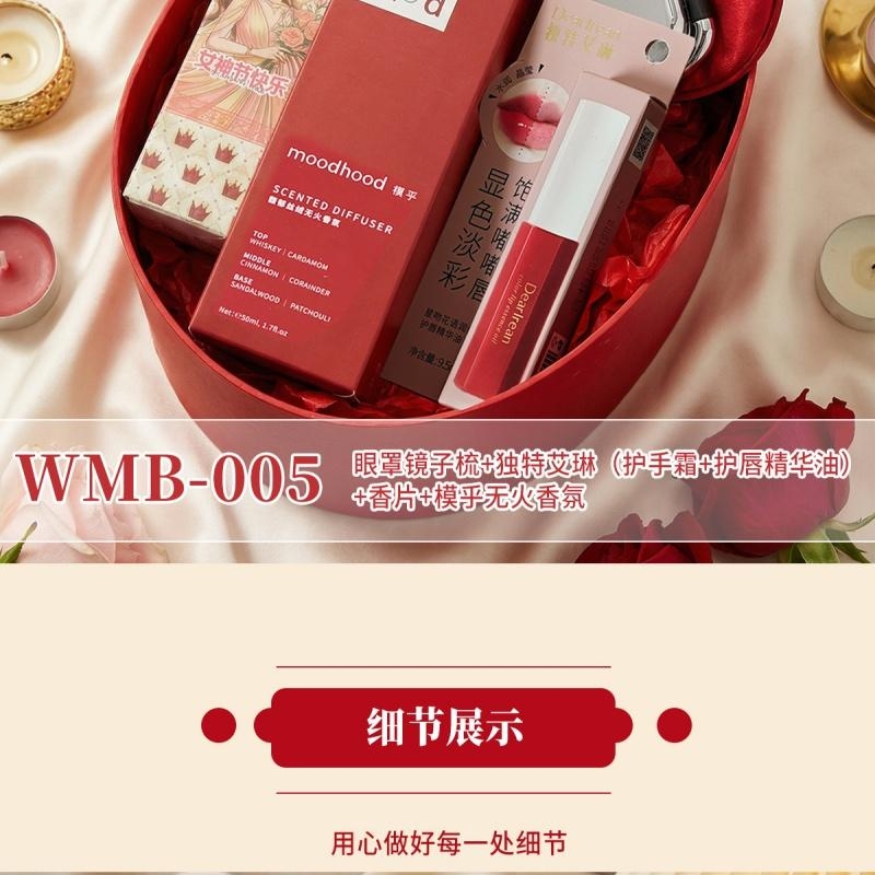 组合:眼罩头梳镜子、独特艾琳护唇精华油9.5ml、独特艾琳护手霜35ml、模乎无火香氛液50ml、女神节香片香挂