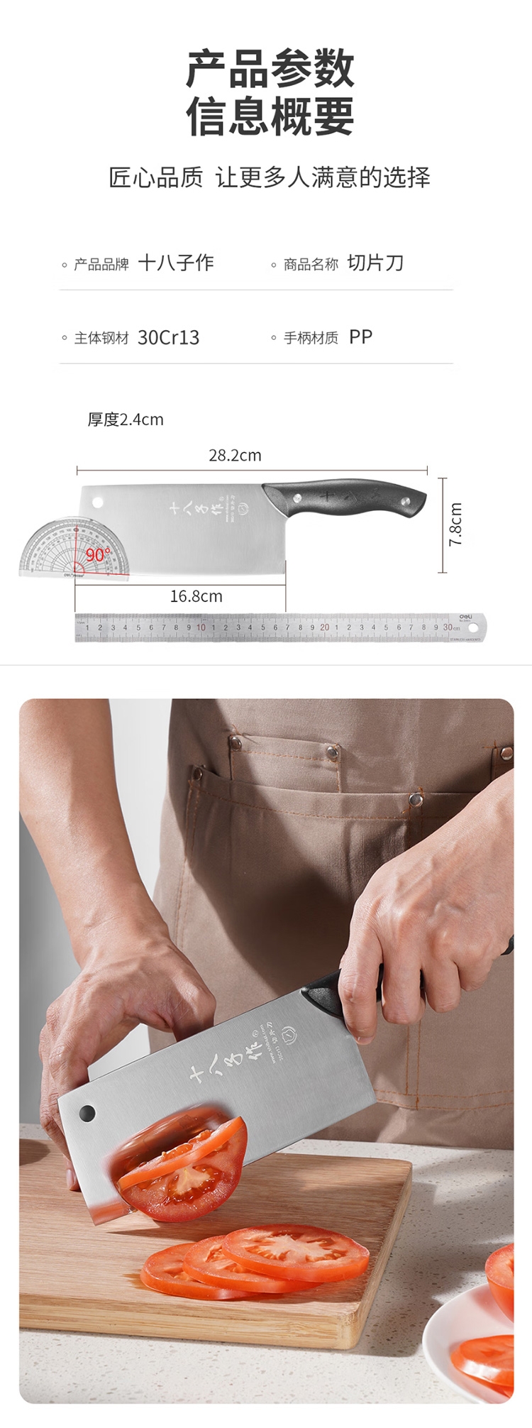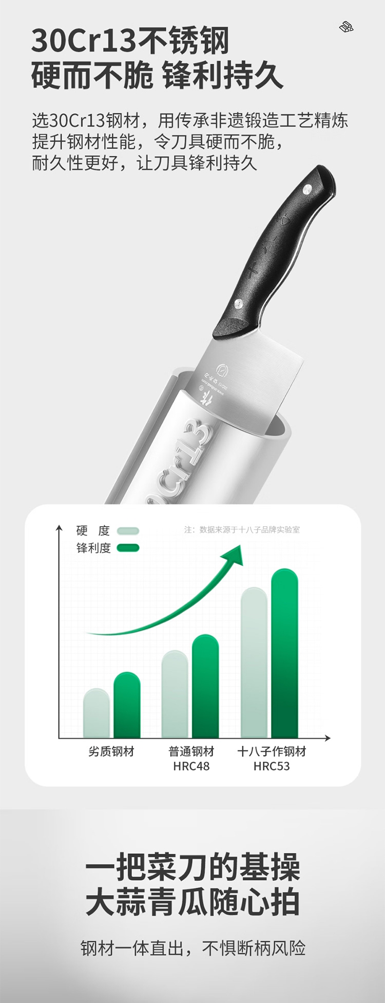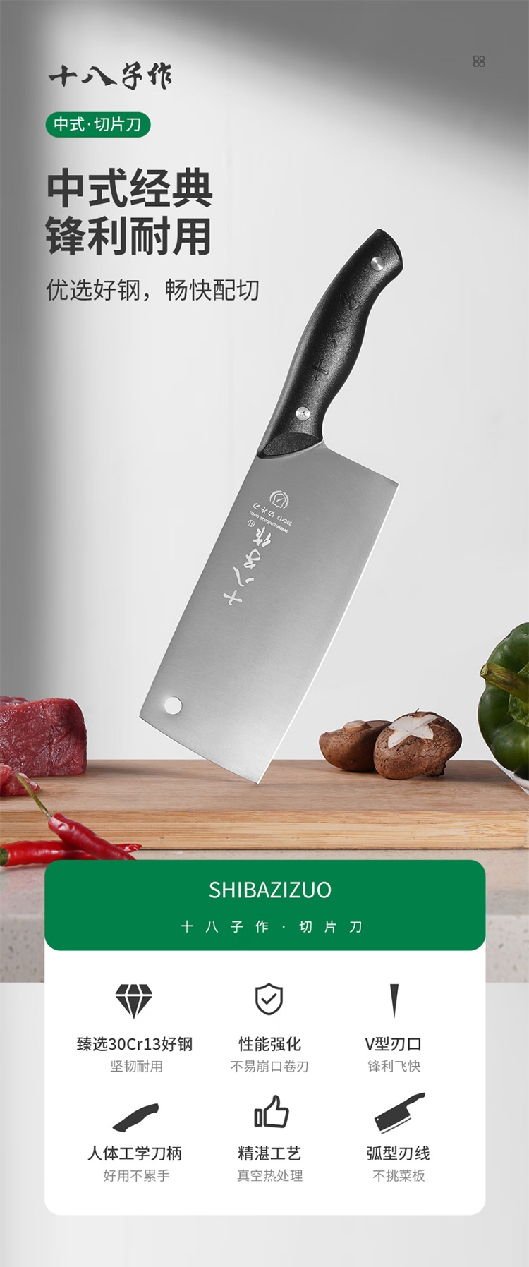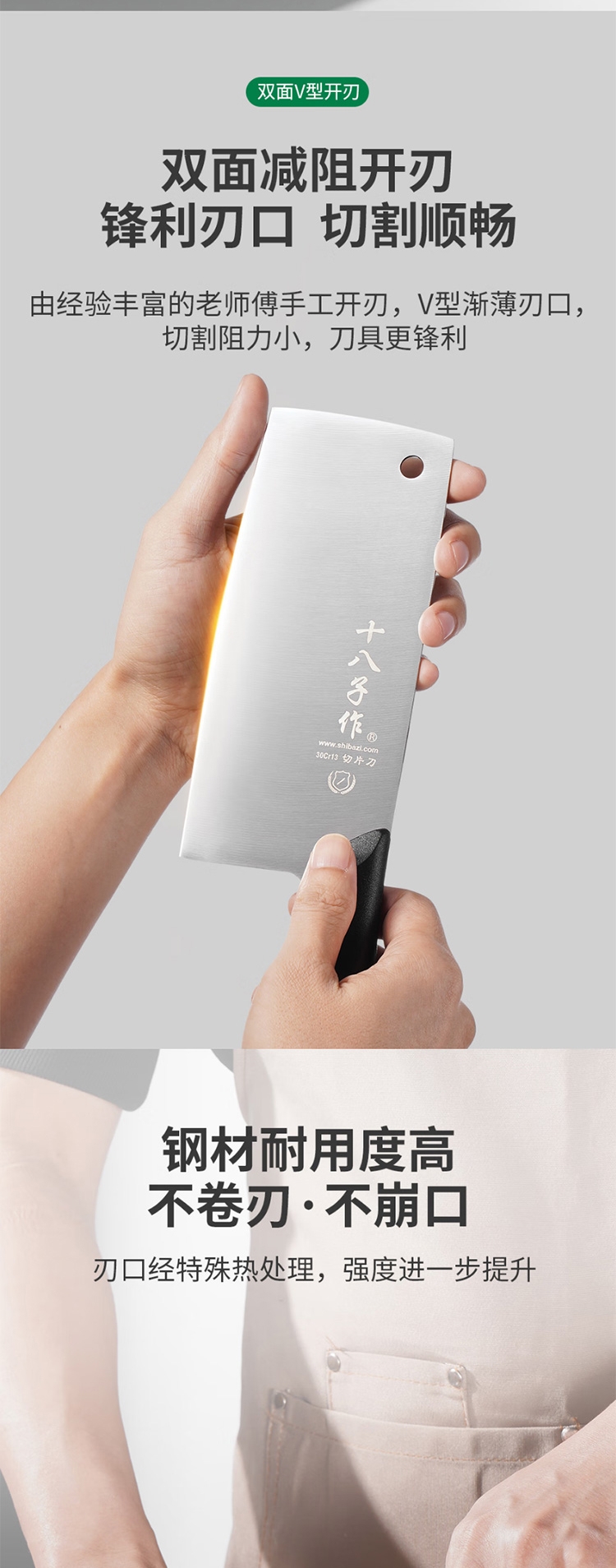 甄选30cr13好钢,坚韧耐用;性能强化,不易崩口卷刃;V型刃口,锋利飞快