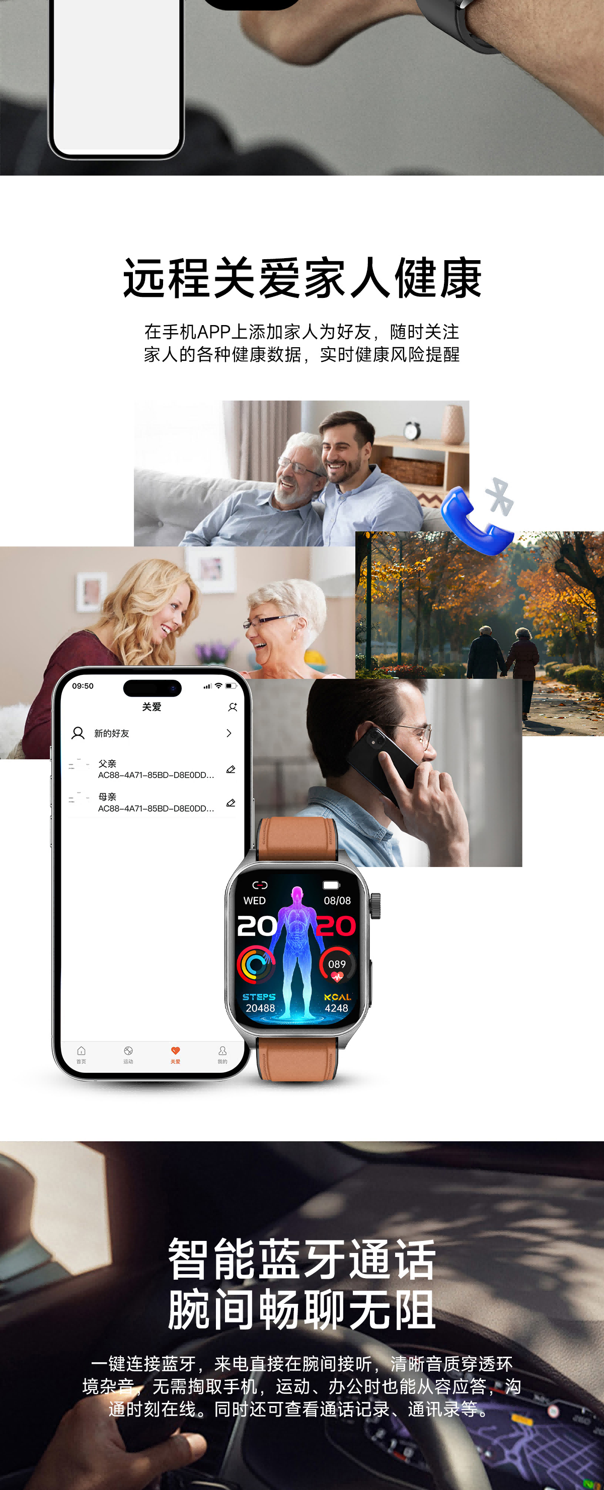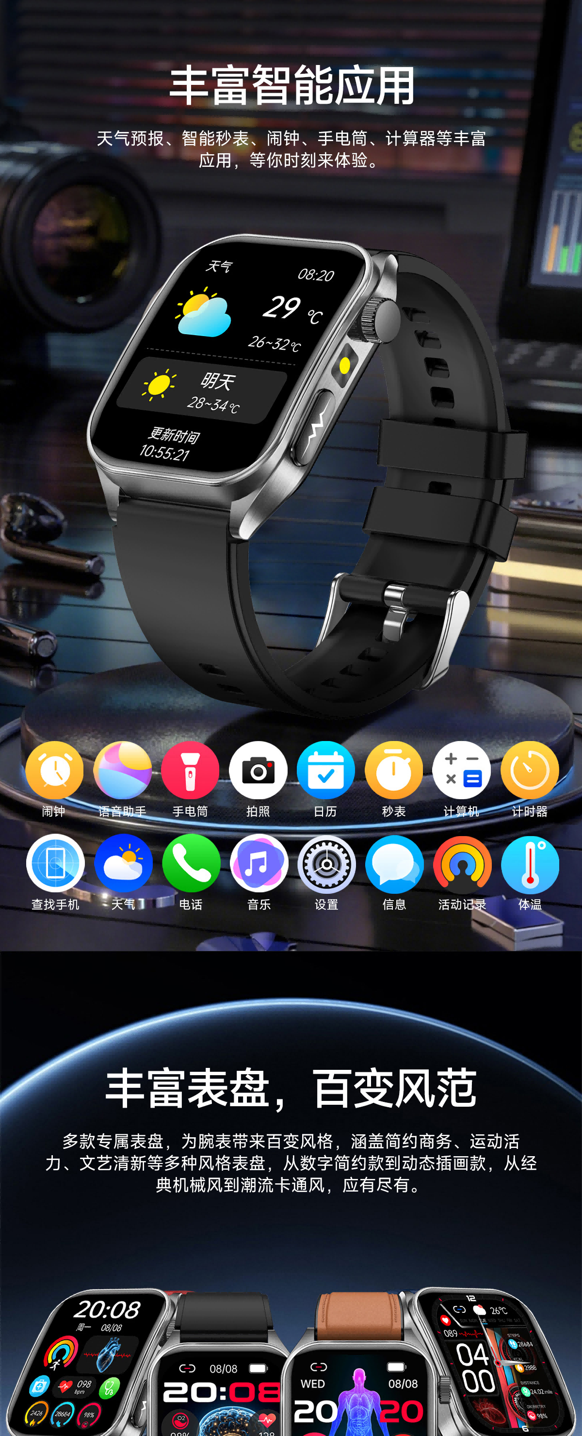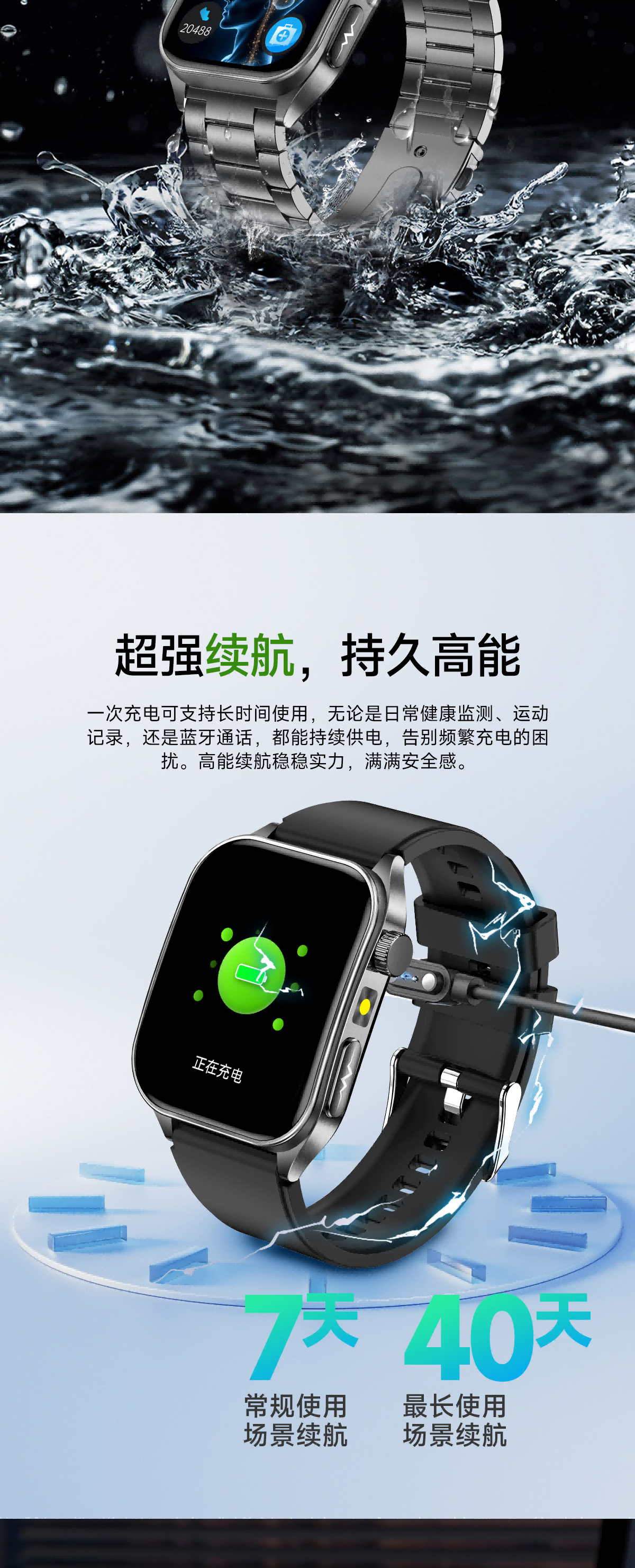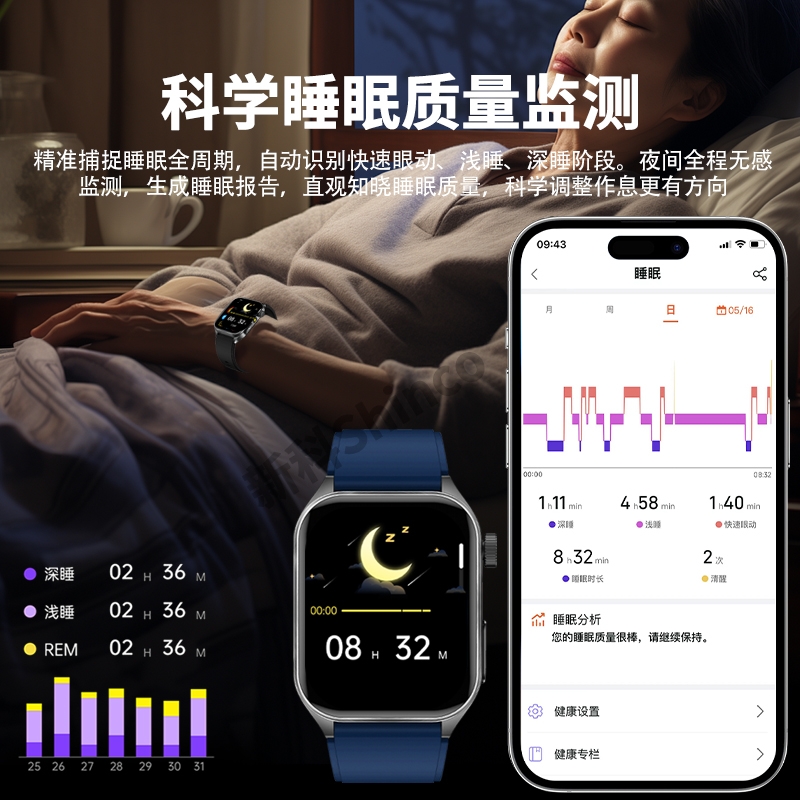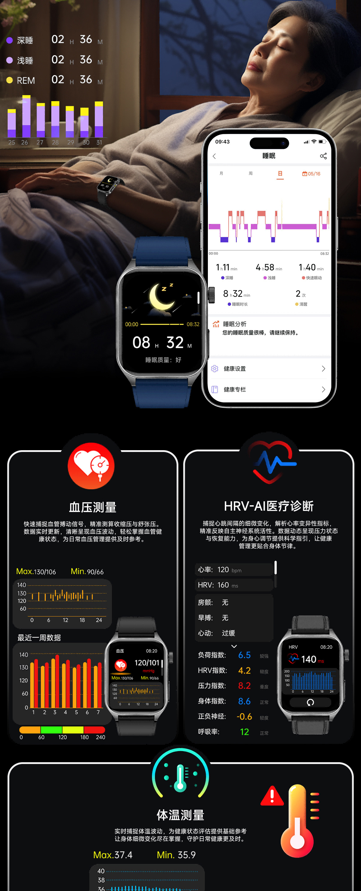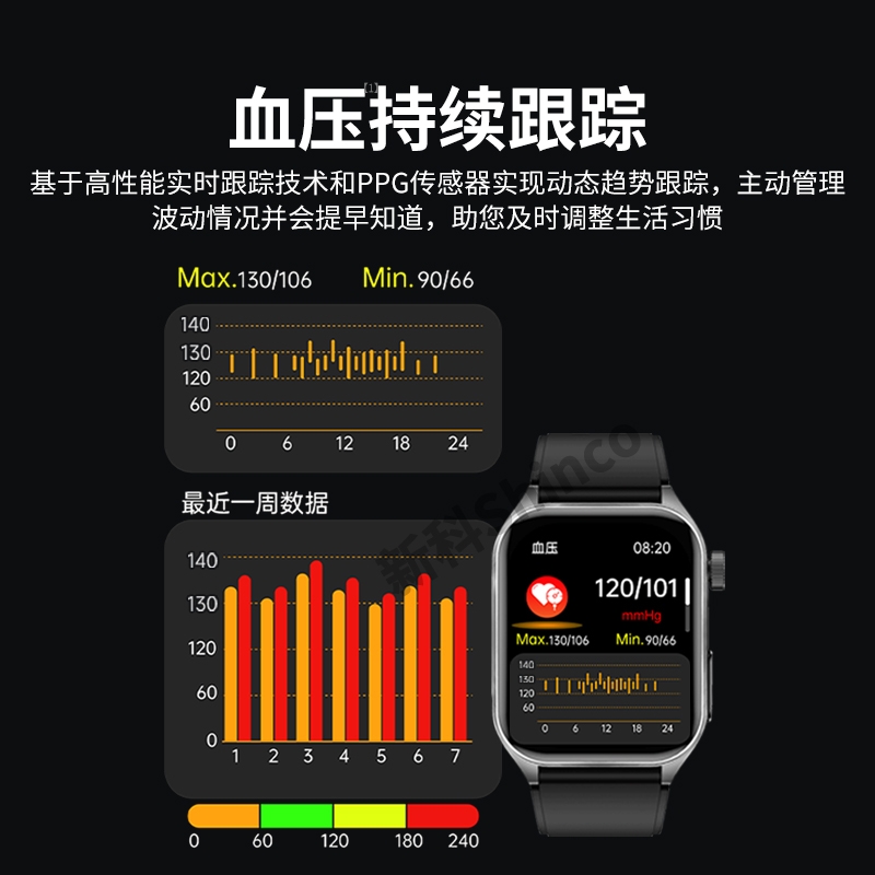 高清视网膜屏1.952英寸高分辨率410*502;ECG心电测量 心电分析与报告时刻守护心脏健康;多维度健康管理 心率、血氧、HRV、睡眠等多维度