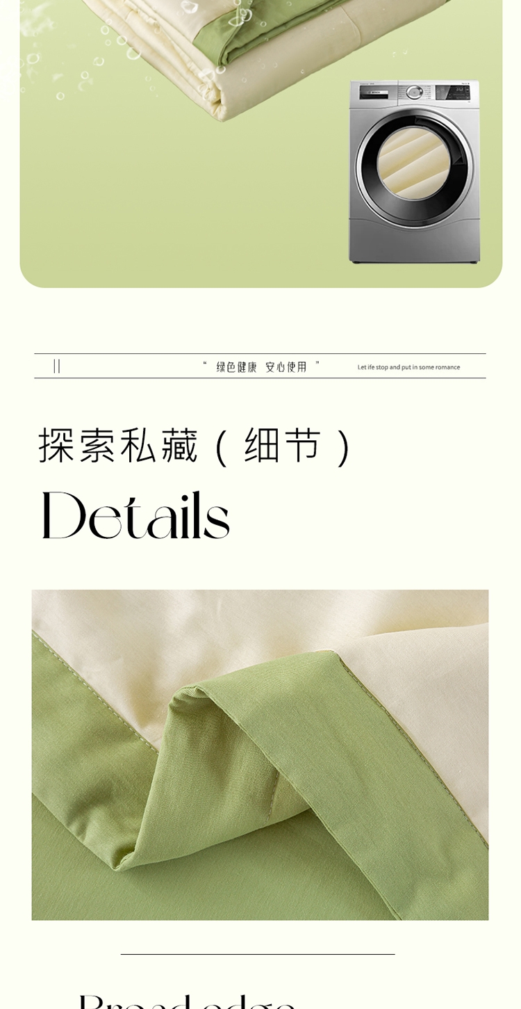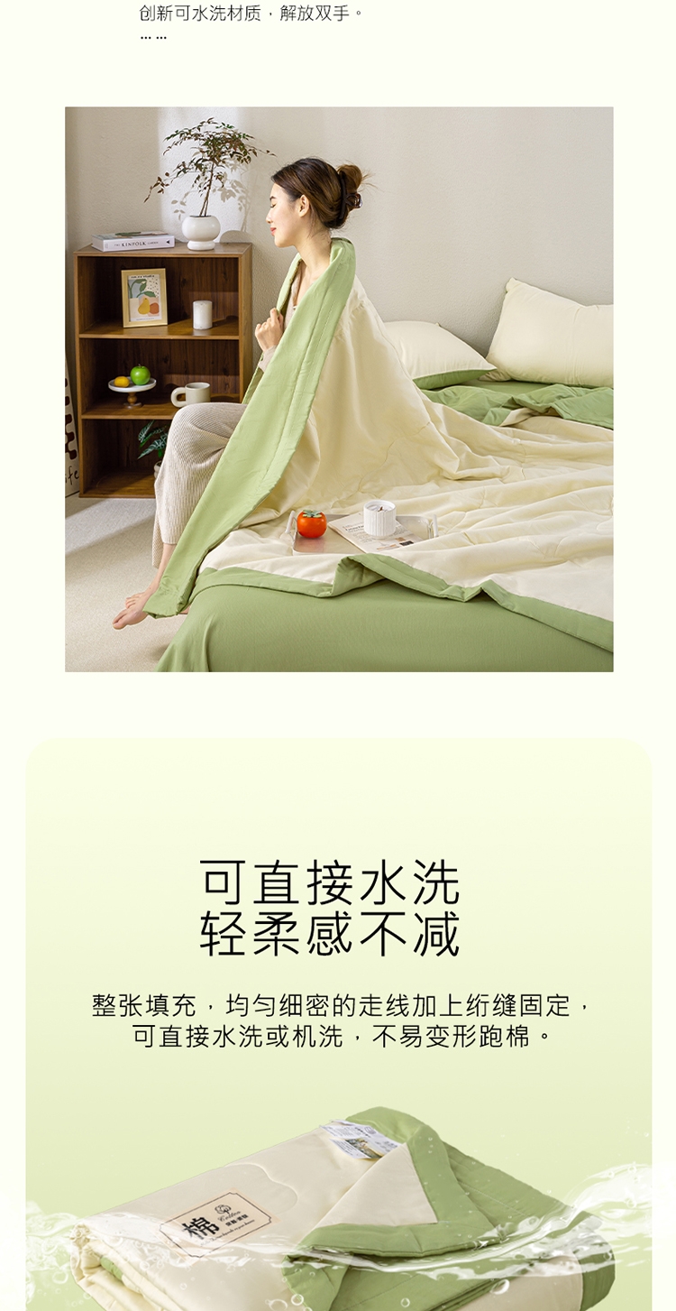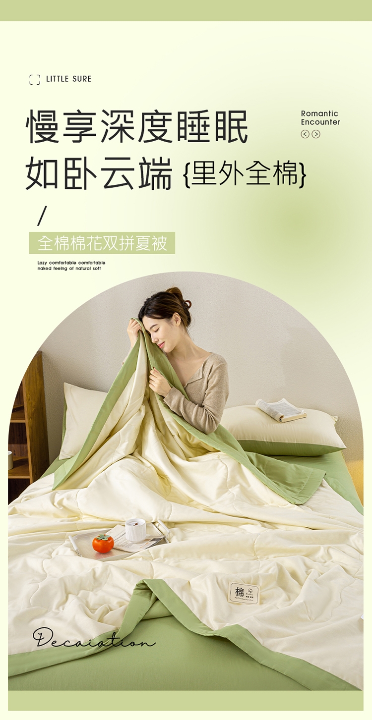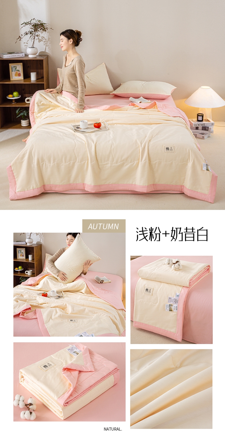 全棉面料,亲肤柔软,全棉高支高密工艺;100%新疆棉花填充,蓬松柔软,轻盈贴身,柔软舒适;撞色A/B面设计,为睡眠带来无尽的优雅与品位,