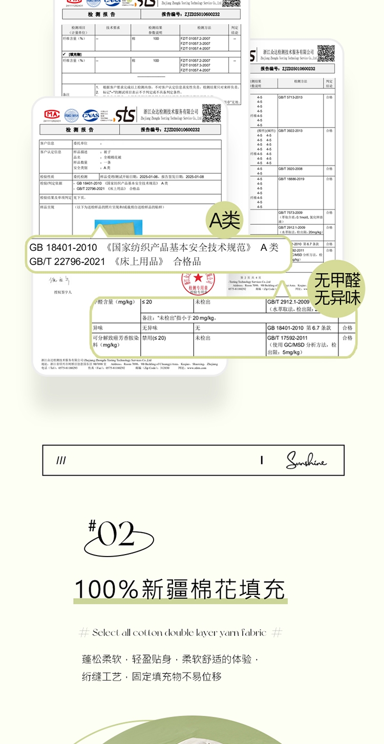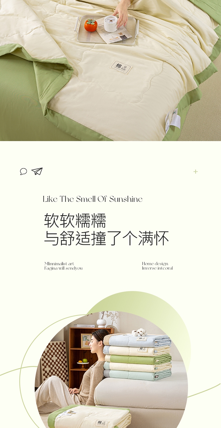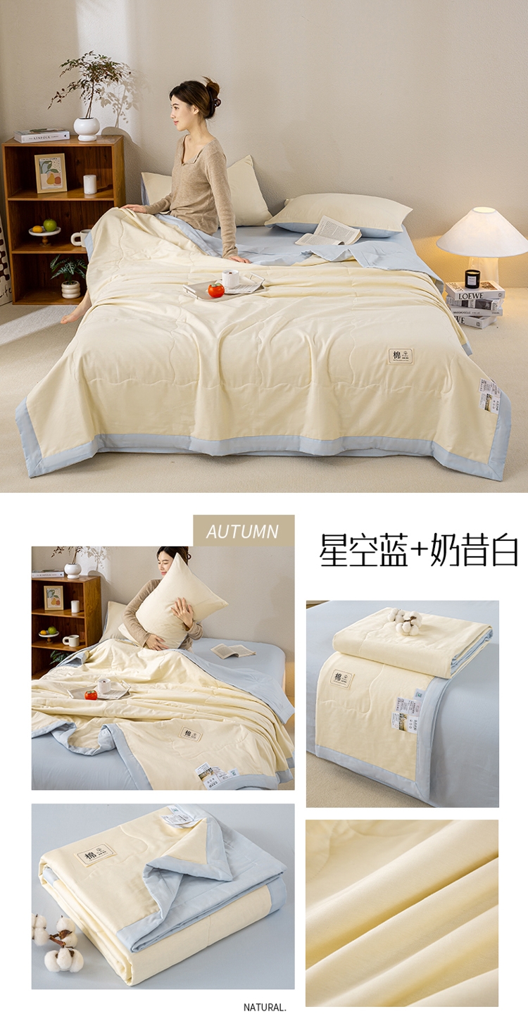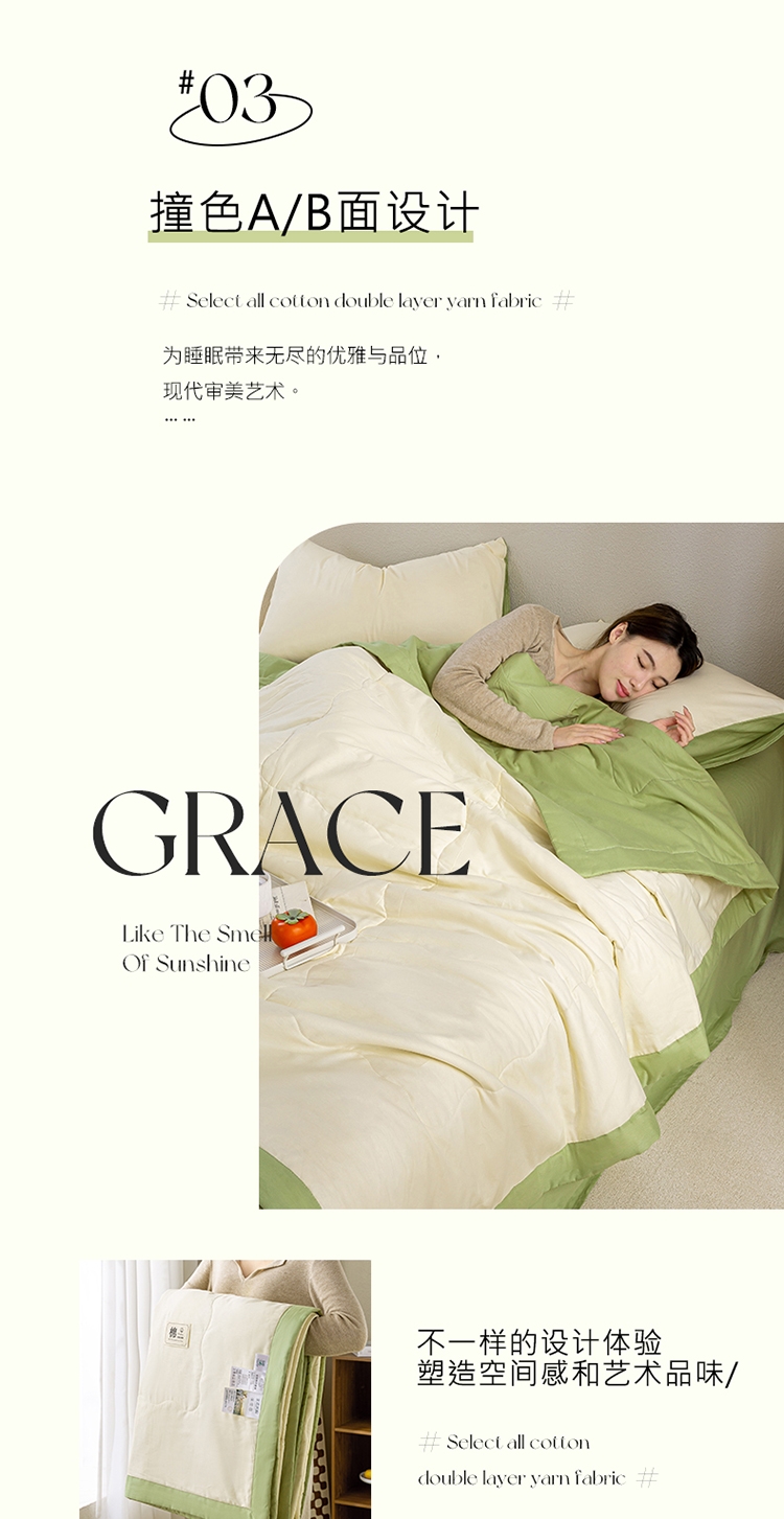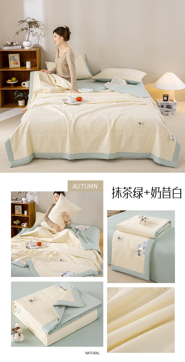 全棉面料,亲肤柔软,全棉高支高密工艺;100%新疆棉花填充,蓬松柔软,轻盈贴身,柔软舒适;撞色A/B面设计,为睡眠带来无尽的优雅与品位,