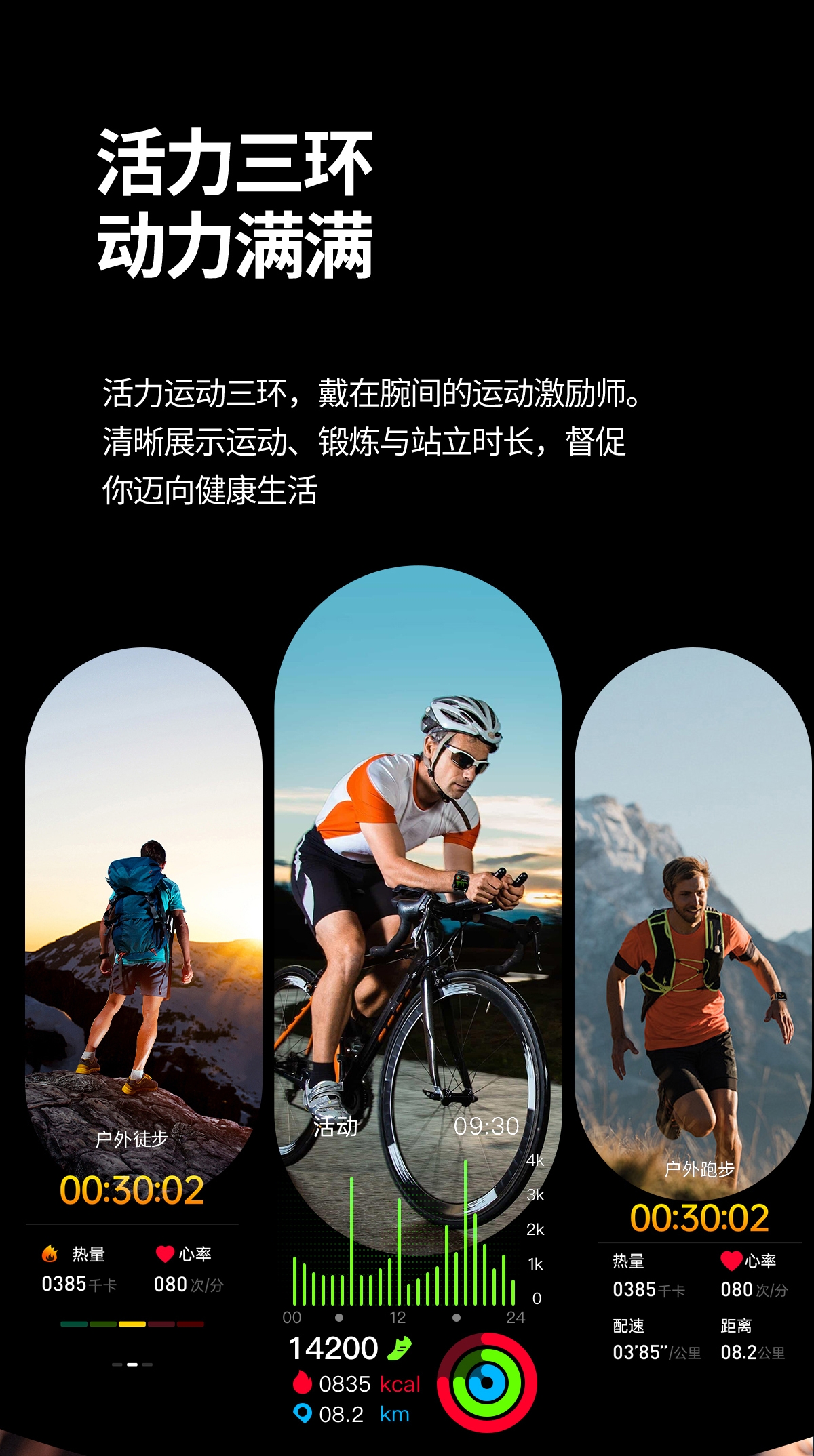 精准测量血压,手表秒测血压,居家健康监测更便捷;ECG心电图通过APP直接查看,心脏健康时刻知晓;微体检功能 微体检速测,健康指标 一目了然