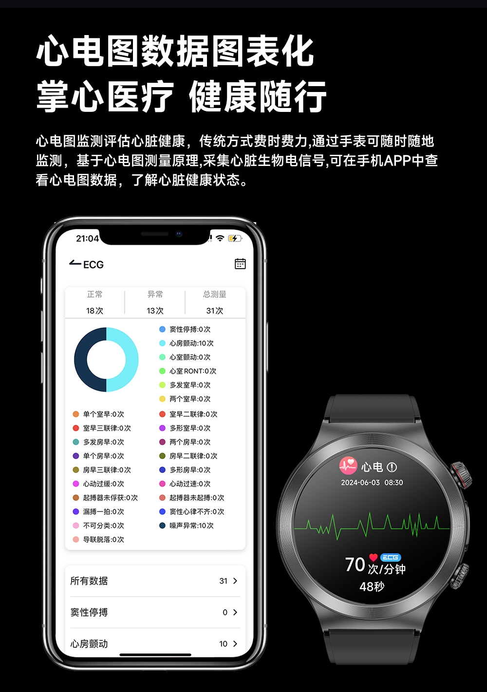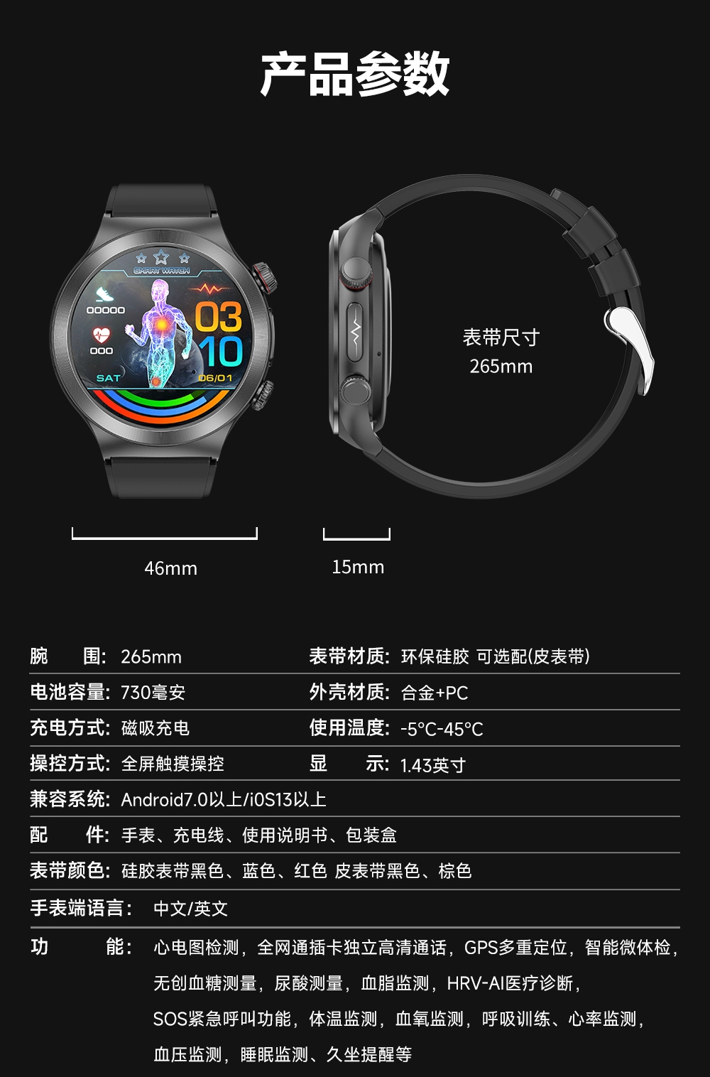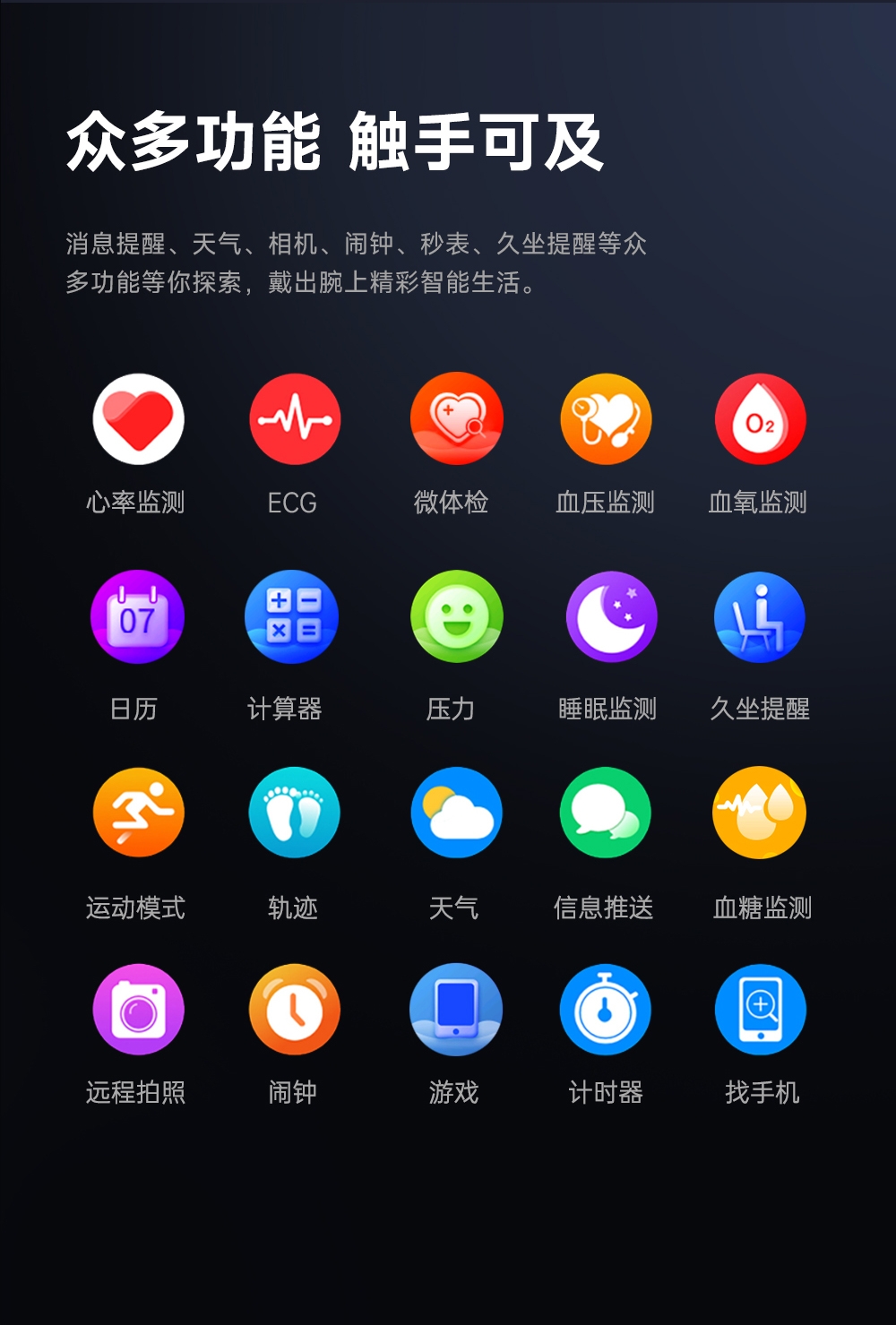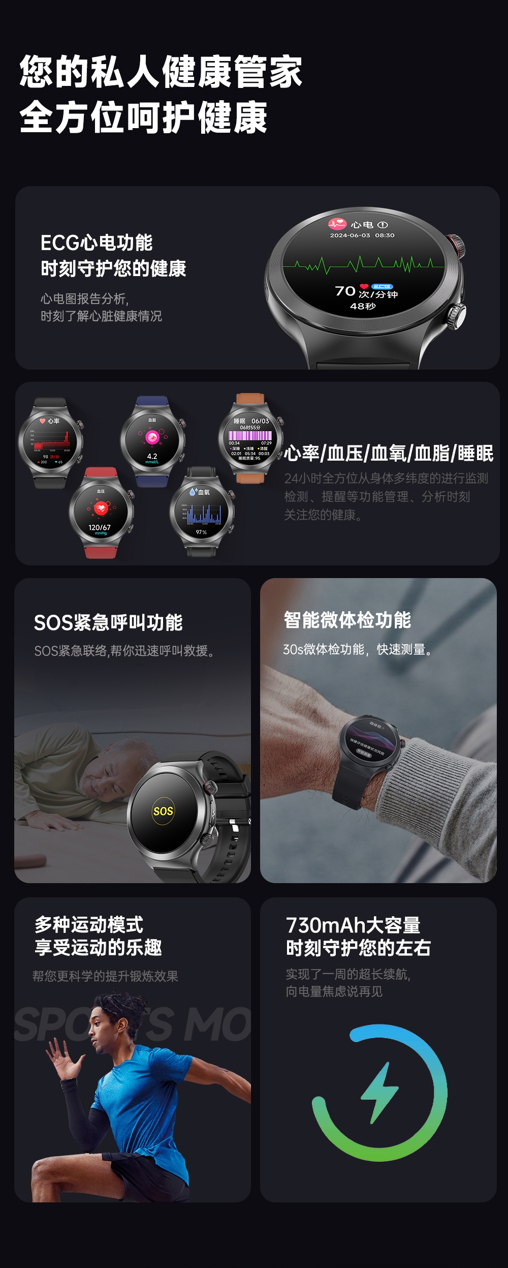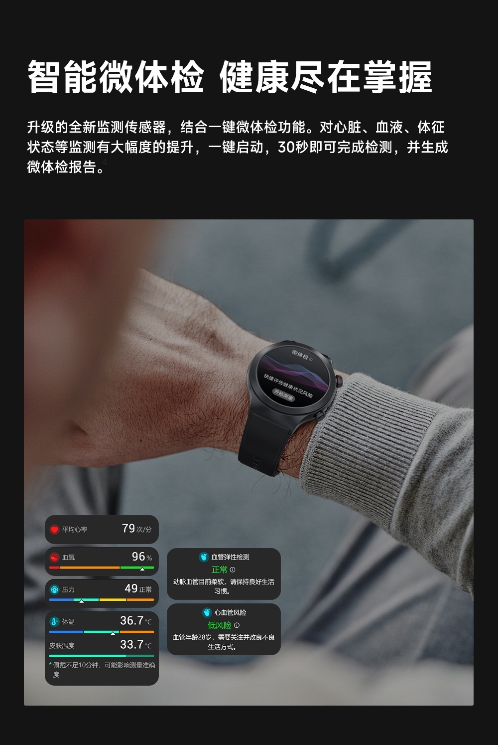 智能微体检功能 30s微体检功能,快速测量。;多种运动模式享受运动的乐趣;智能微体检 健康尽在掌握