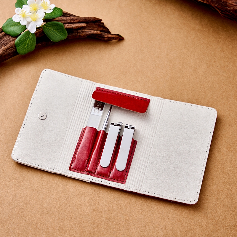 指甲刀精选不锈钢材质,锋利耐用防锈;经典实用四件组合,满足日常护理需求;拼色PU三折包,随身携带,收纳方便