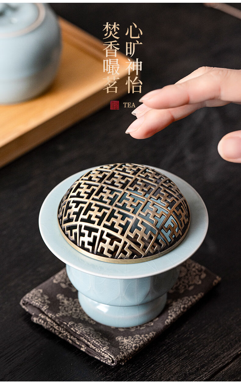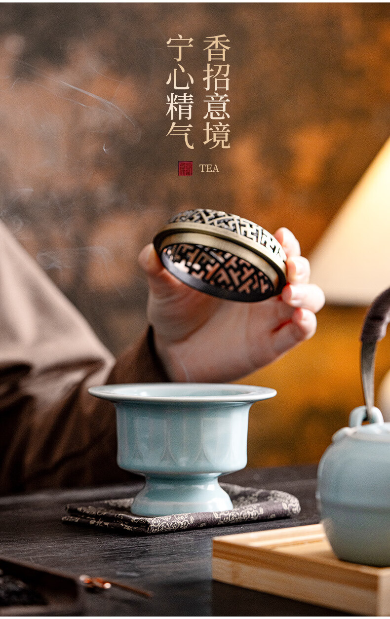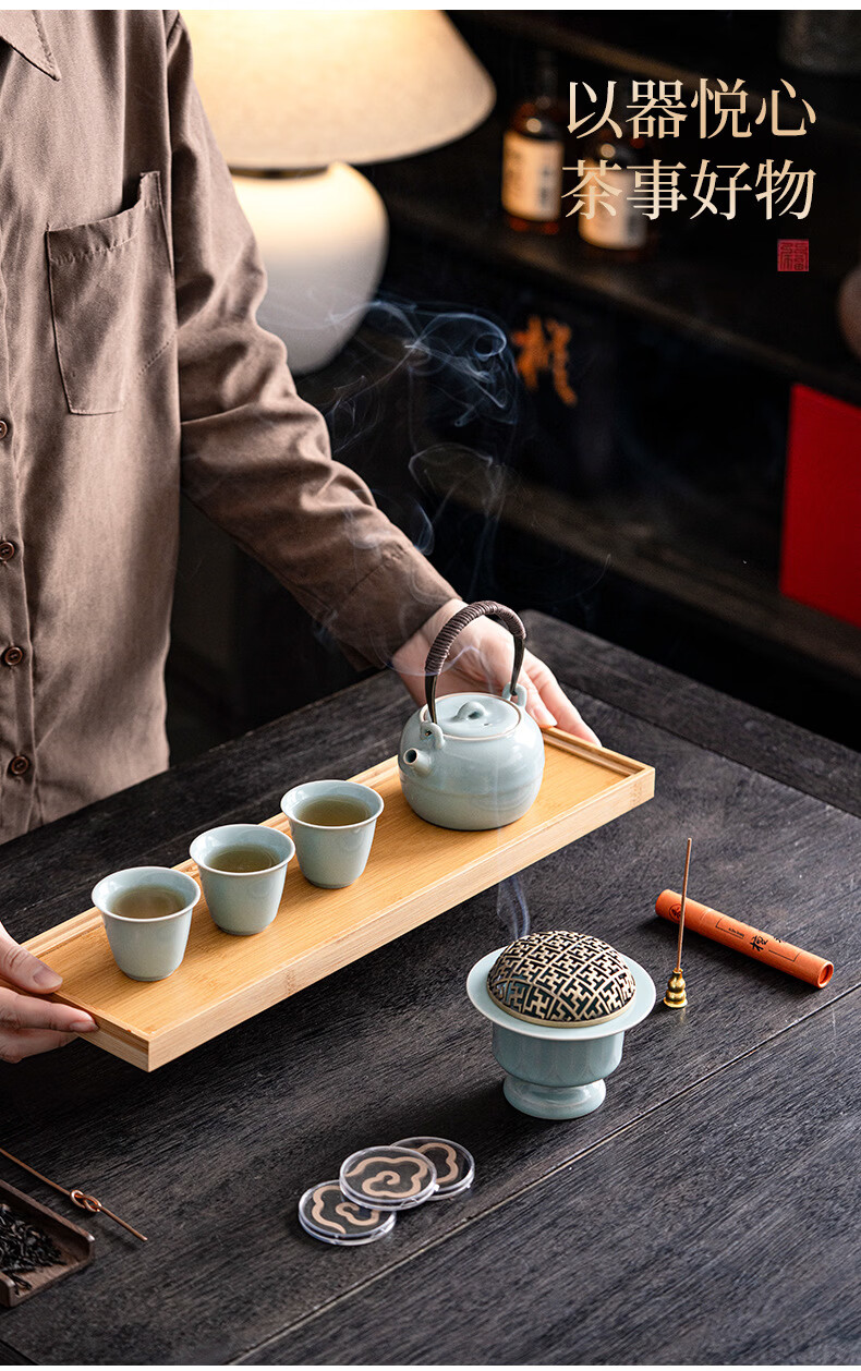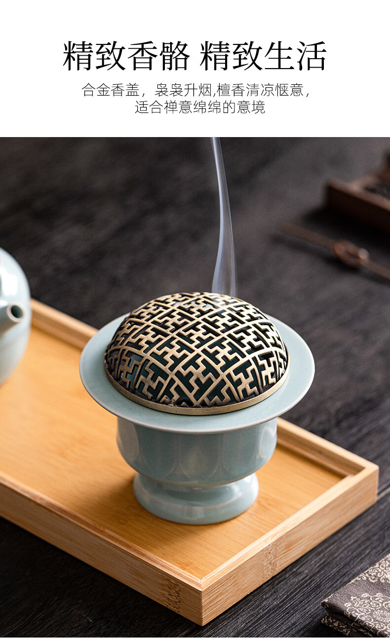 配置:1壶,3杯,1 香炉,3盘香,1香插,1檀香,1礼盒茶盘礼盒
