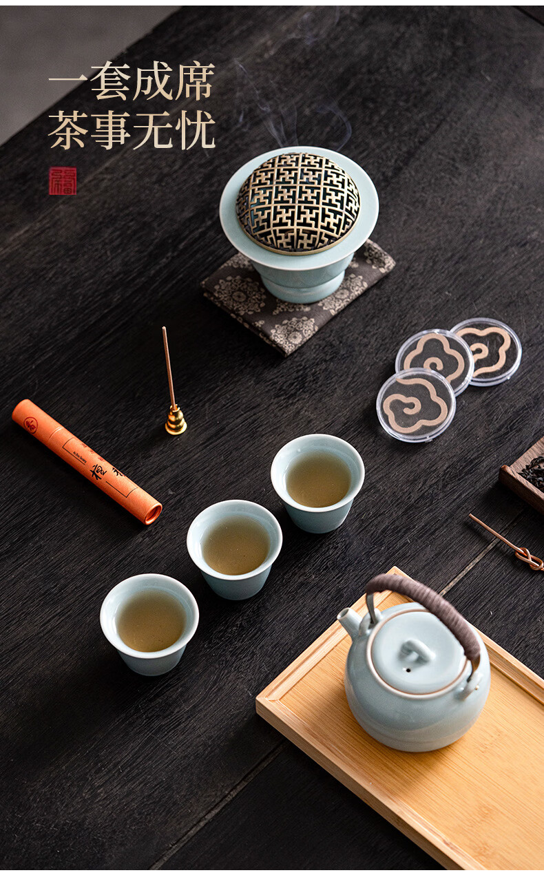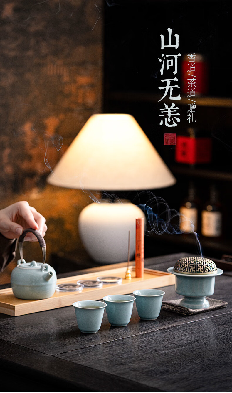 茗然说 汝窑天青山河無恙陶瓷茶具套装CJ204