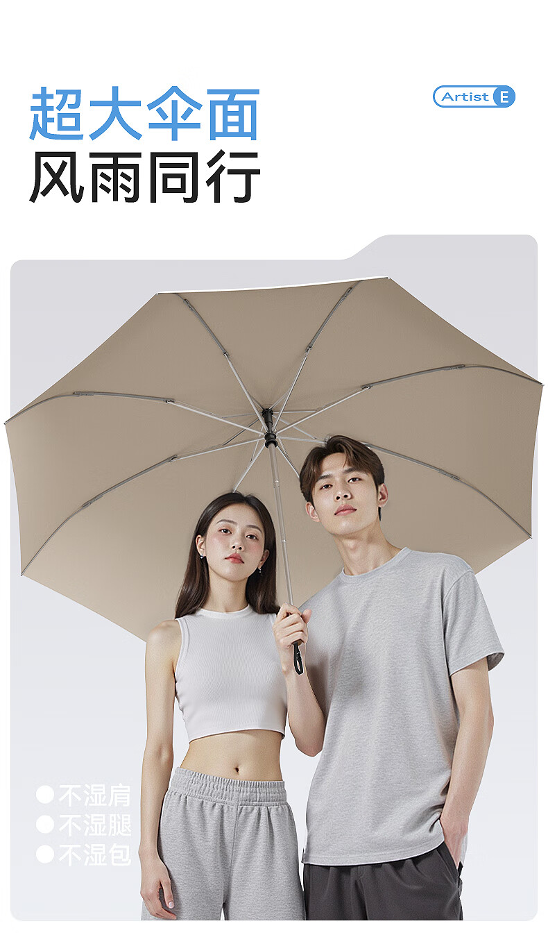 超大伞面设计,风雨同行;进阶配色让雨天成为期待;手柄处环扣提绳设计,方便挂扣,轻松便捷,不易丢伞