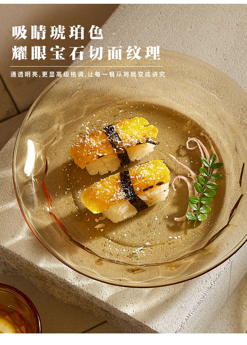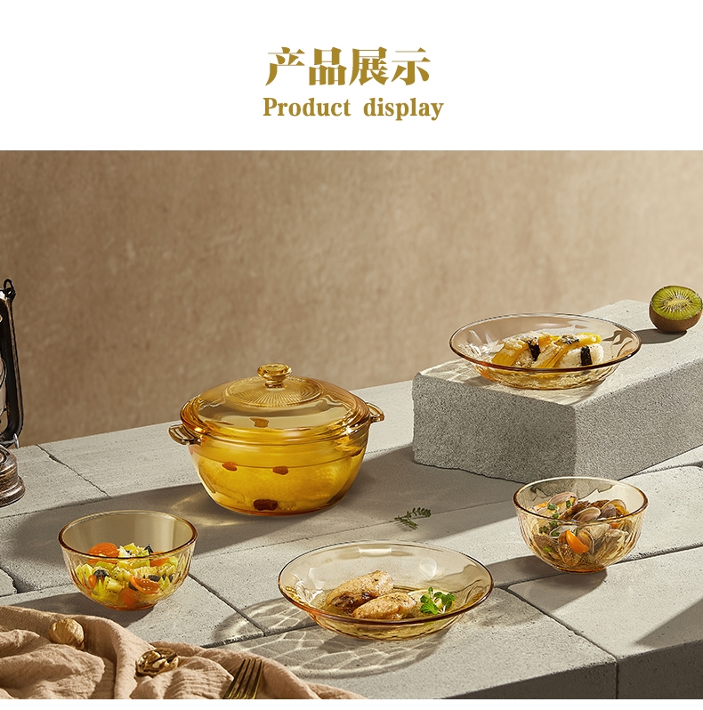 产品采用高硼色料玻璃材质,颜色与生俱来;星境高硼餐具设计理念,用线条勾勒几何切面;以面为境折射时光、徜徉星空。