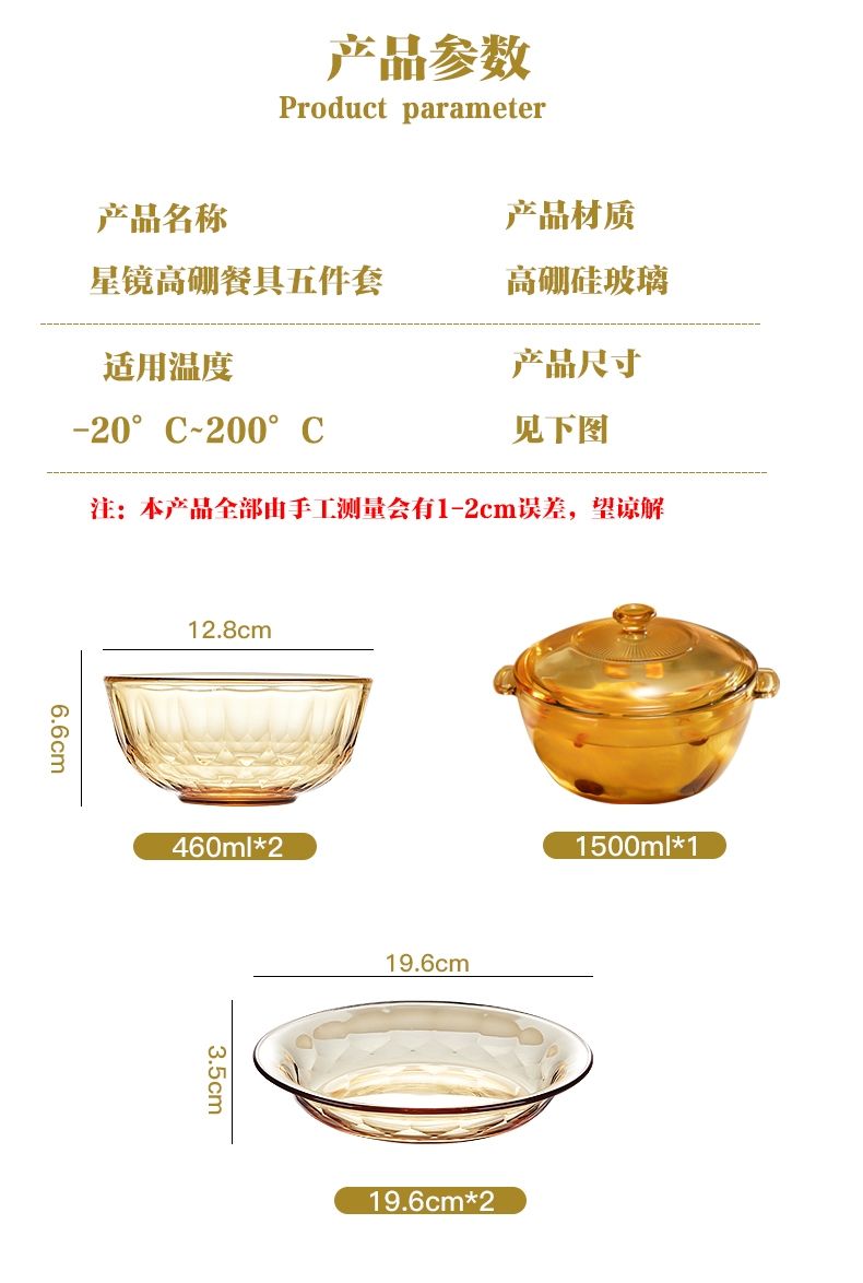 配置清单:小碗460ml*2、 盘196mm*2、高硼煲*1