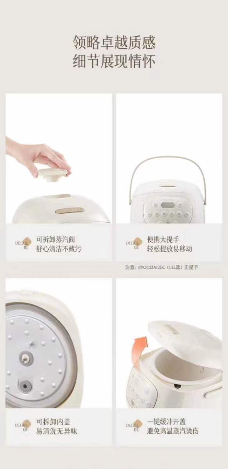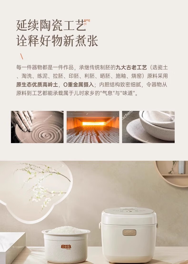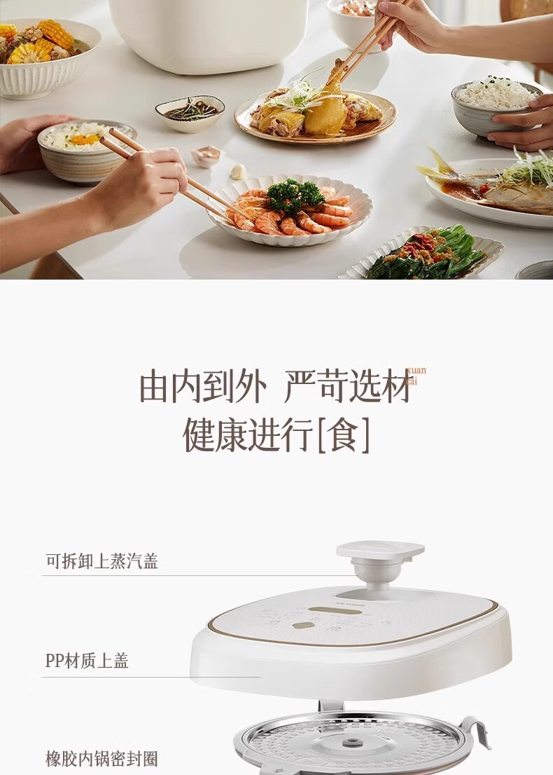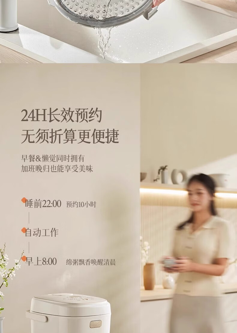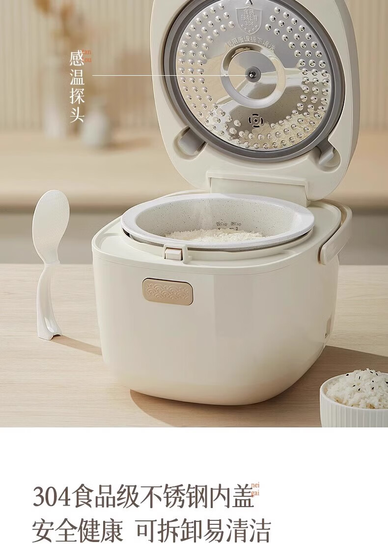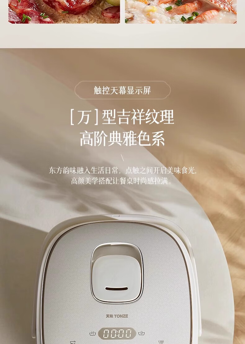 冰焰全瓷内胆, 健康不沾, 清洗方便;全方位精准探温系统, 免看管, 粥汤不溢;特设4大米种程序, 定制您的专属口感