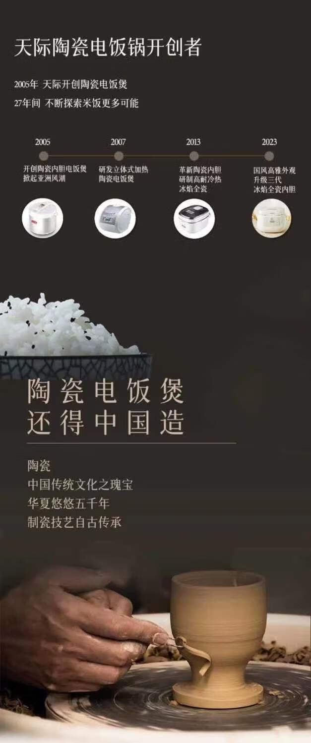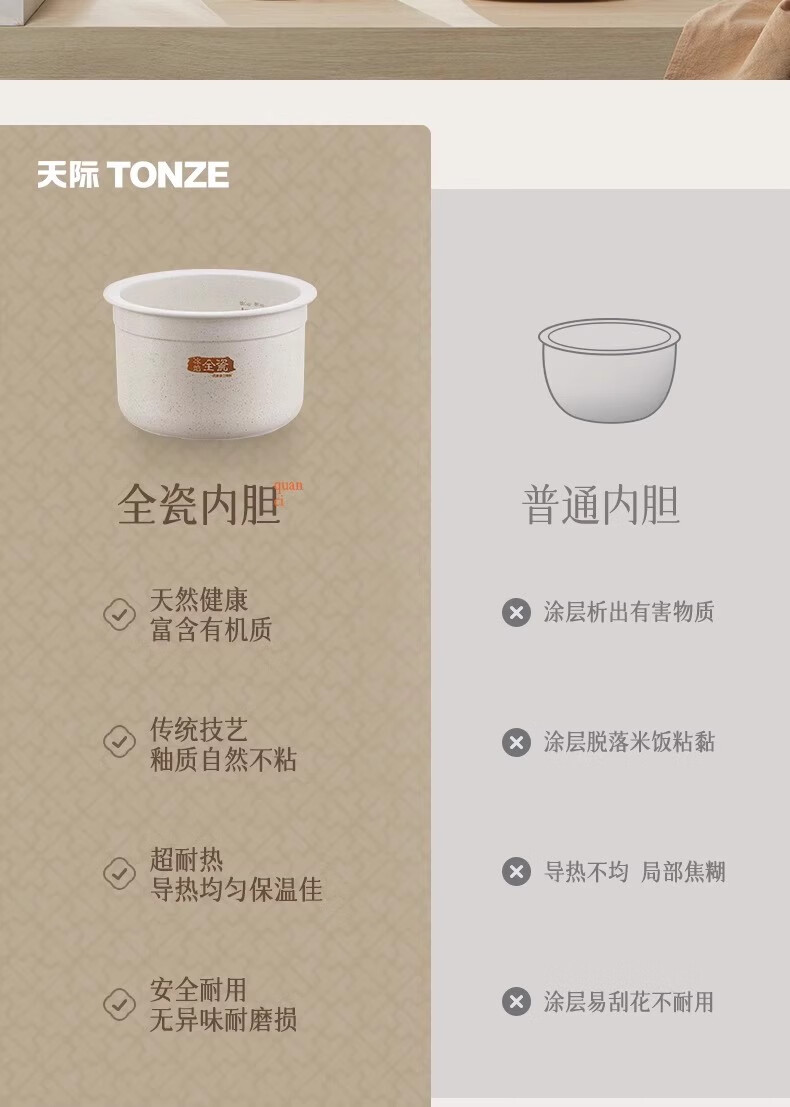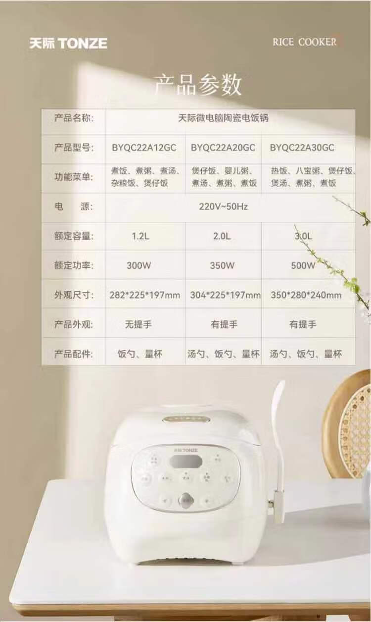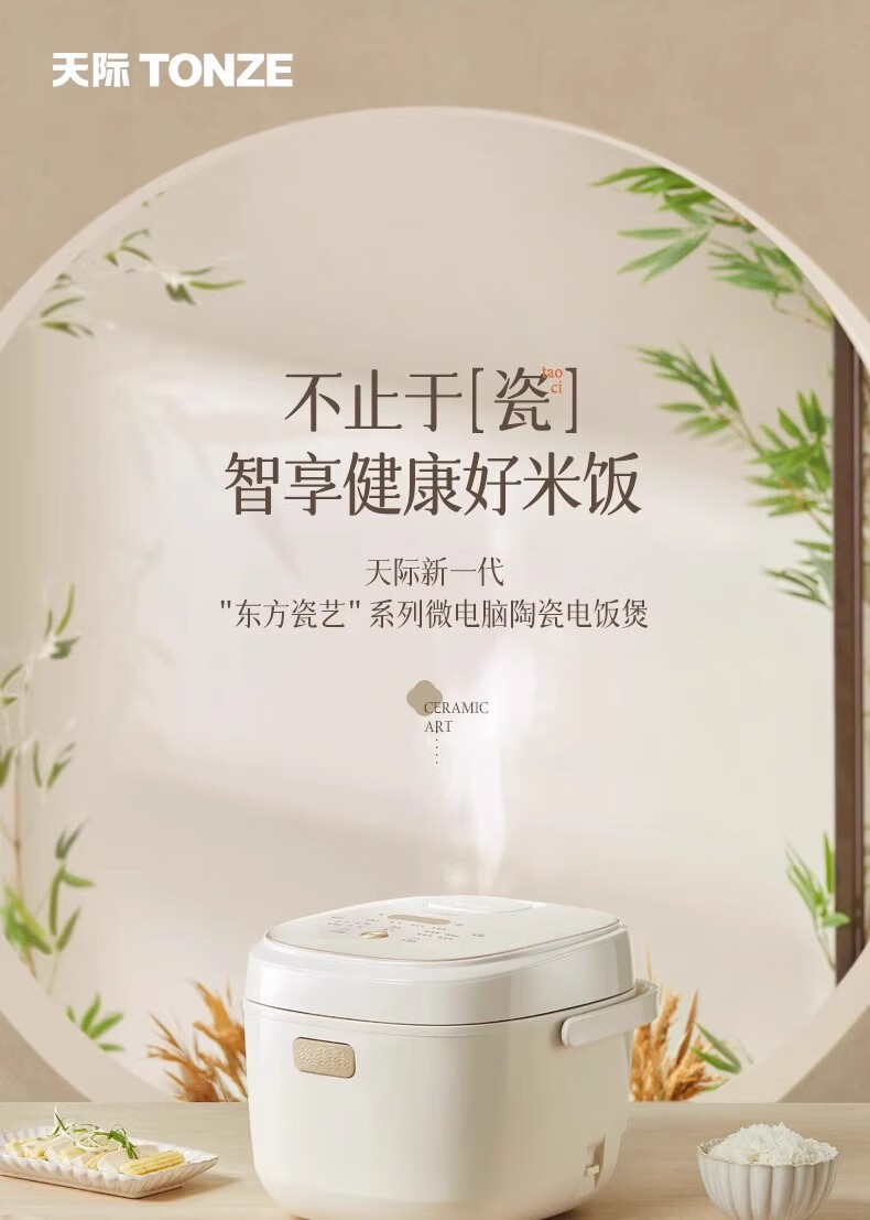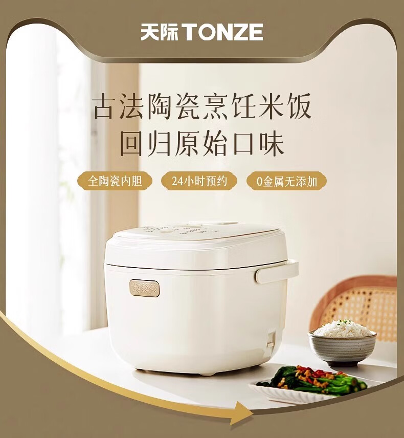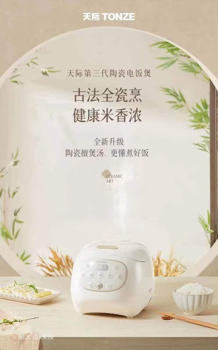 天际 全陶瓷内胆电饭煲无塗层2LBYQC22B20GC