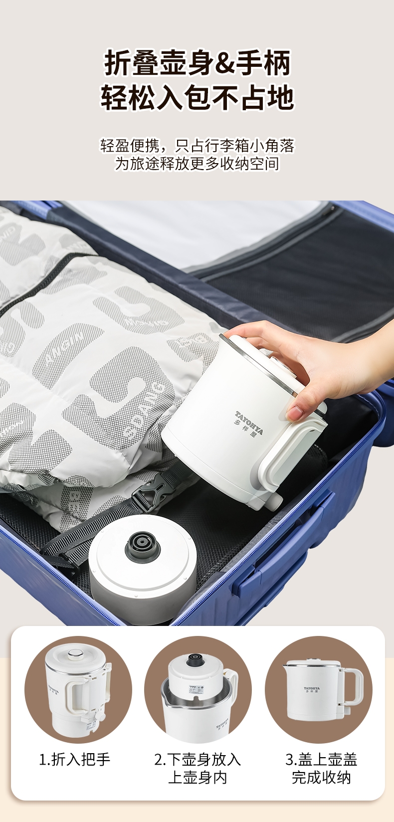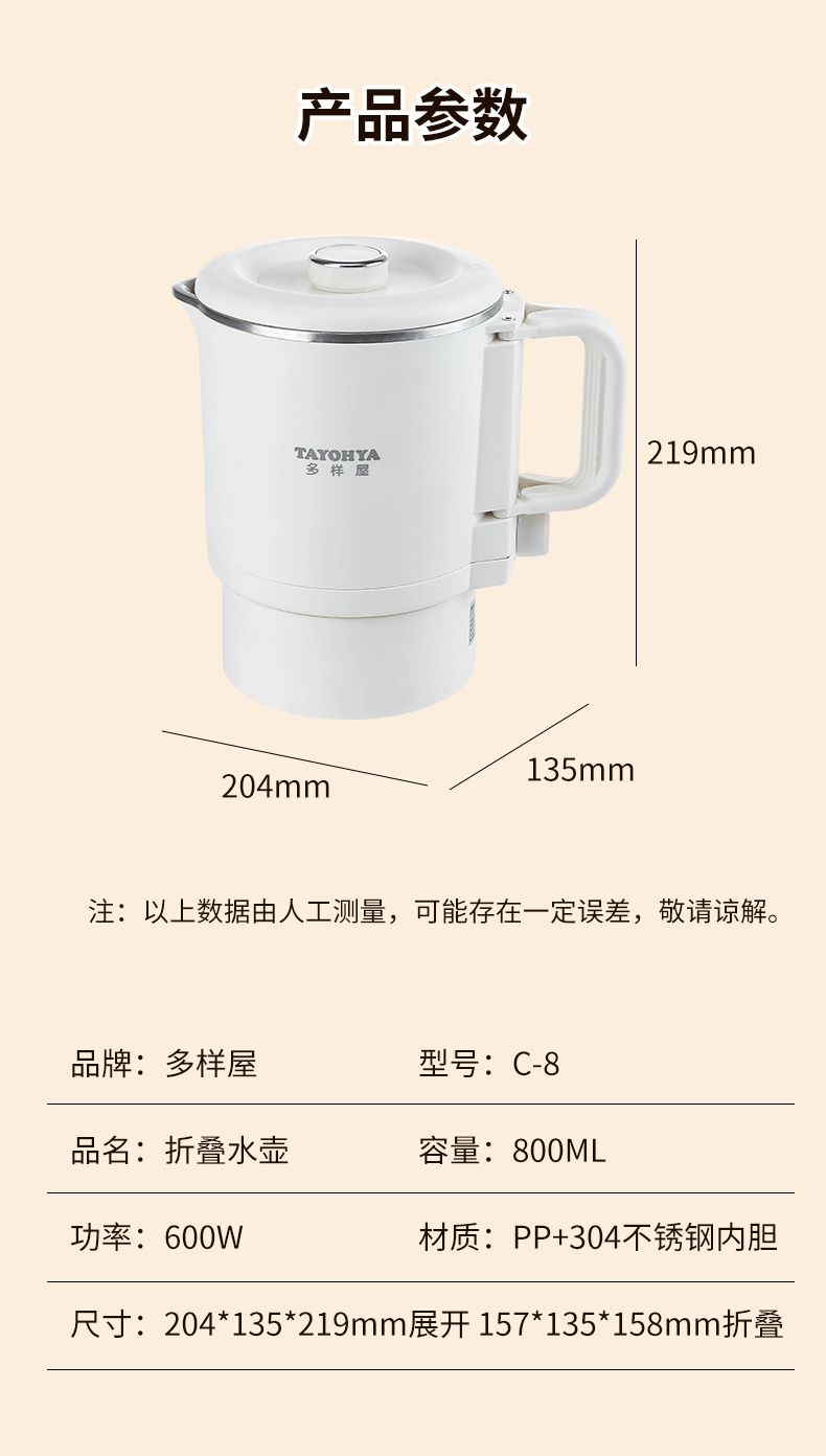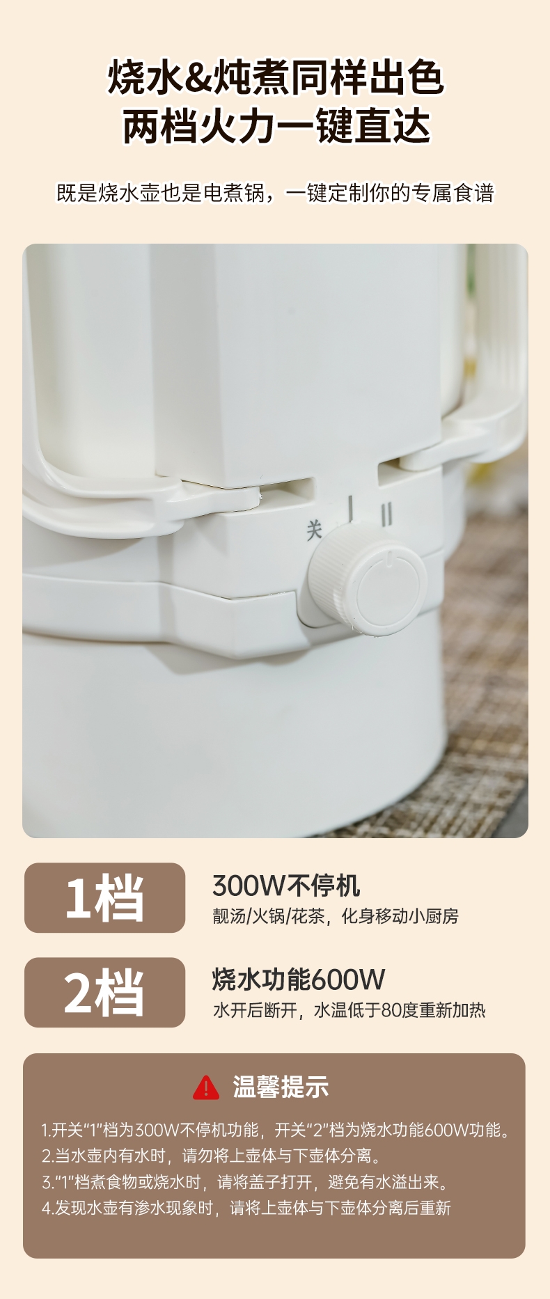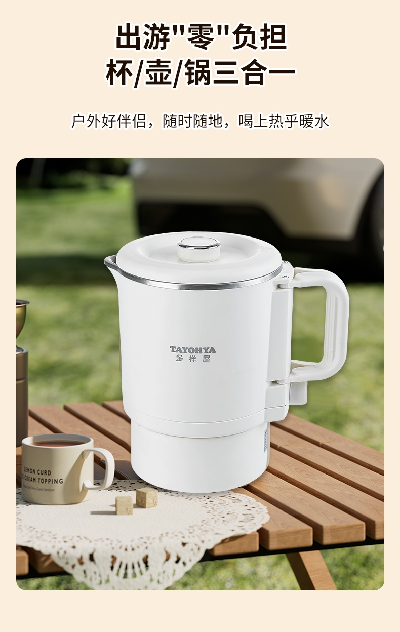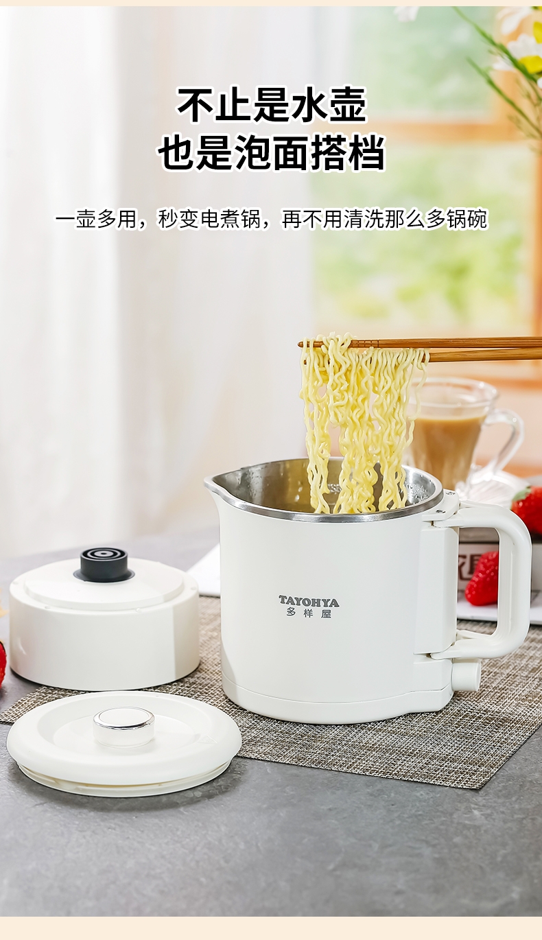 分体式设计,可折叠手柄可拆易清洗不藏污垢;精致小巧,可折叠易收纳携带更方便;304不锈钢内胆,健康无异味;双档调温,慢炖快煮,一件简单快煮;可适用于宿舍/酒店/家居/户外等多使用场景