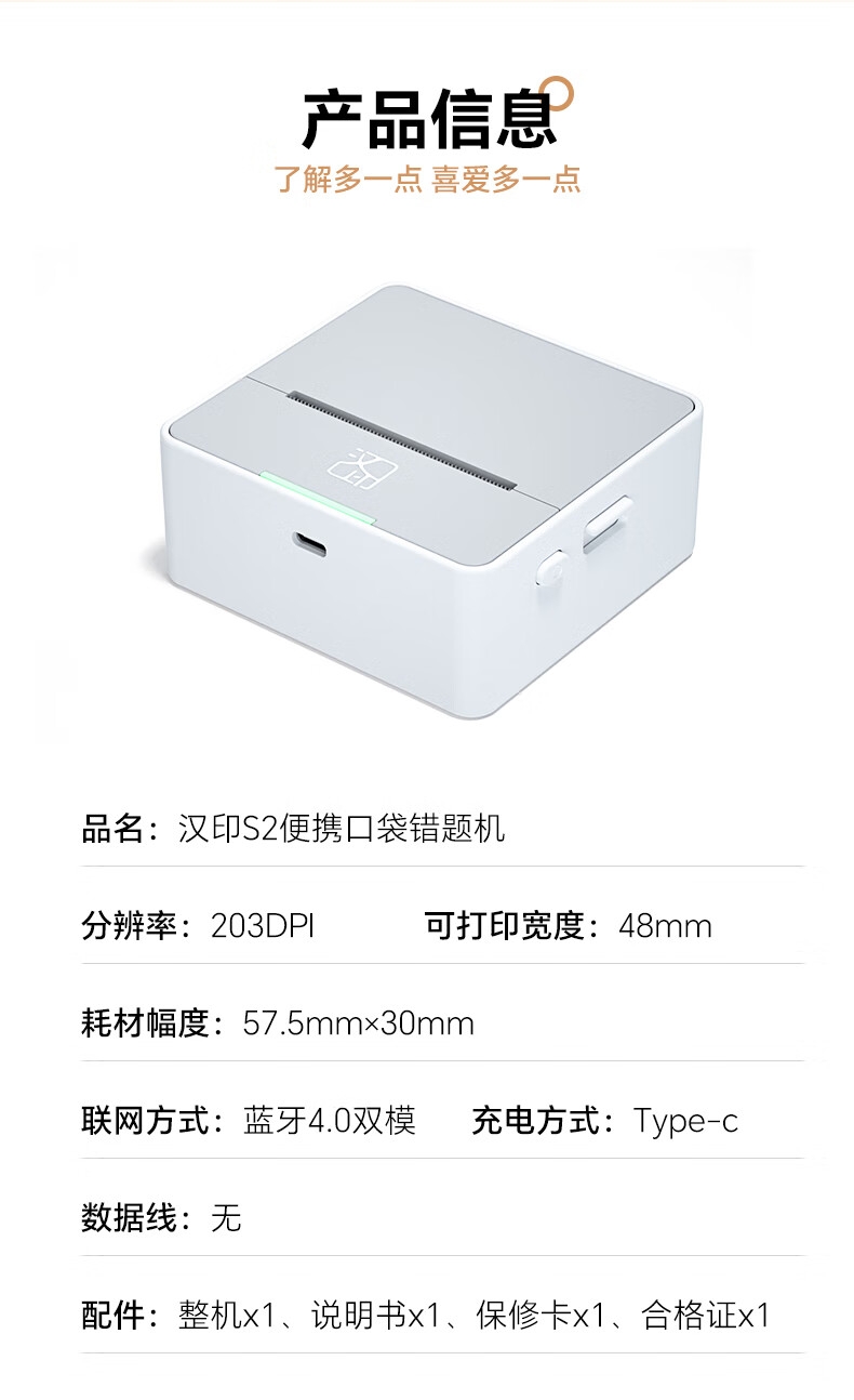 汉印 便携错题打印机S2