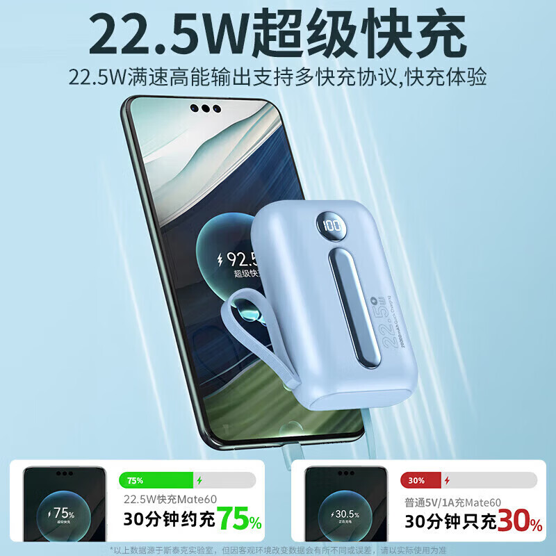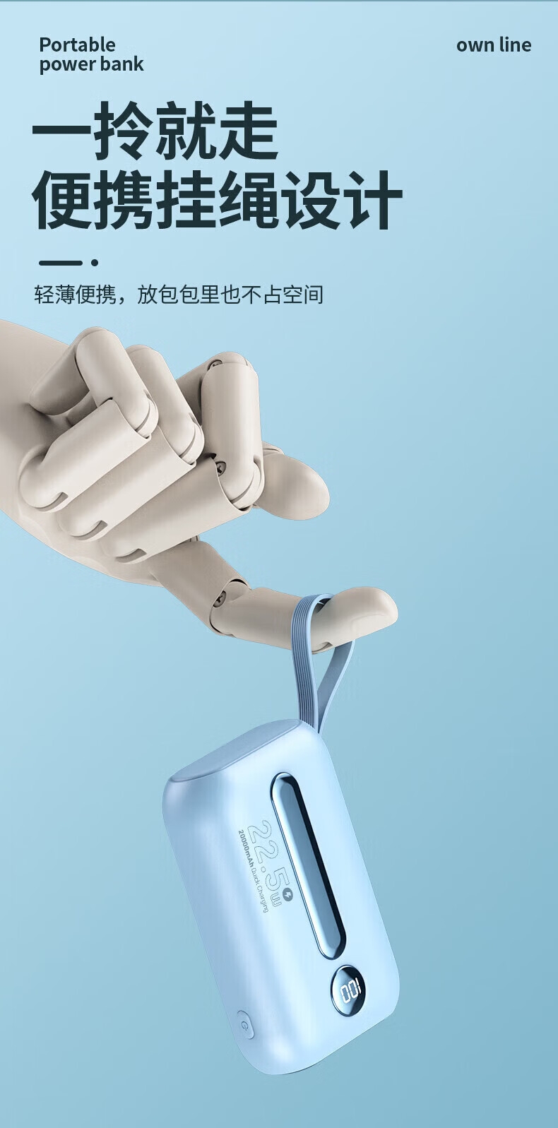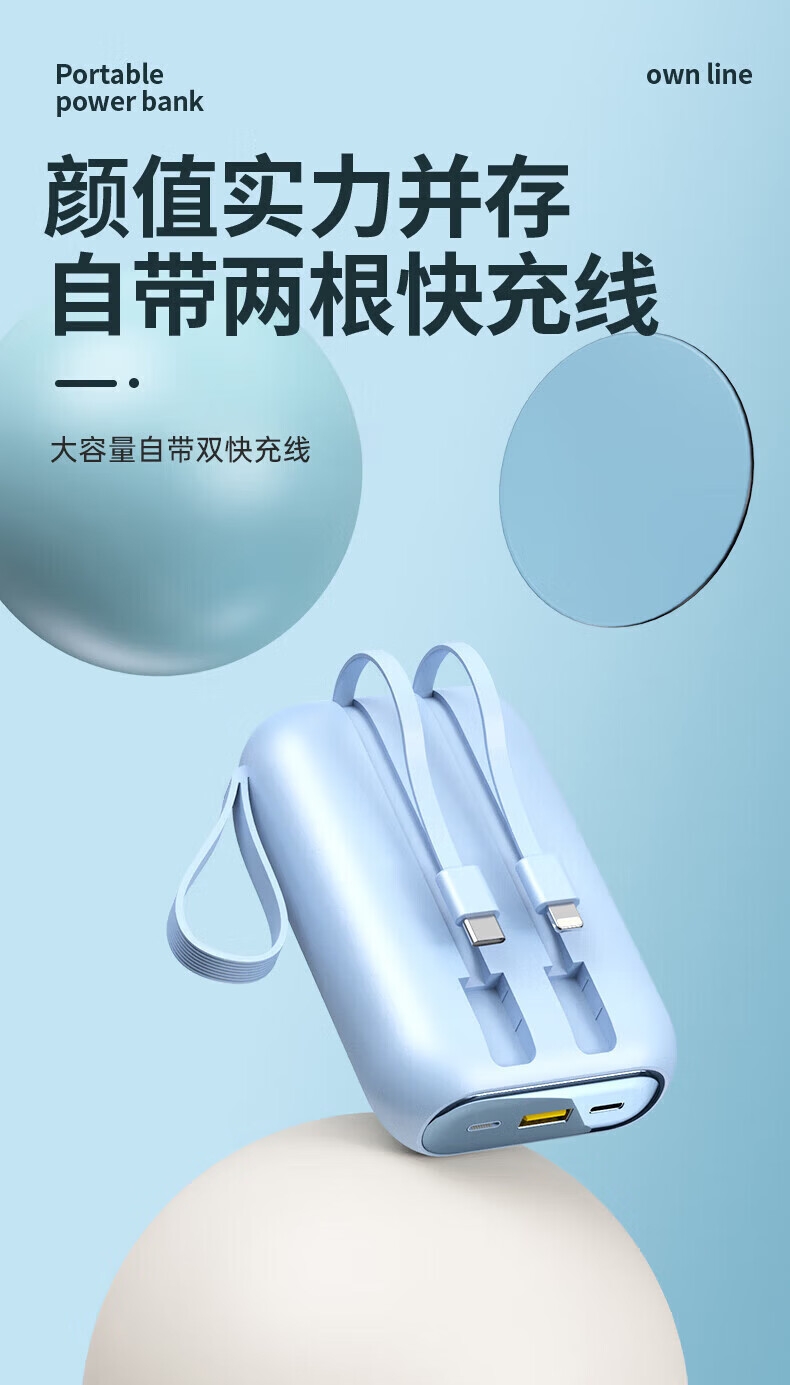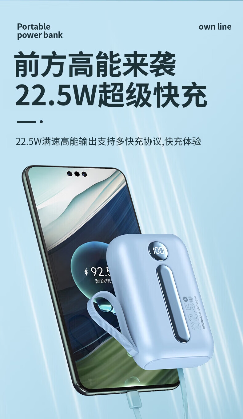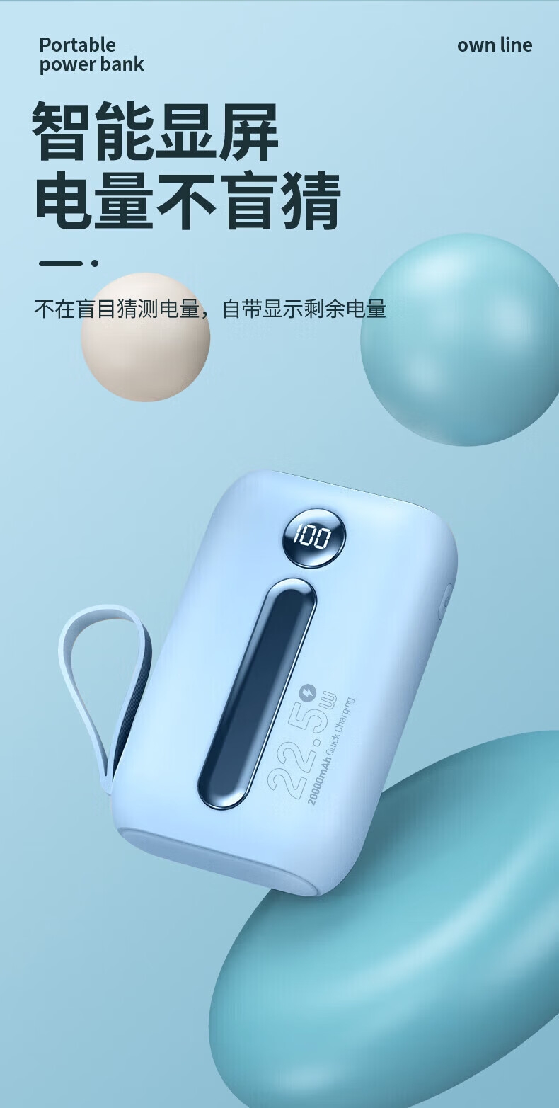 自带线,多口输出,可多手机同时充电;智能数显,电量一目了然;多重安全保护,充电的同时更保护电池