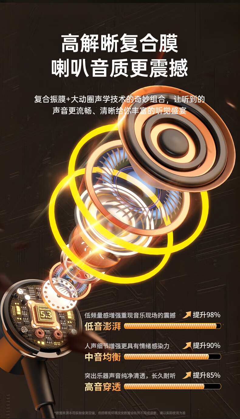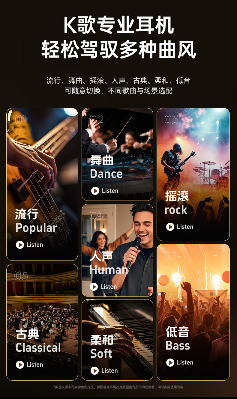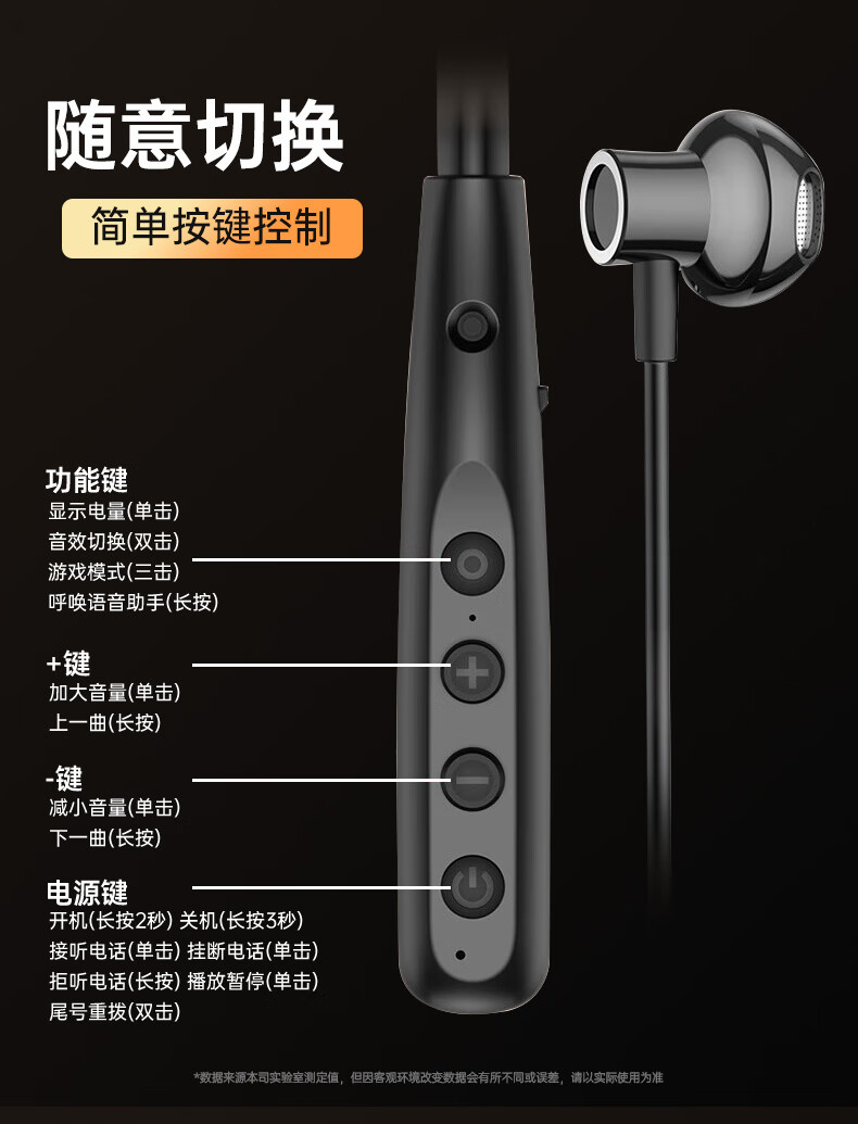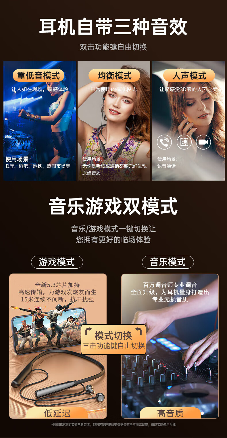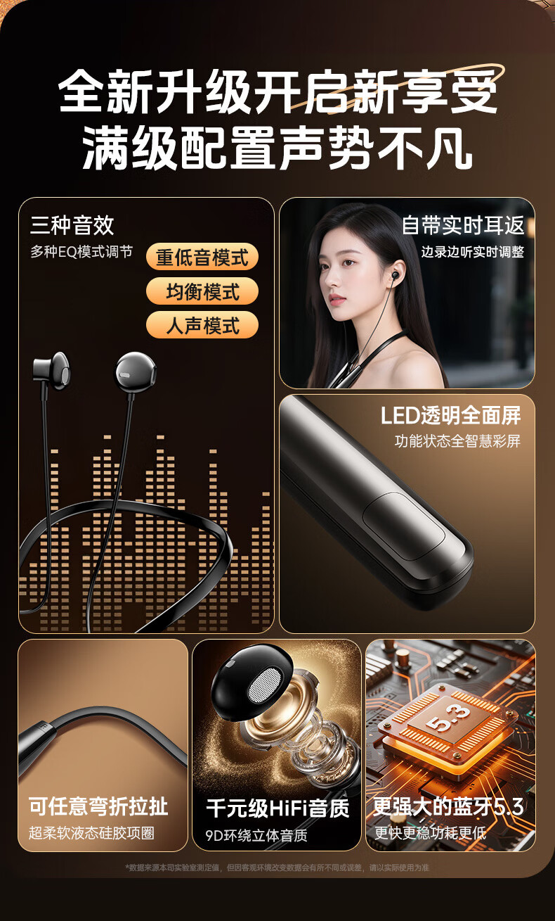 9D环绕立体音;3种EQ音效模式;LED电量实时数显
