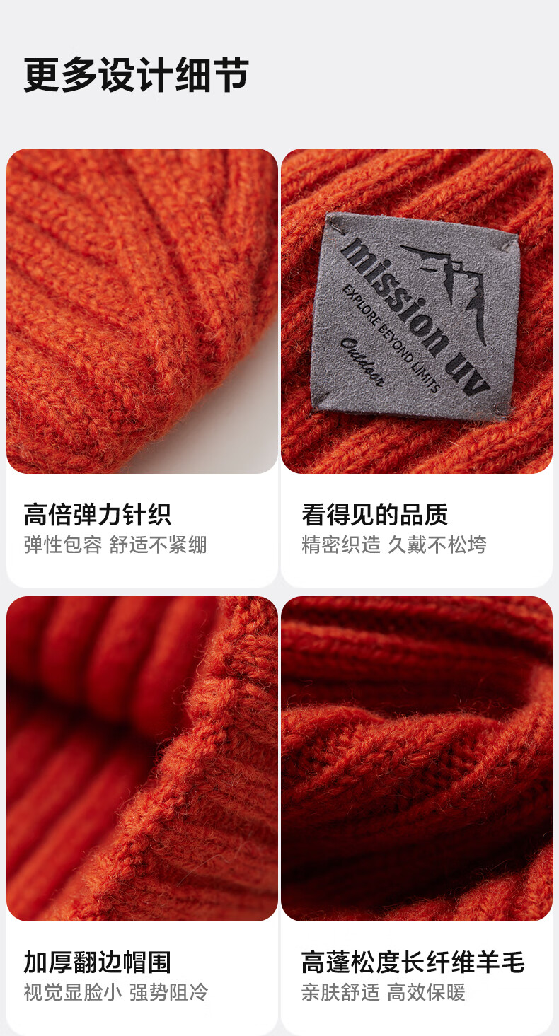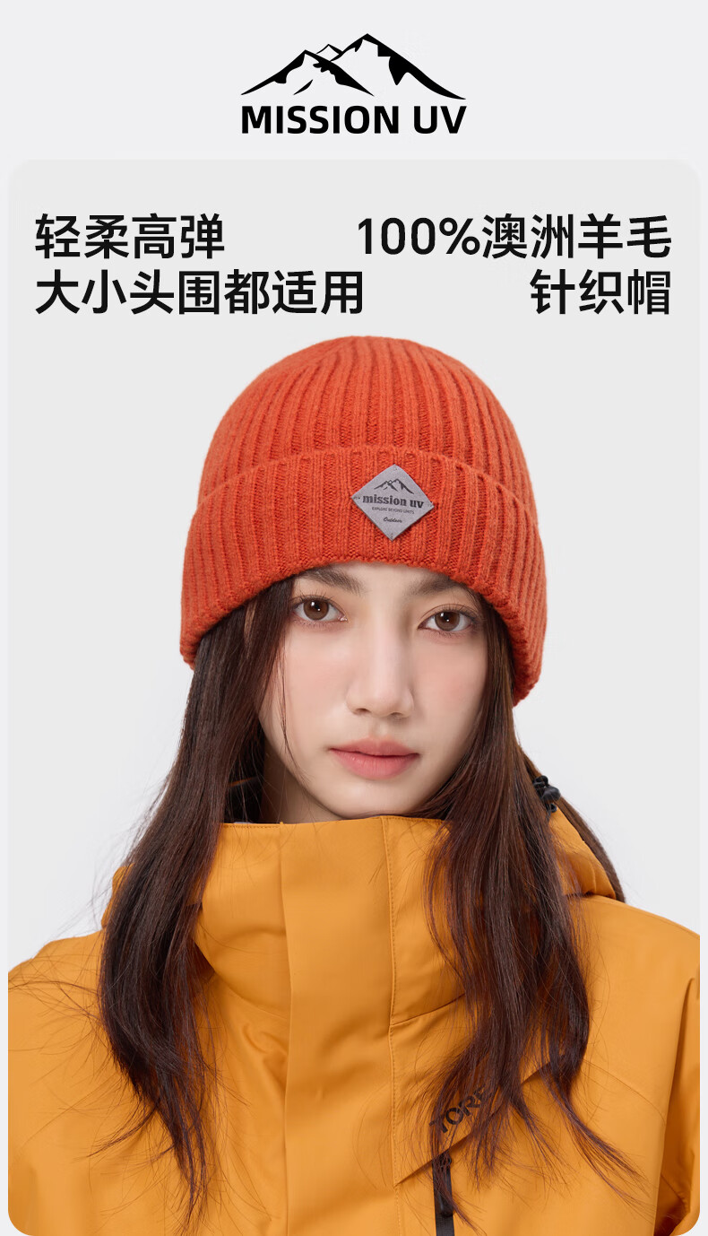 MISSION UV 男女同款纯羊毛保暖毛线帽针织帽MU256