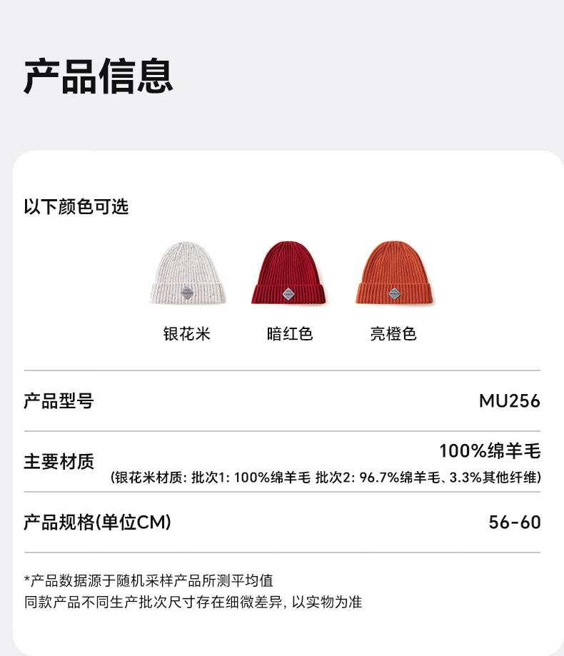 100%澳洲羊毛针织毛线帽 加厚保暖柔软亲肤;天然保温层 循环放热透气不闷,高倍弹力舒适不紧绷;加厚帽边贴合双耳 抵御冷风,冬季骑行必备